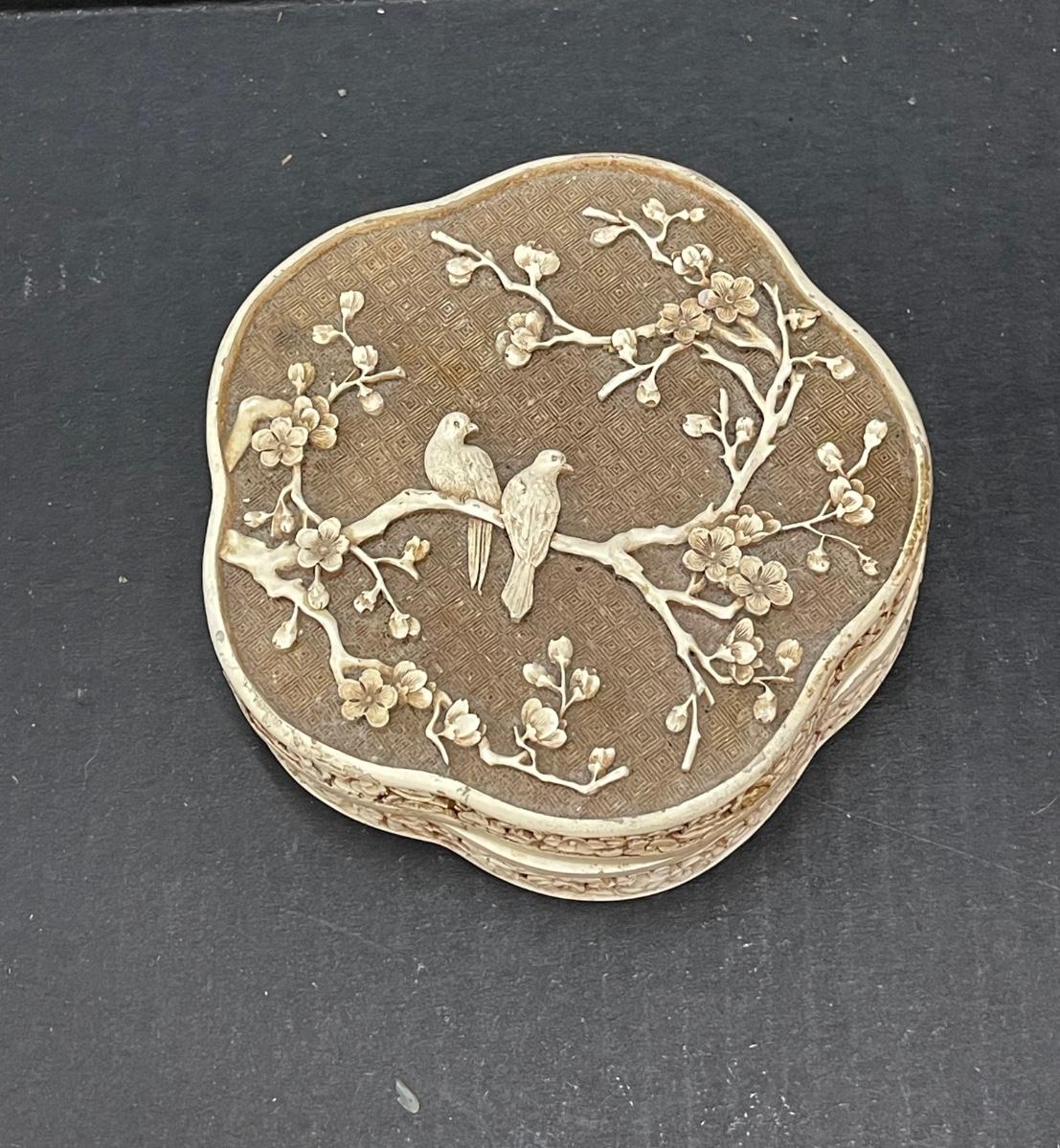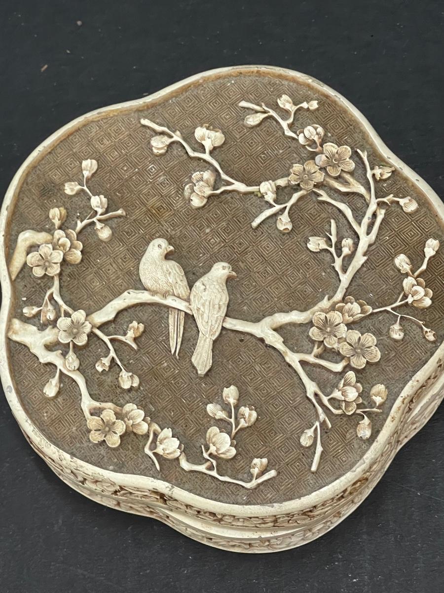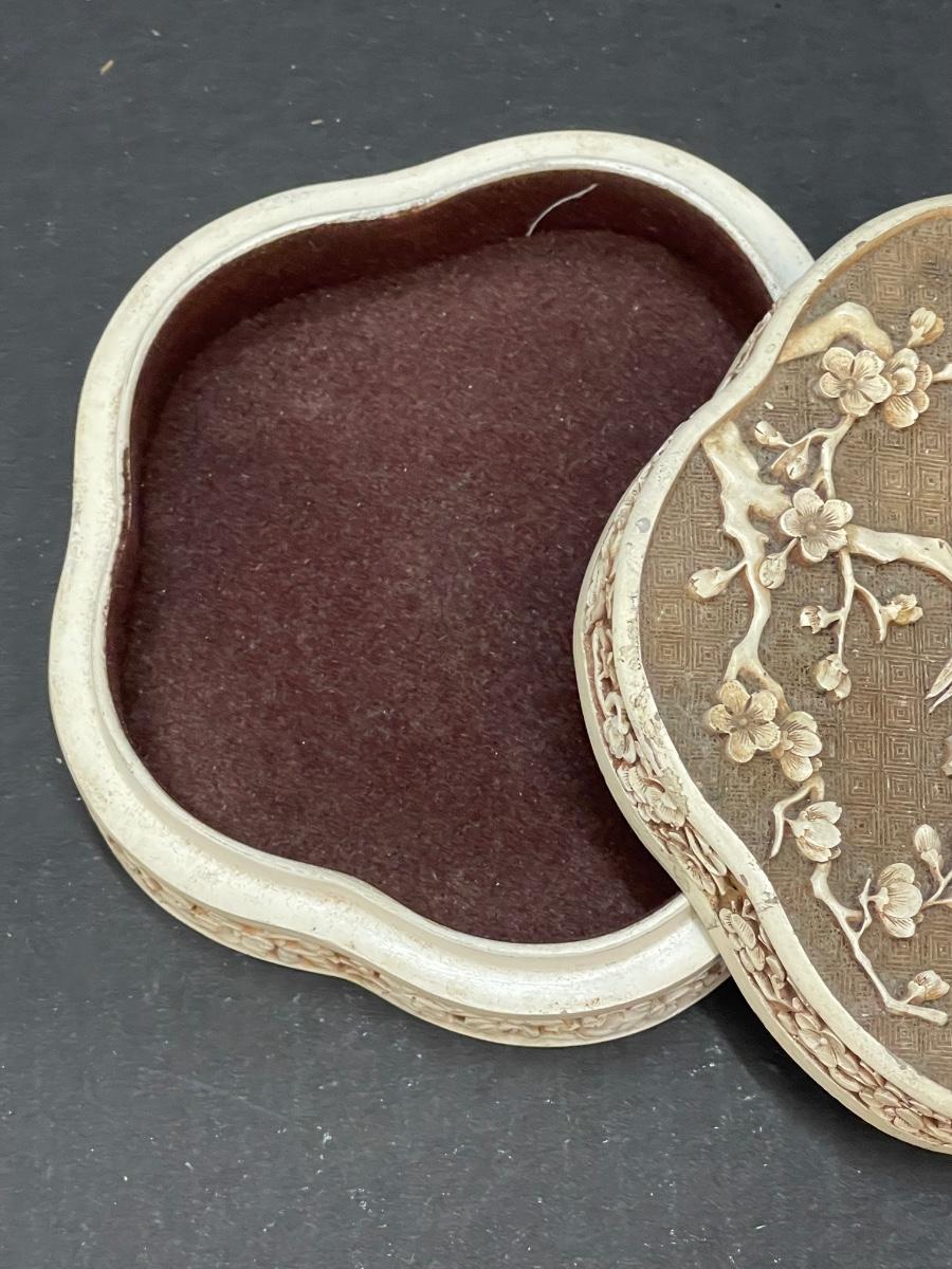 Vintage Carved Resin Cherry Blossom & Birds Trinket Box