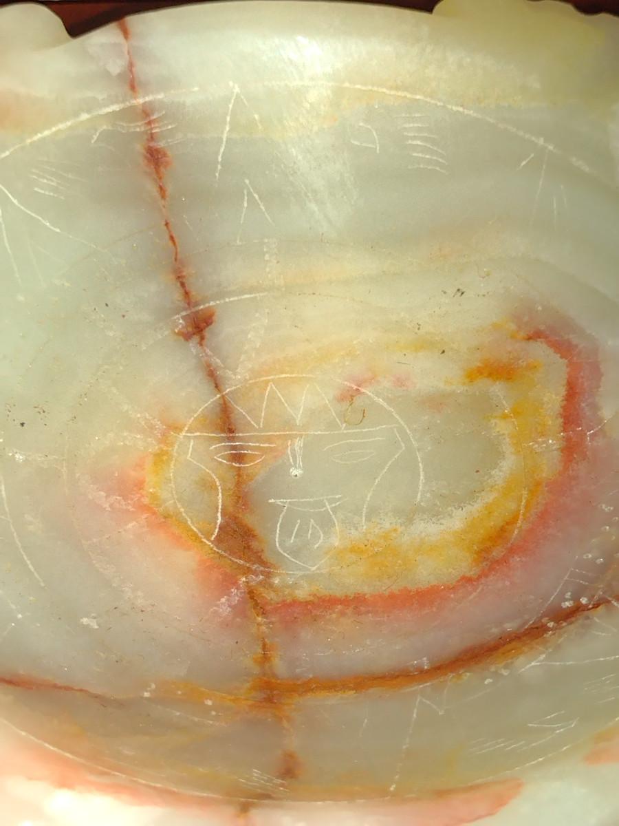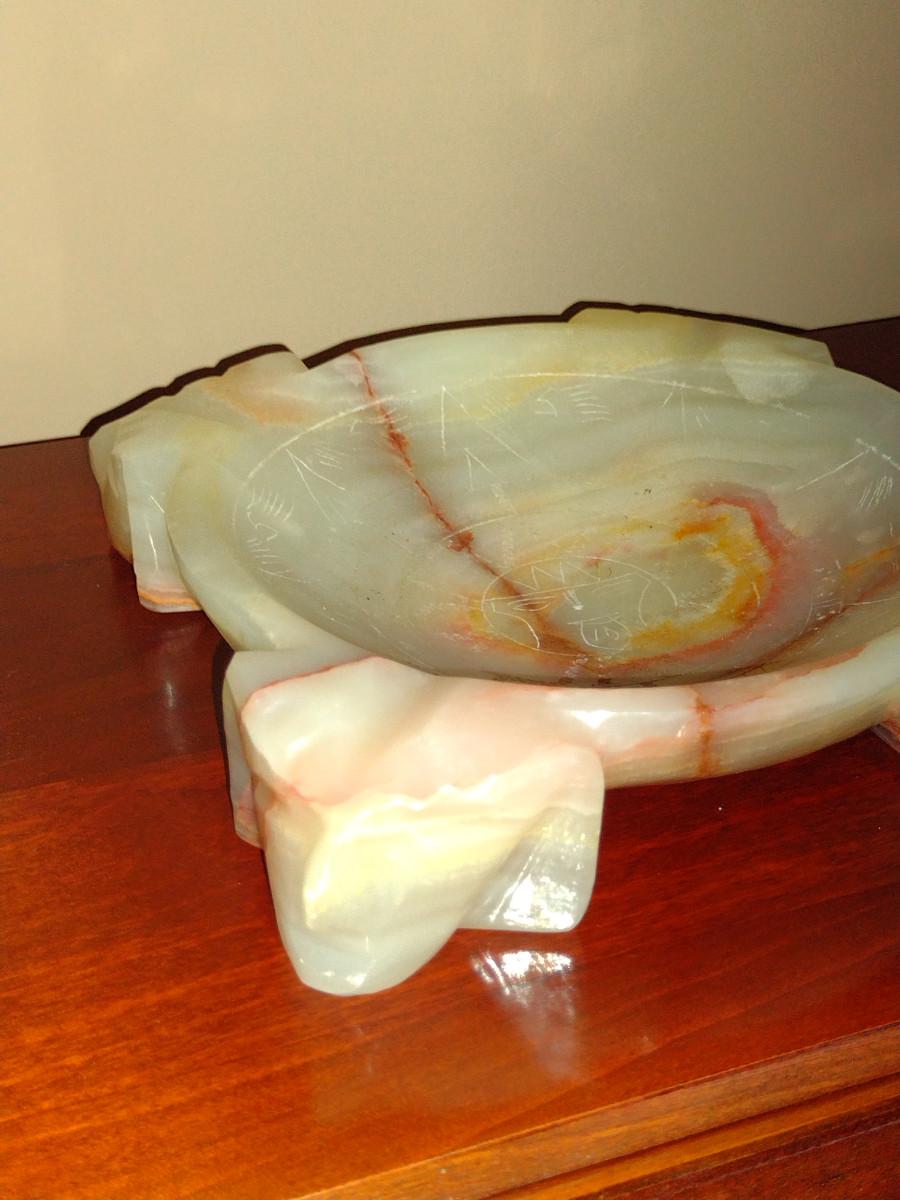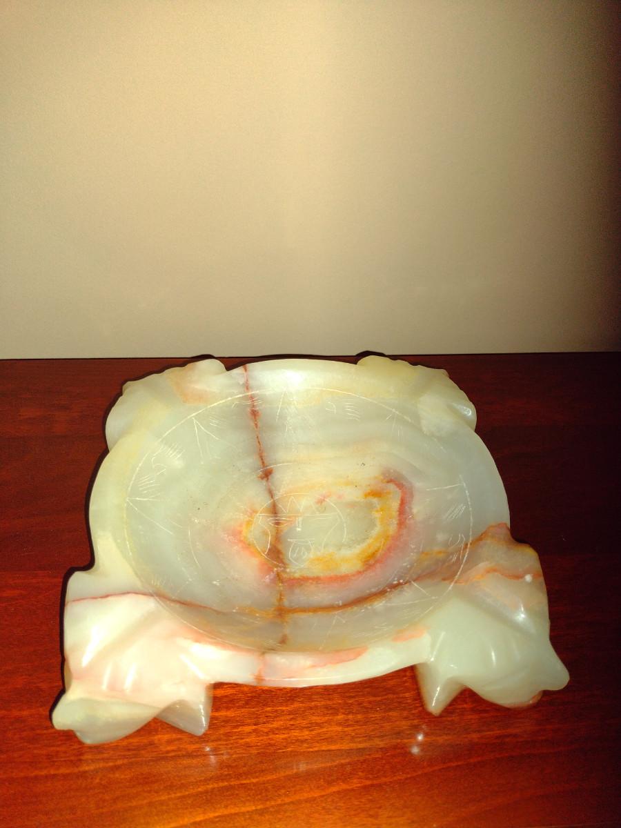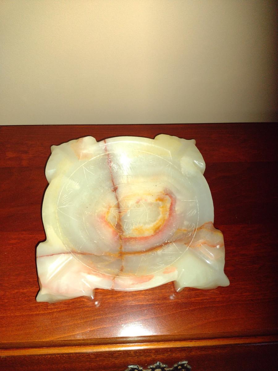 Vintage Carved Stone Ashtray- Possibly Onyx Marble- Approx 7" Square, 1 5/8" Tall
