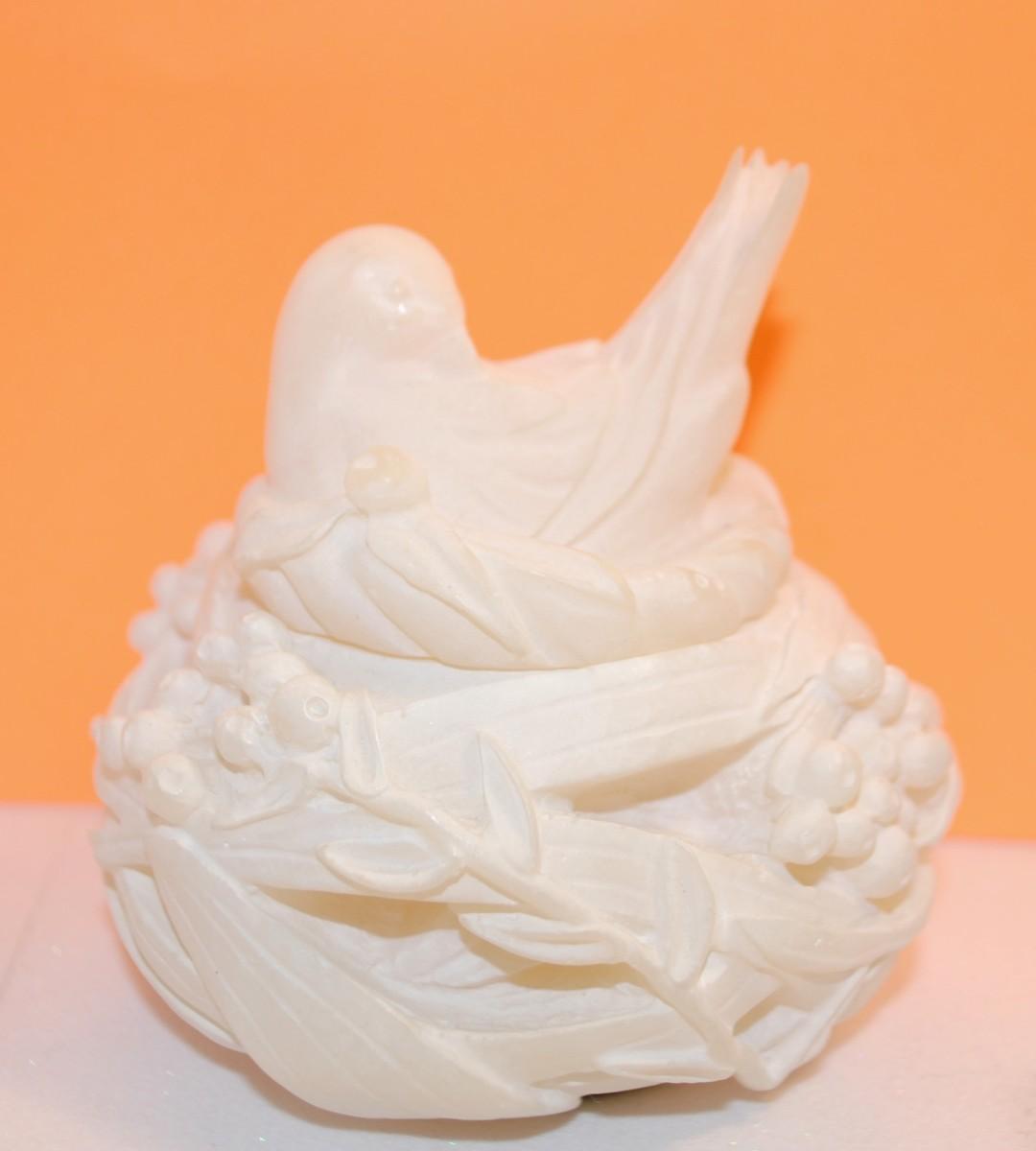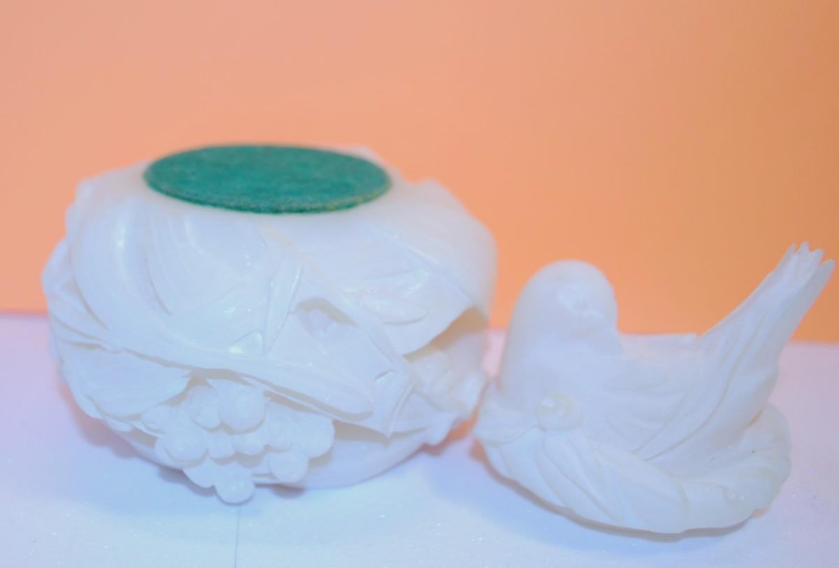 Vintage Carved White Jade Style Trinket Box with Bird Cover
