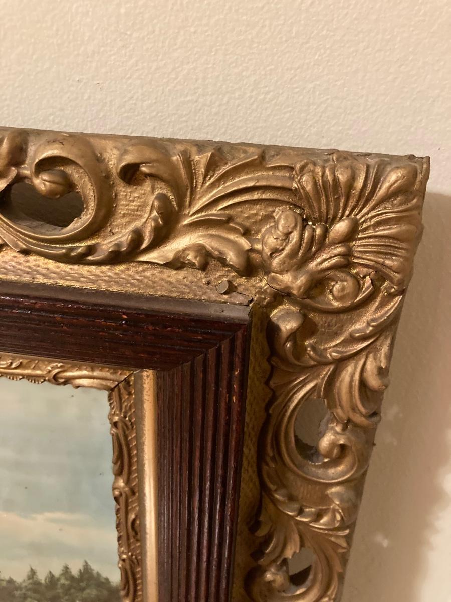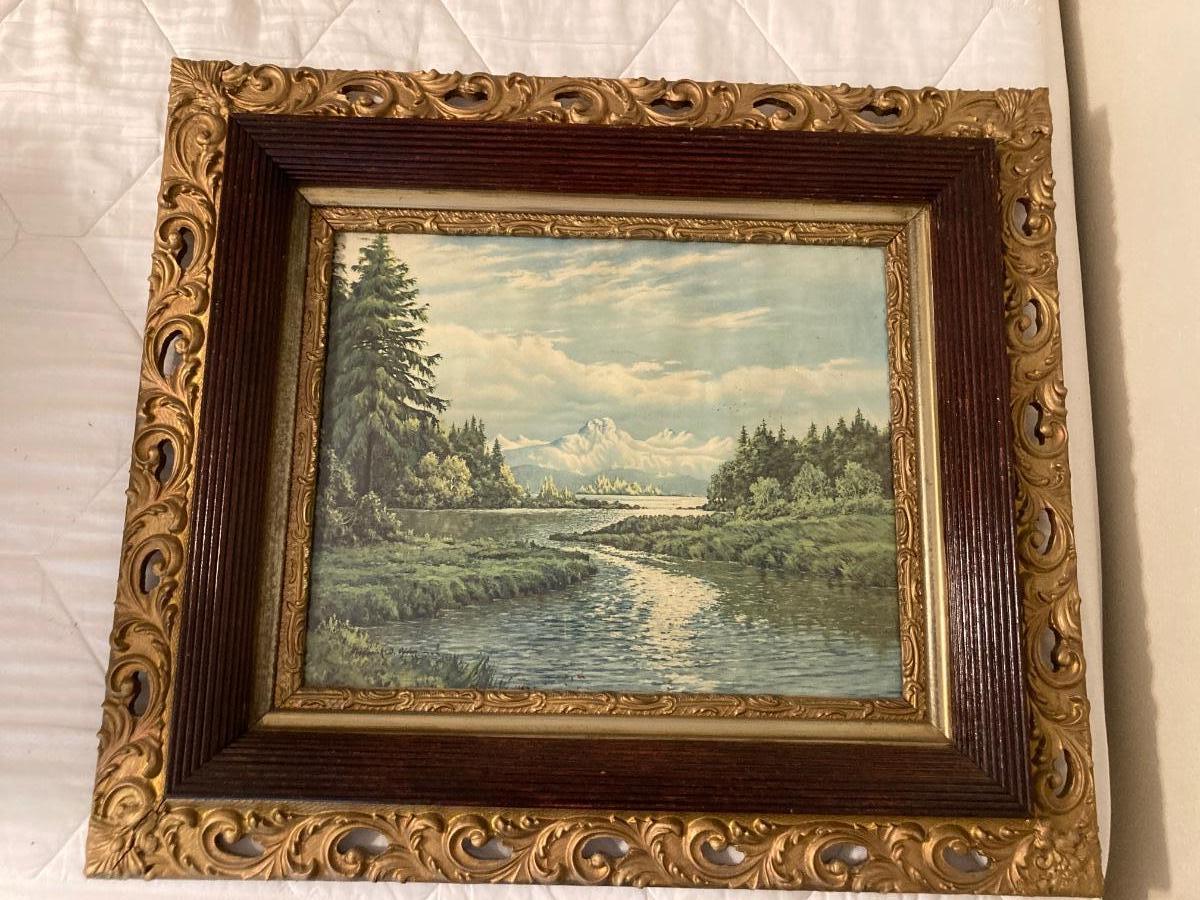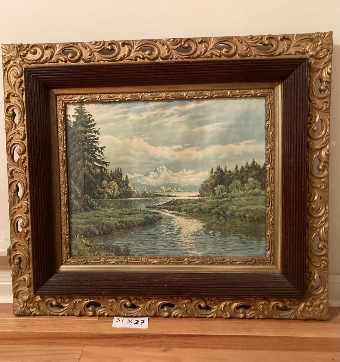 Beautiful antique ornate multilayered frame -framed river view landscape print by Frederick Ogden. 31” X 27”