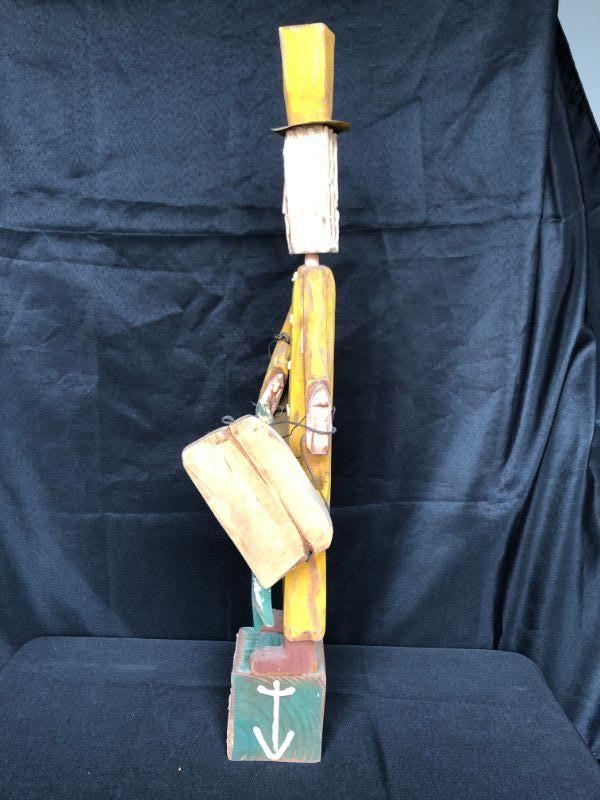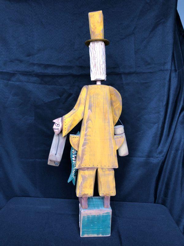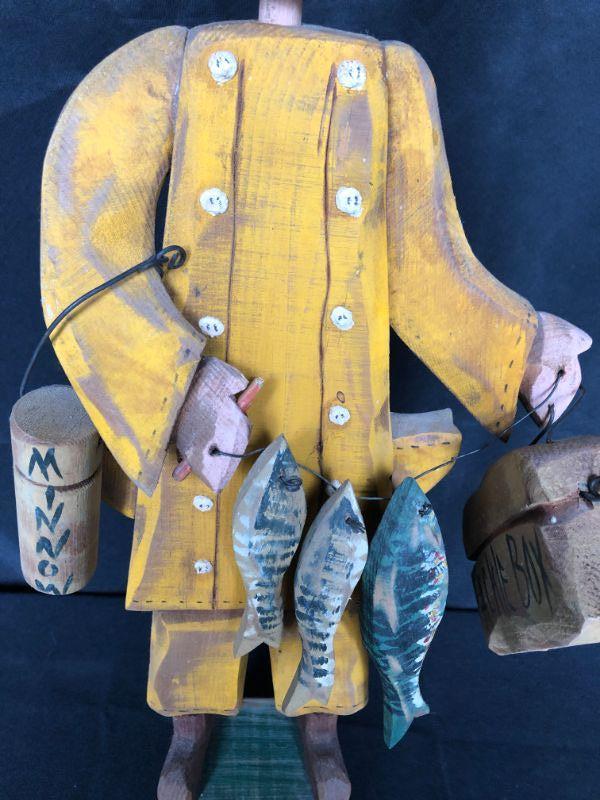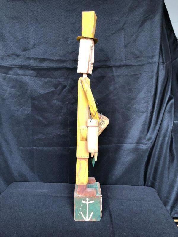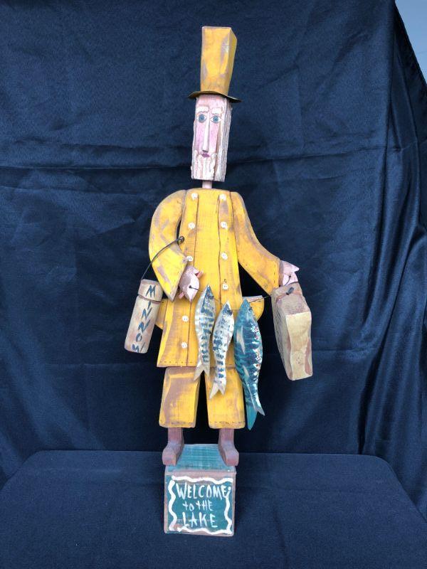 Vintage Carved Wood Fisherman Figurine 25" high