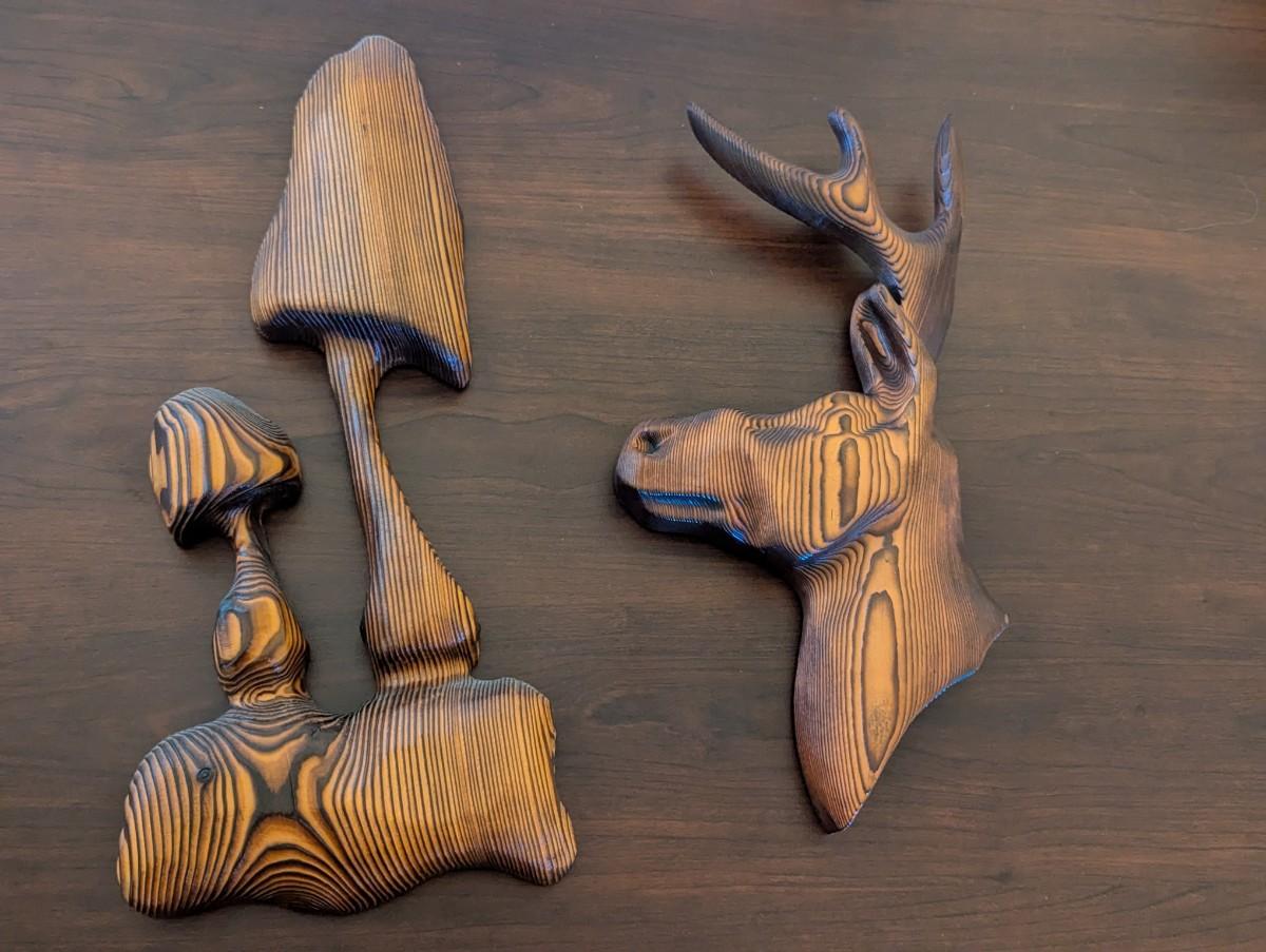 Vintage Carved Wood Mushroom & Stag Wall Hangings