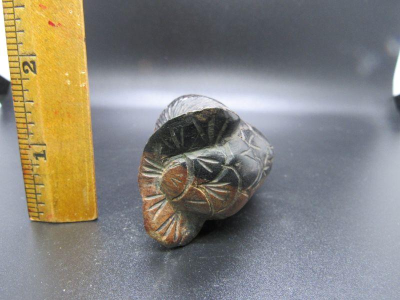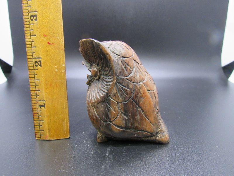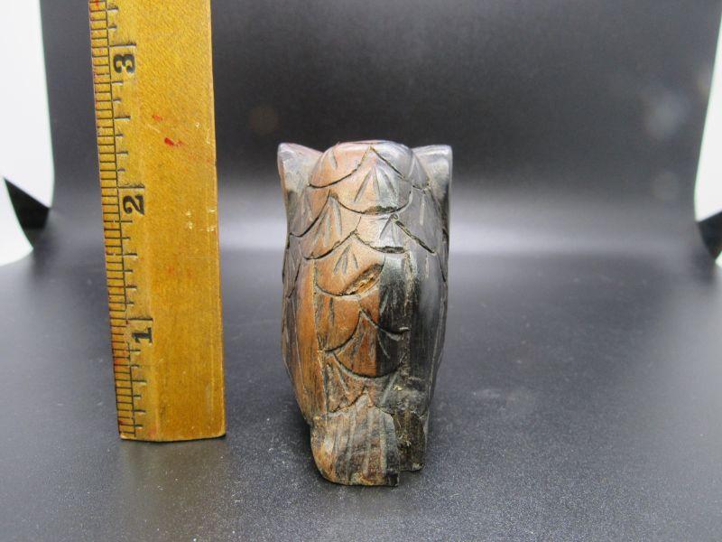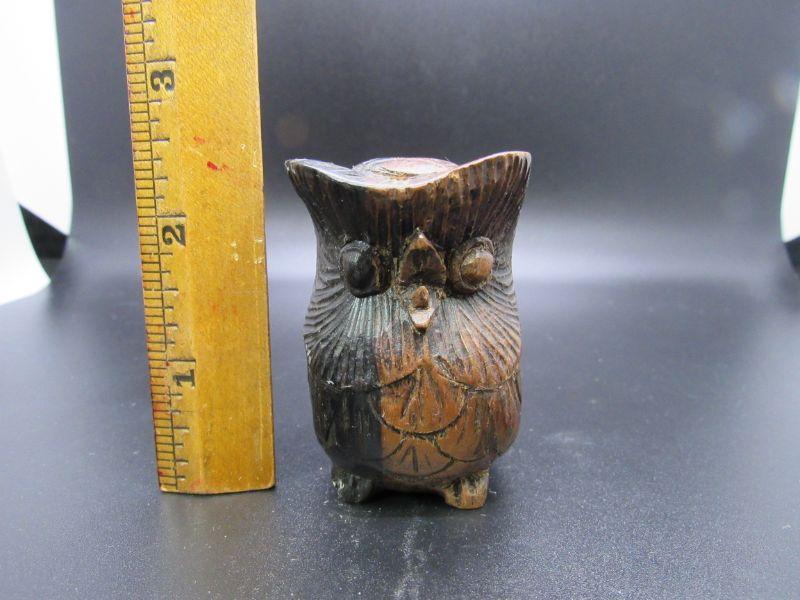 Vintage carved owl figurine. Miniature size about 2.5". Bottom has Ethiopia written on it, must have been a souvenir. Multi tone wood.