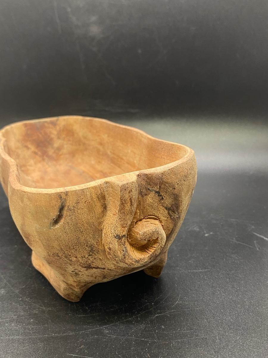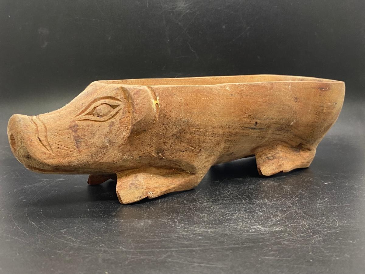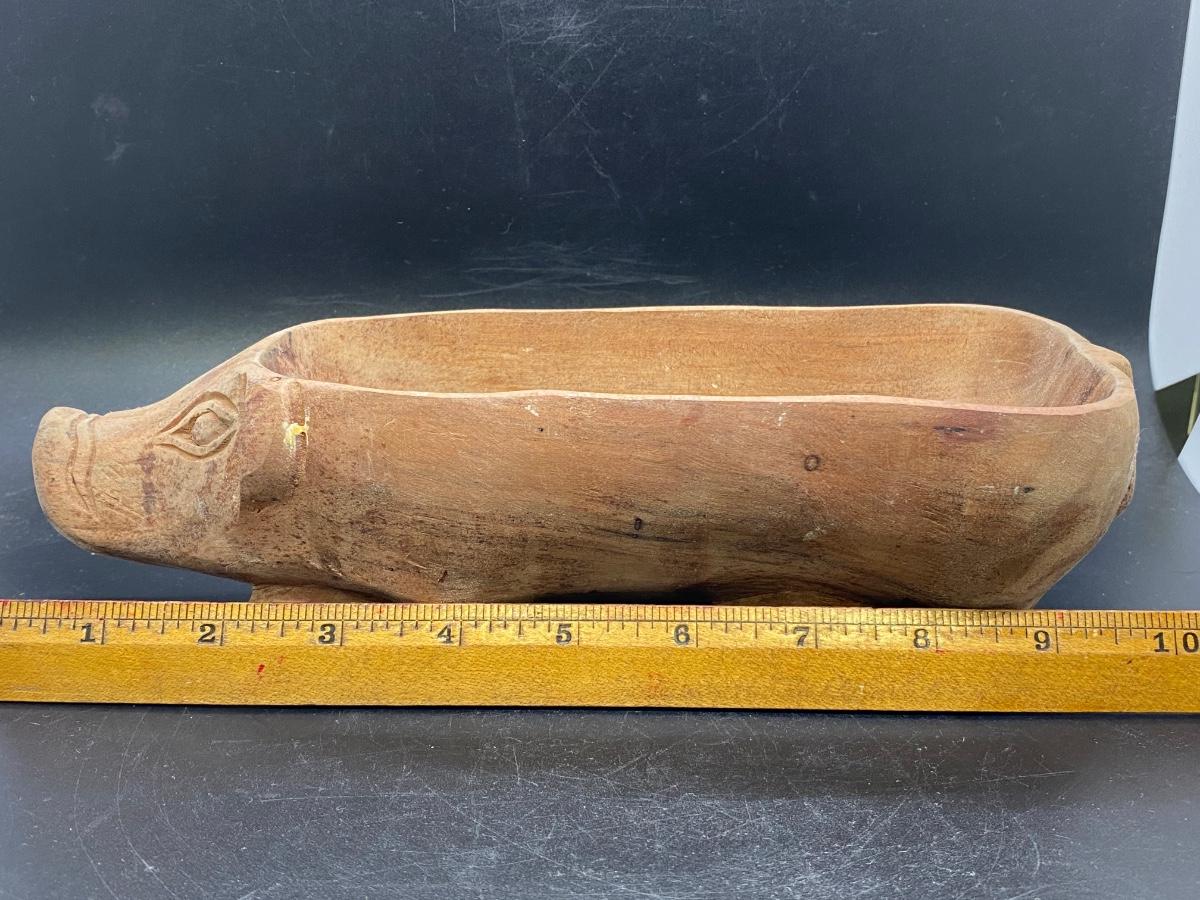 Vintage Carved Wood Pig Hog Bowl, there is some light wear to the bowl, but there is no significant damage and is in good displayable condition. Check pictures for more details and for sizing.