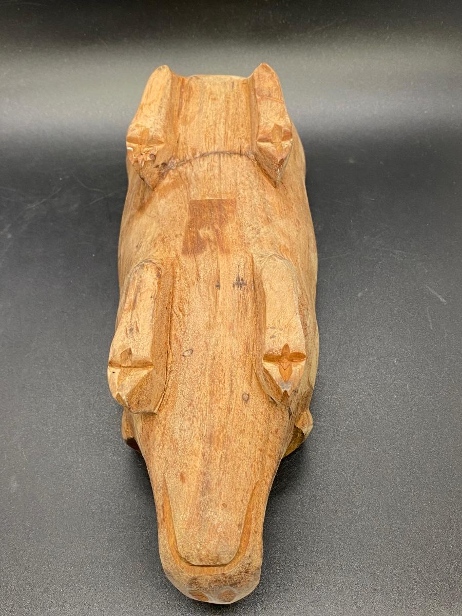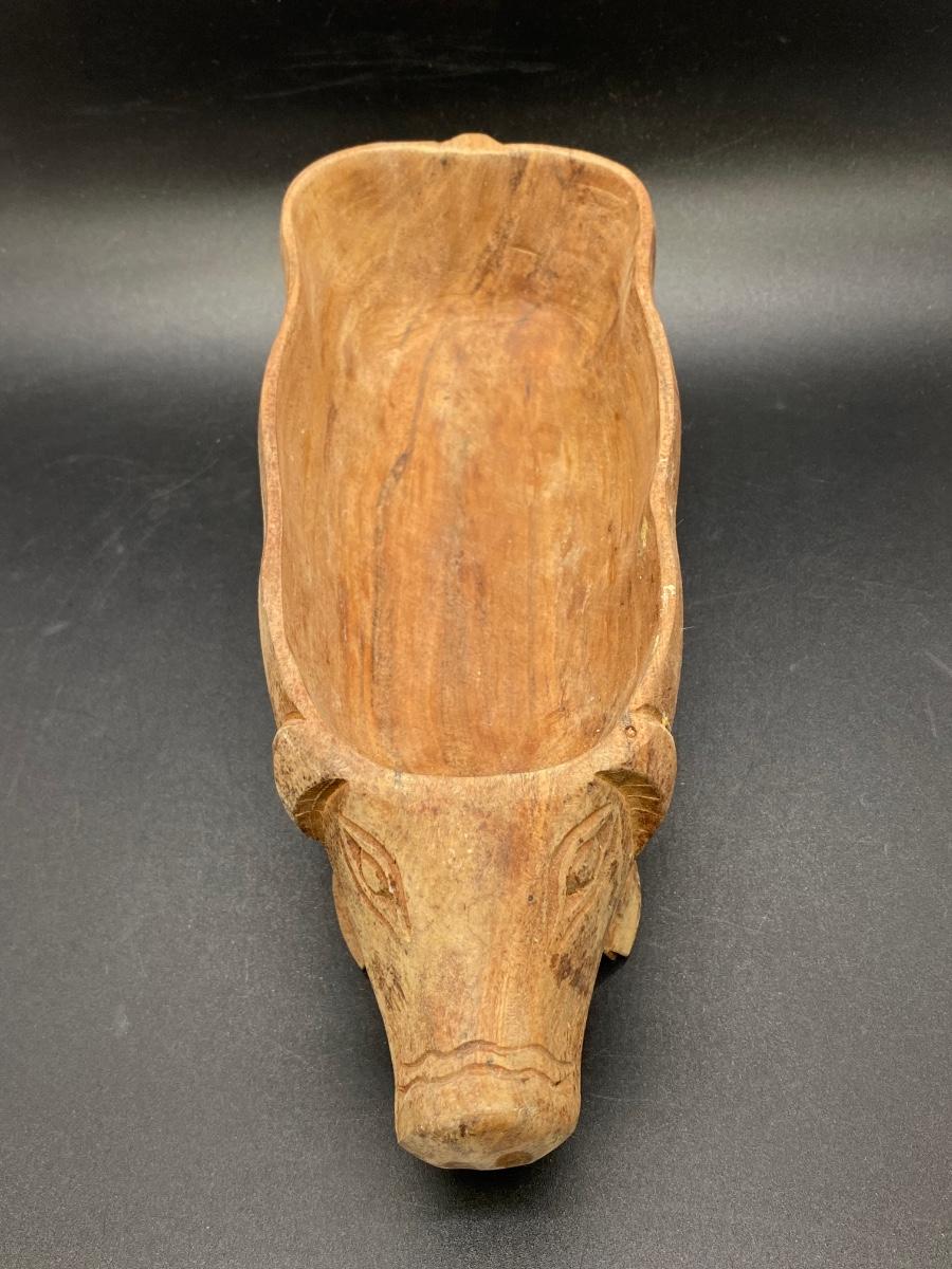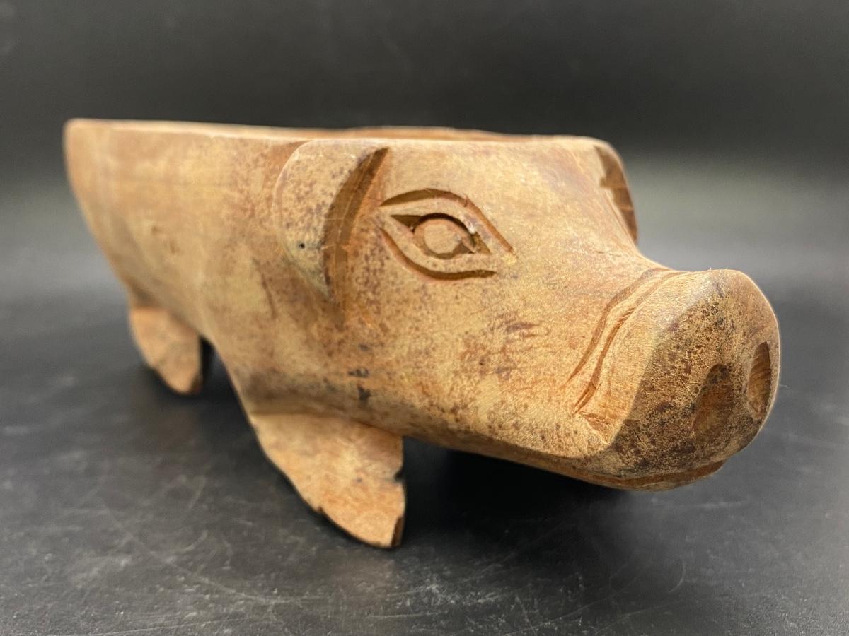 Vintage Carved Wood Pig Hog Bowl, there is some light wear to the bowl, but there is no significant damage and is in good displayable condition. Check pictures for more details and for sizing.