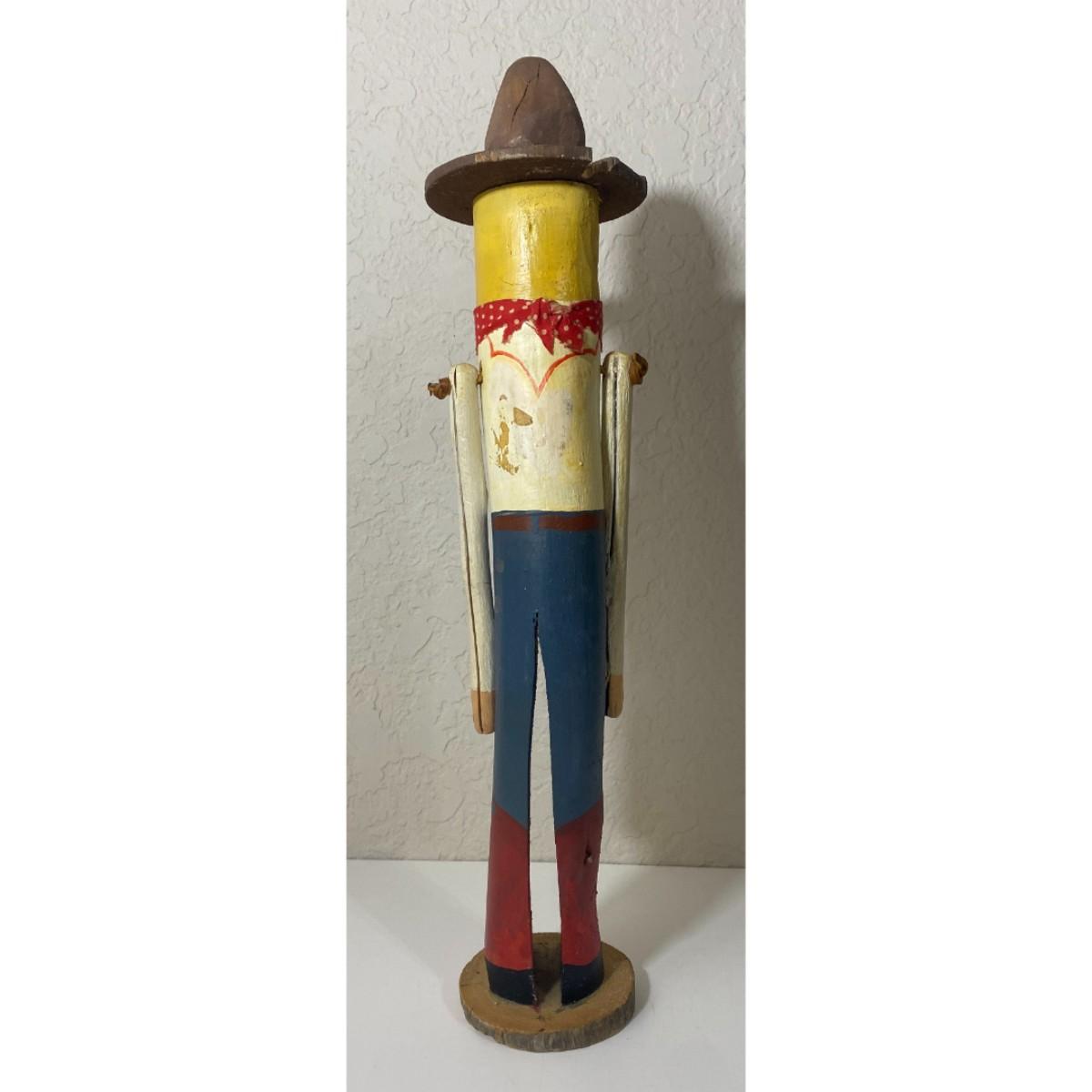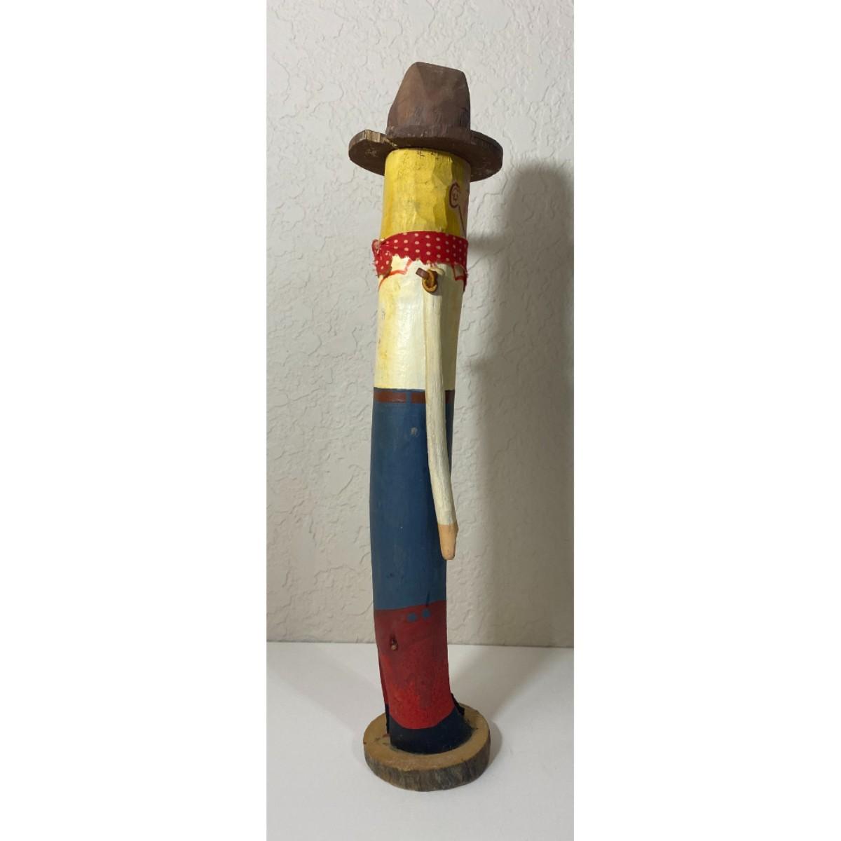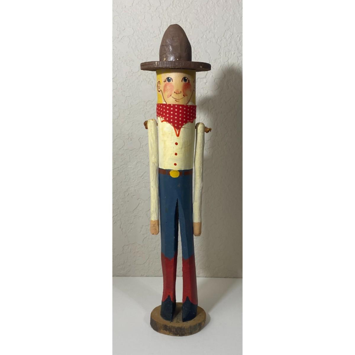 Vintage Carved Wooden Cowboy Figure Folk Art Boots Hat Bandana Americana Western