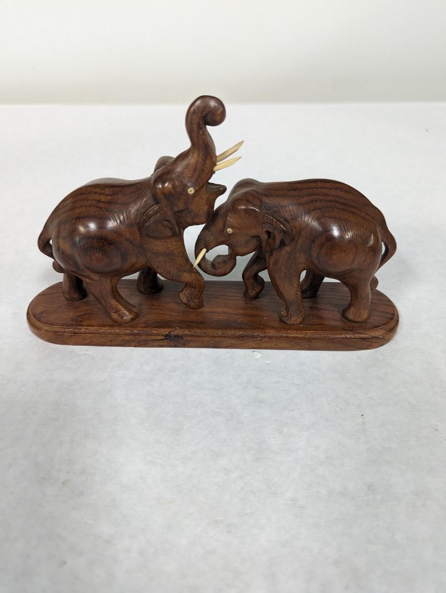 Vintage Carved Wooden Elephant Statue