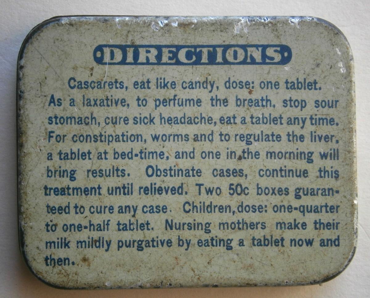 Vintage "Cascarets" Advertising Tin, 2 x 1 5/8 in., lithographed tin.