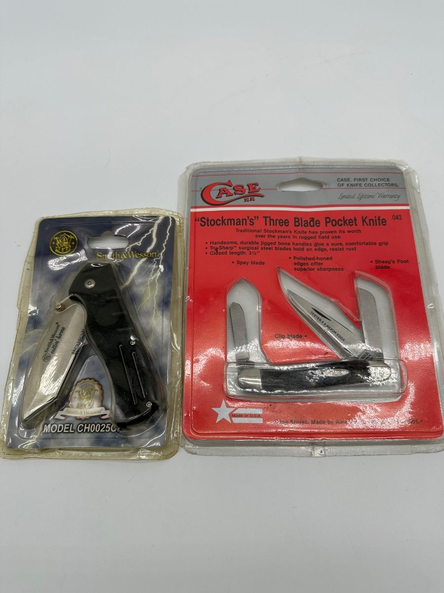 Vintage Case XX Stockman 6318 SS Pocket Knife (NIB) + Smith & Wesson CH0025CP Folding Knife NIB