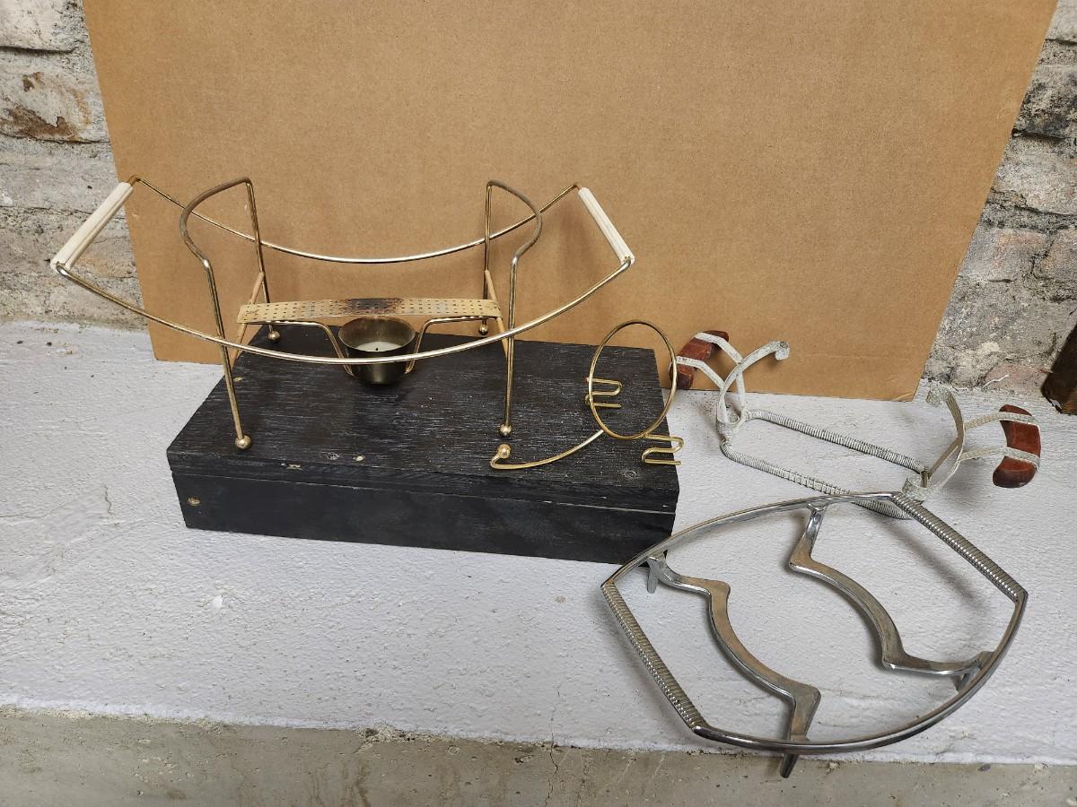 4 vintage holder for Pyrex, Correlle and the like. 3 hold casseroles and the 4thnis for a chip and dip.