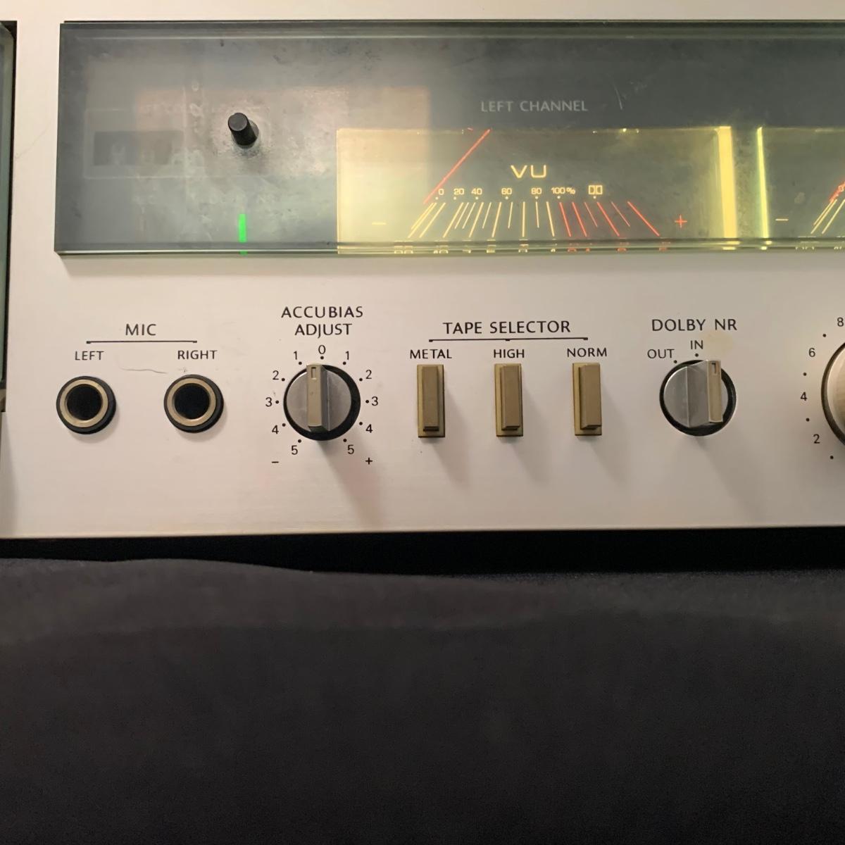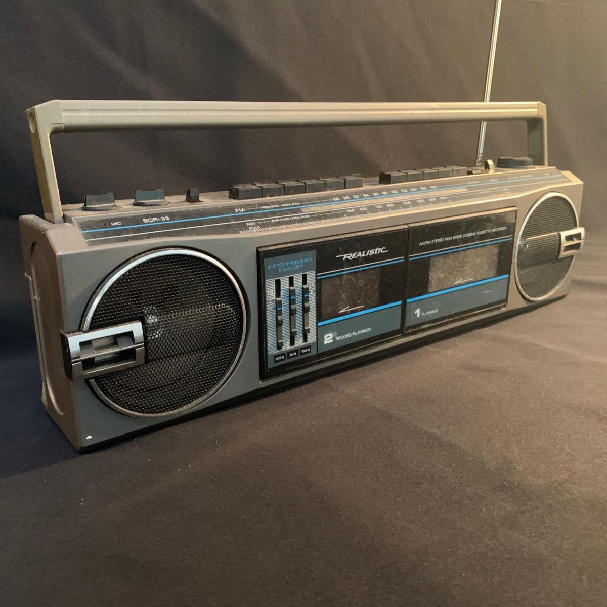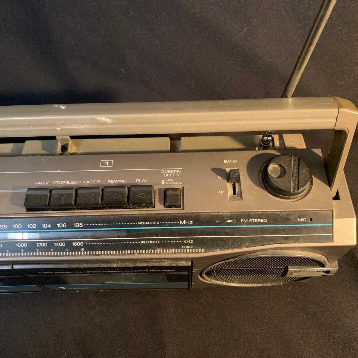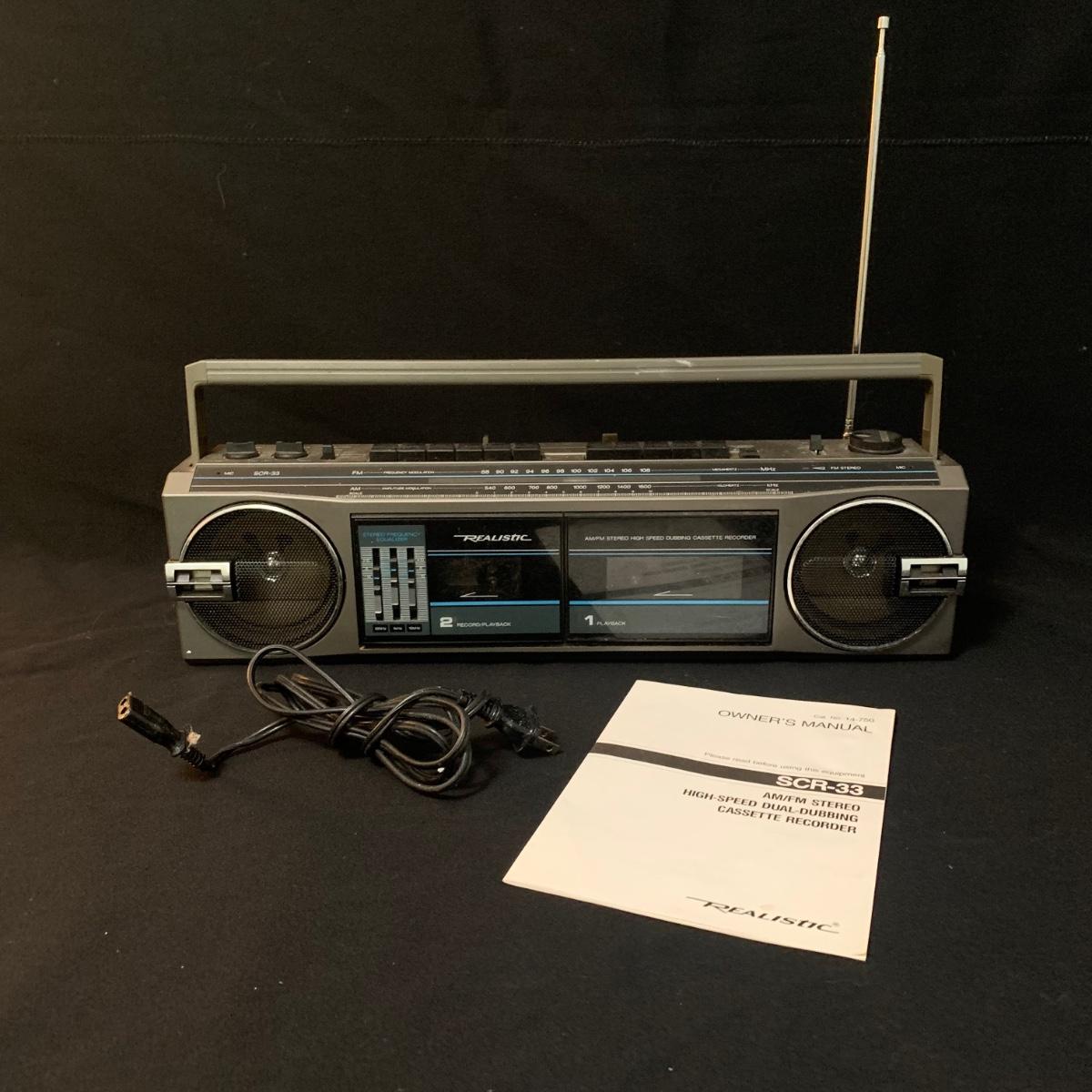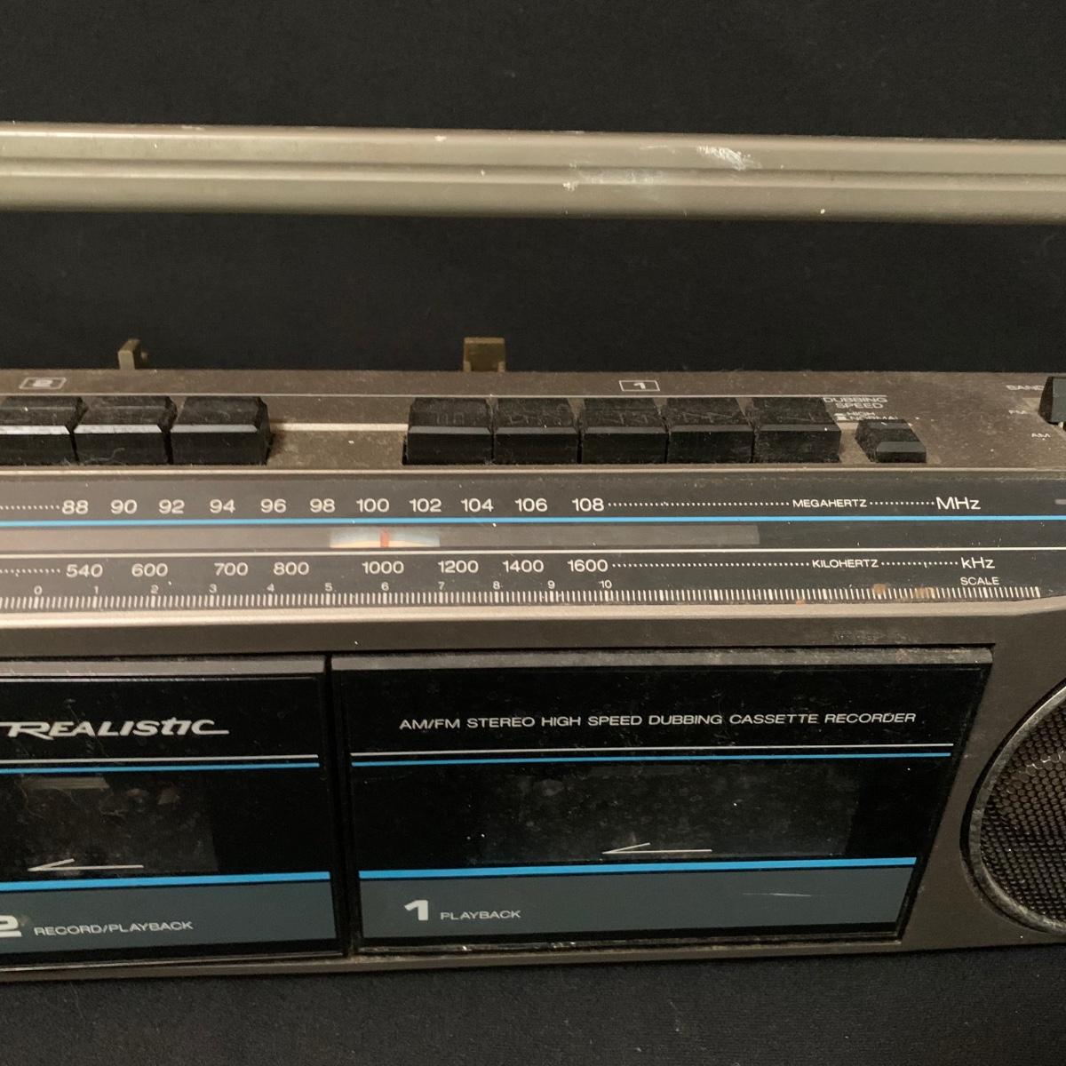 This vintage cassette collection includes a Realistic SCR-33 High Speed Dual-Dubbing Cassette Recorder Stereo, LEBO TA-320 8-OHM headphones, Lafayette microphone, Sanyo Stereo Cassette Deck RD S20, Onkyo TA-2020 Stereo Cassette Deck, and Panasonic RX-5285 Stereo. This collection is perfect for recording and playing cassettes. All items power on. The Panasonic stereo powers on, however doesn’t appear to function. Could likely be useful for parts. Largest cassette deck is the Onkyo. It measures, 16.5”L x 9.5”L x 5”H. The Sanyo and Onkyo decks power on. We are unable to test output functionality. Microphone and headphones have not been tested.