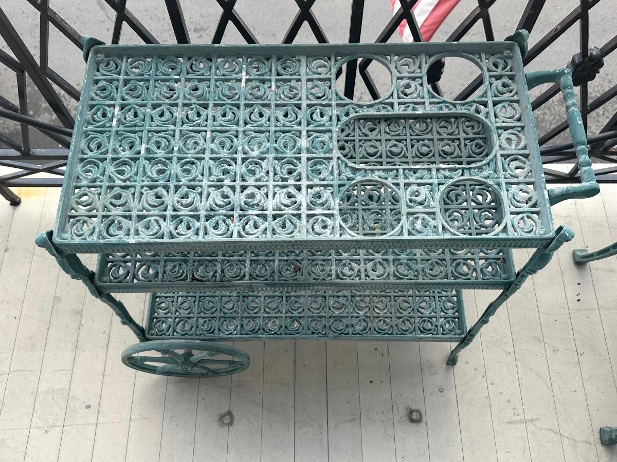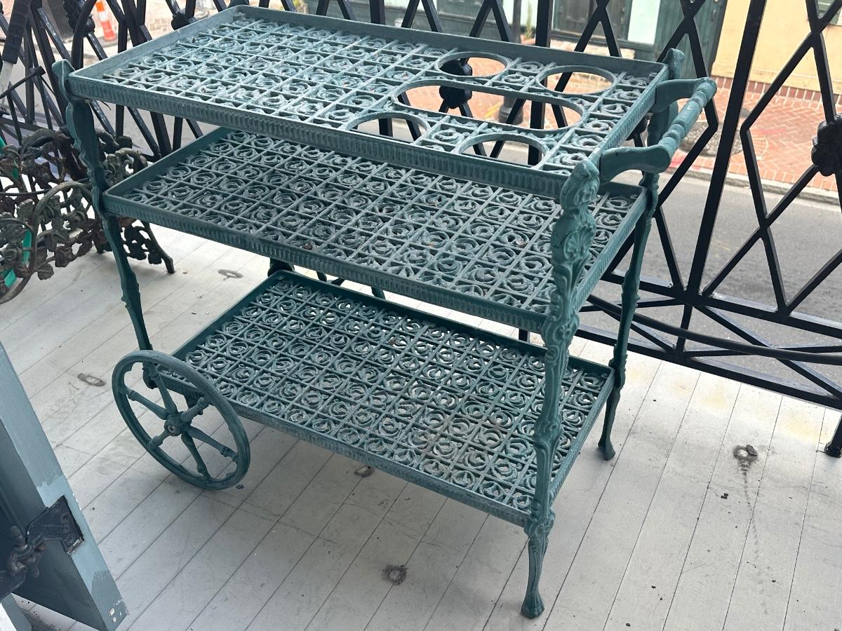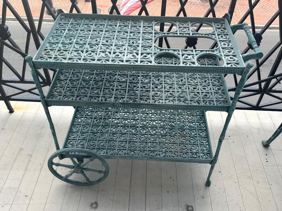 Vintage Cast Aluminum Three-Tier Patio Bar Cart