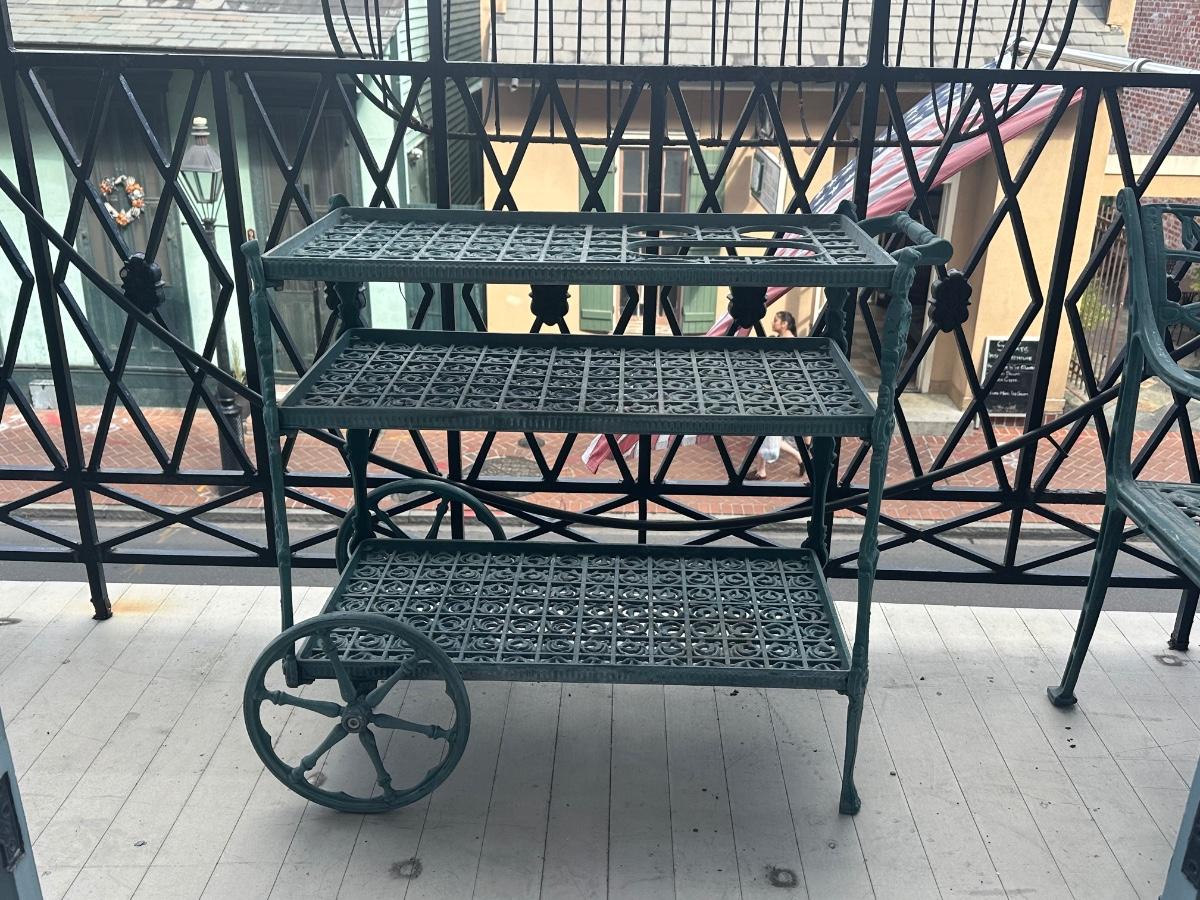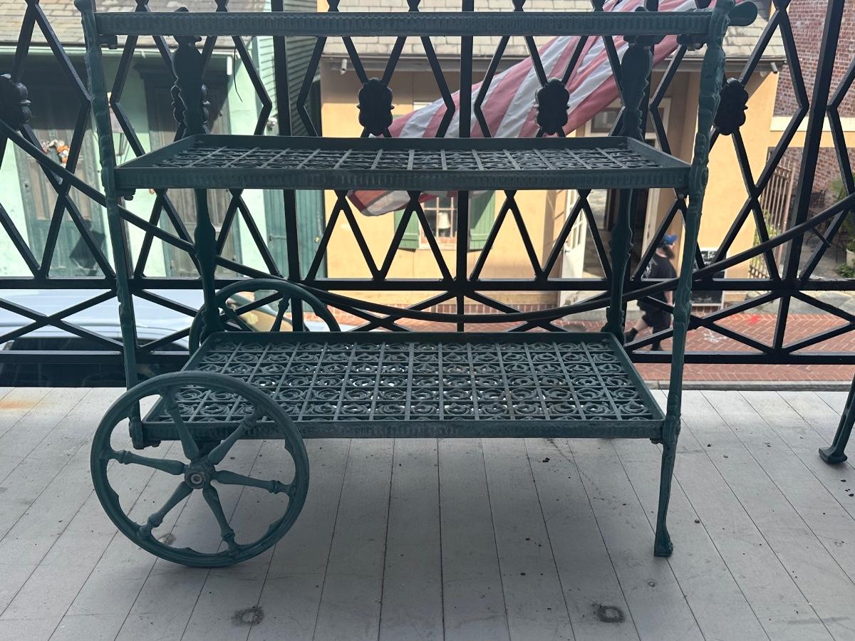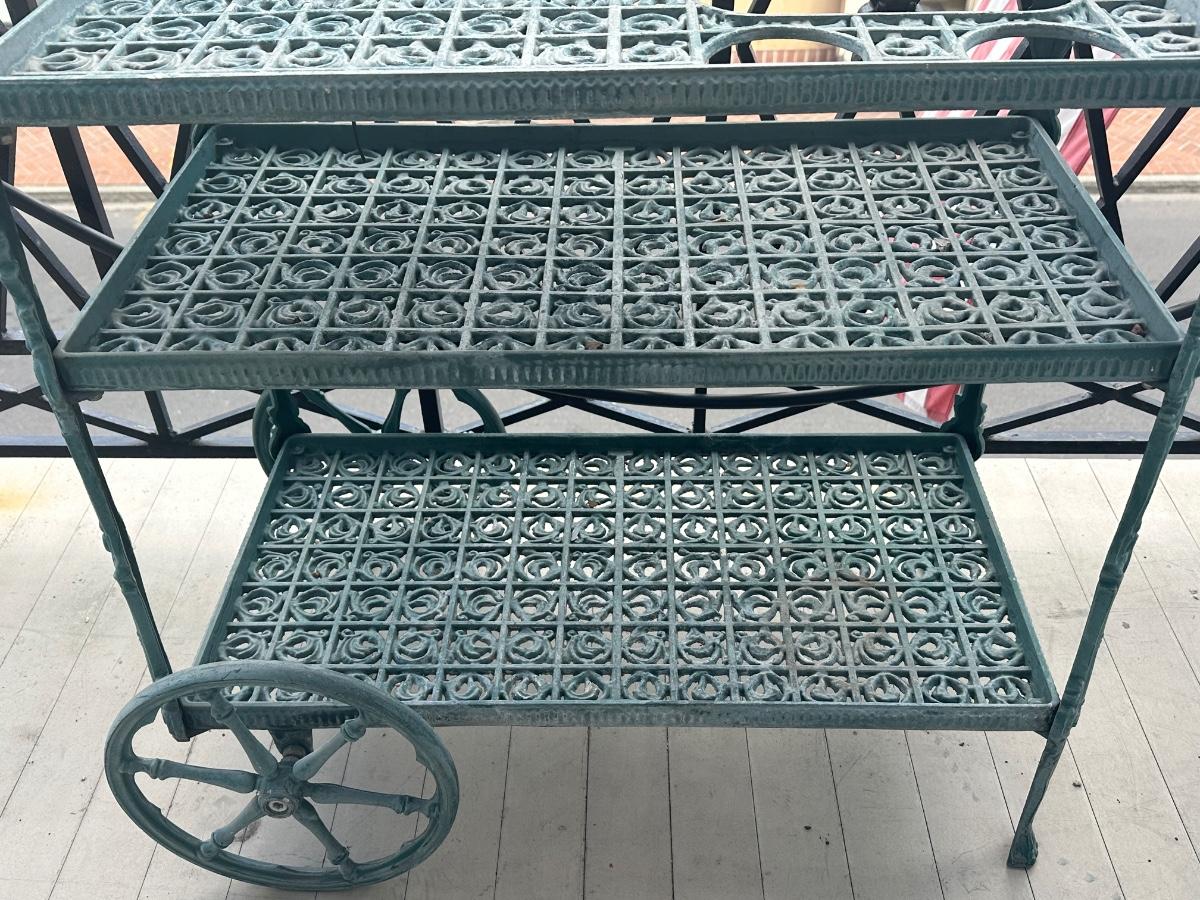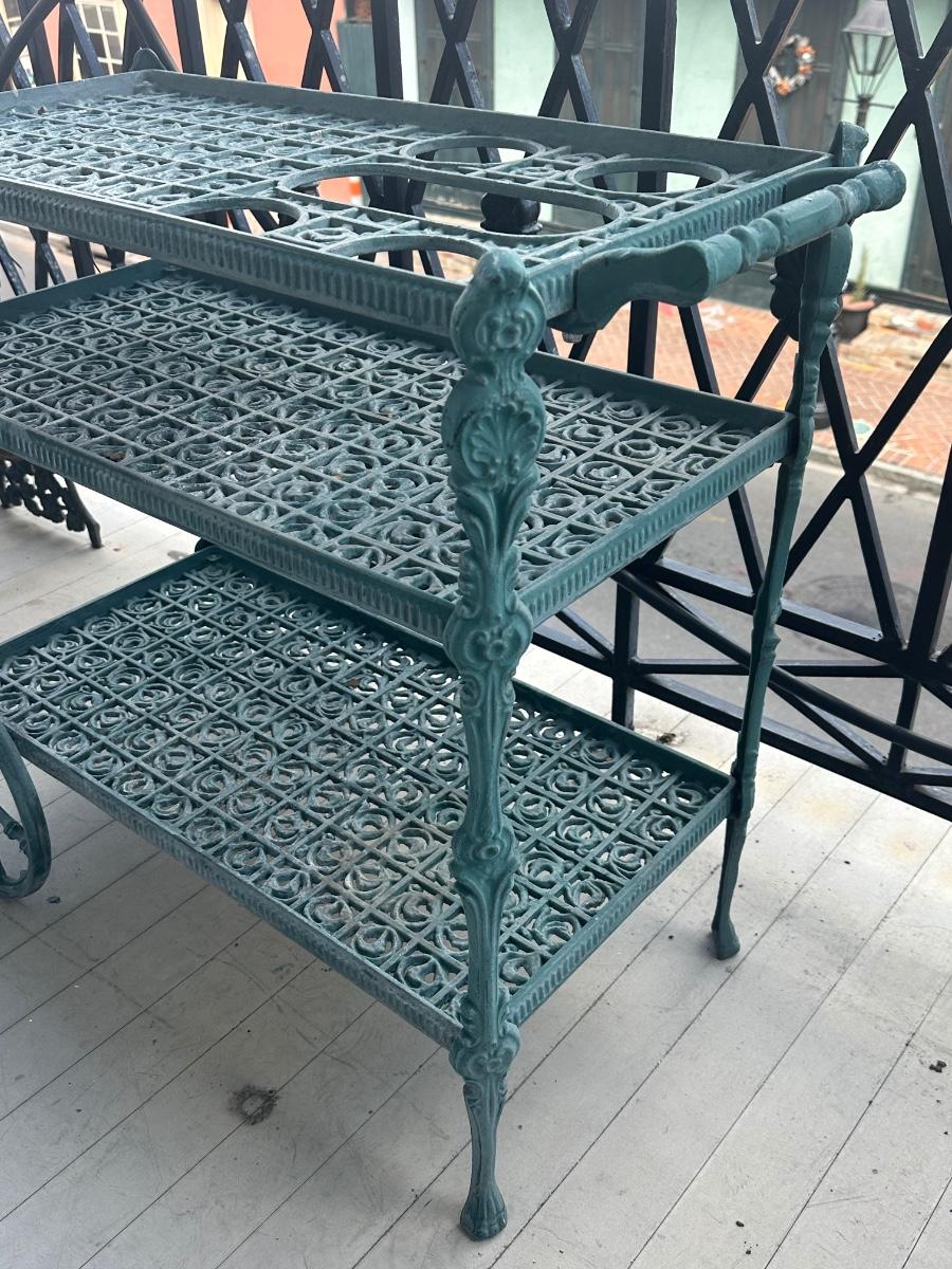 Vintage Cast Aluminum Three-Tier Patio Bar Cart