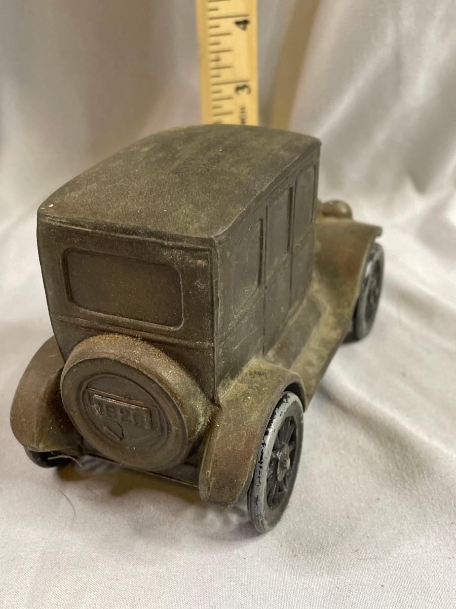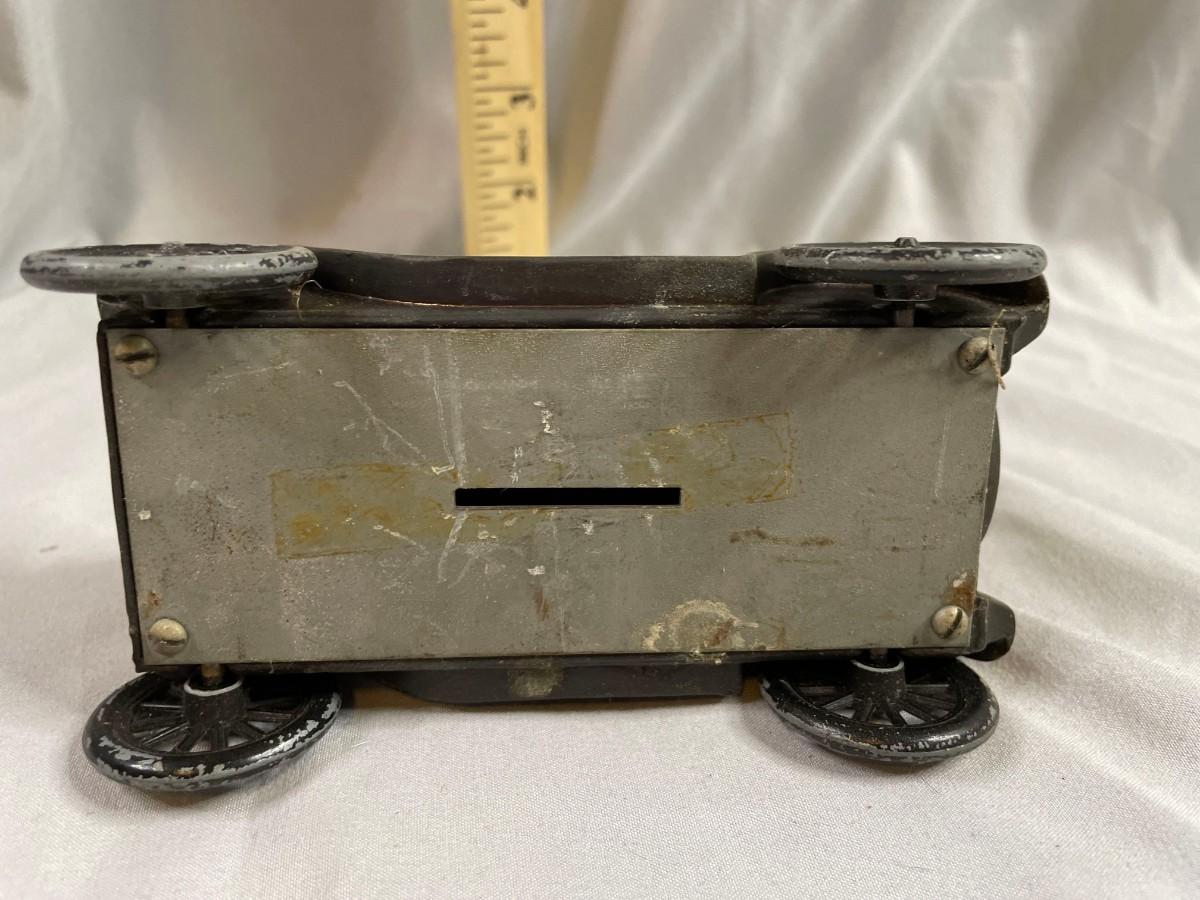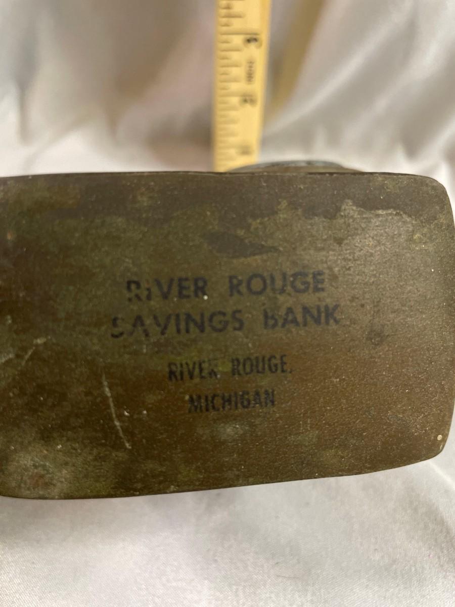 This bank is all metal which means the tires as well.  It was a promotional bank for the River Rouge Savings Bank in Michigan. The only information that I could find on this bank came from a lawsuit they filed in a case that involved them holding first mortgages on residential construction that was defaulted on by the builders.<br />