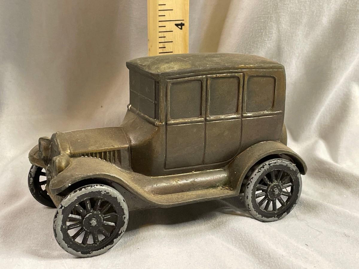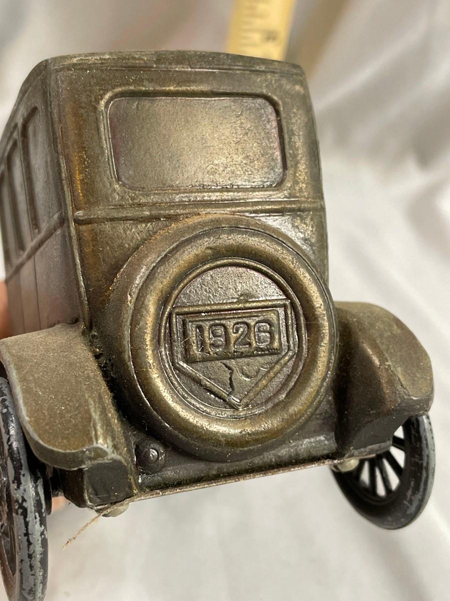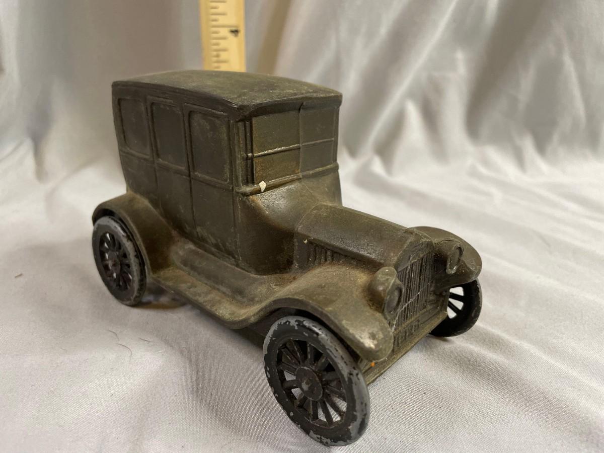 This bank is all metal which means the tires as well.  It was a promotional bank for the River Rouge Savings Bank in Michigan. The only information that I could find on this bank came from a lawsuit they filed in a case that involved them holding first mortgages on residential construction that was defaulted on by the builders.<br />
