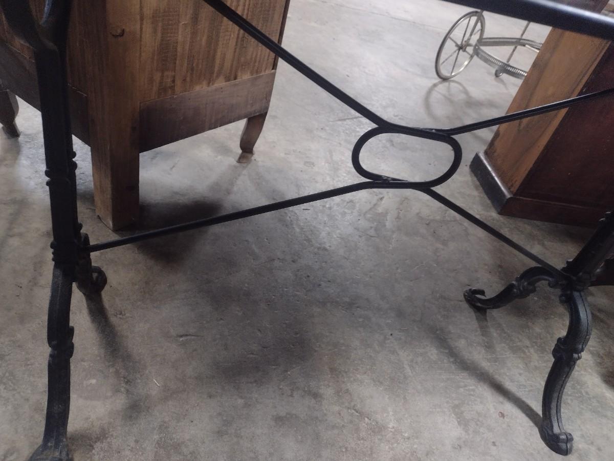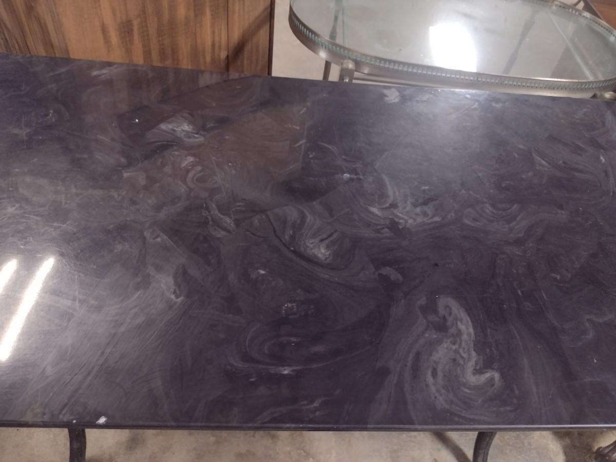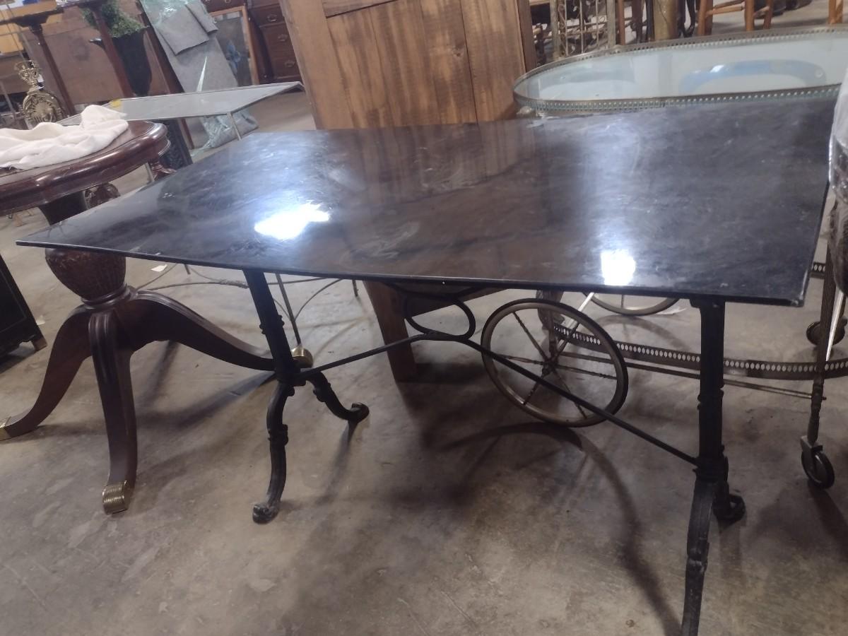 Vintage Cast Iron Base Marbled Resin Top Worktable