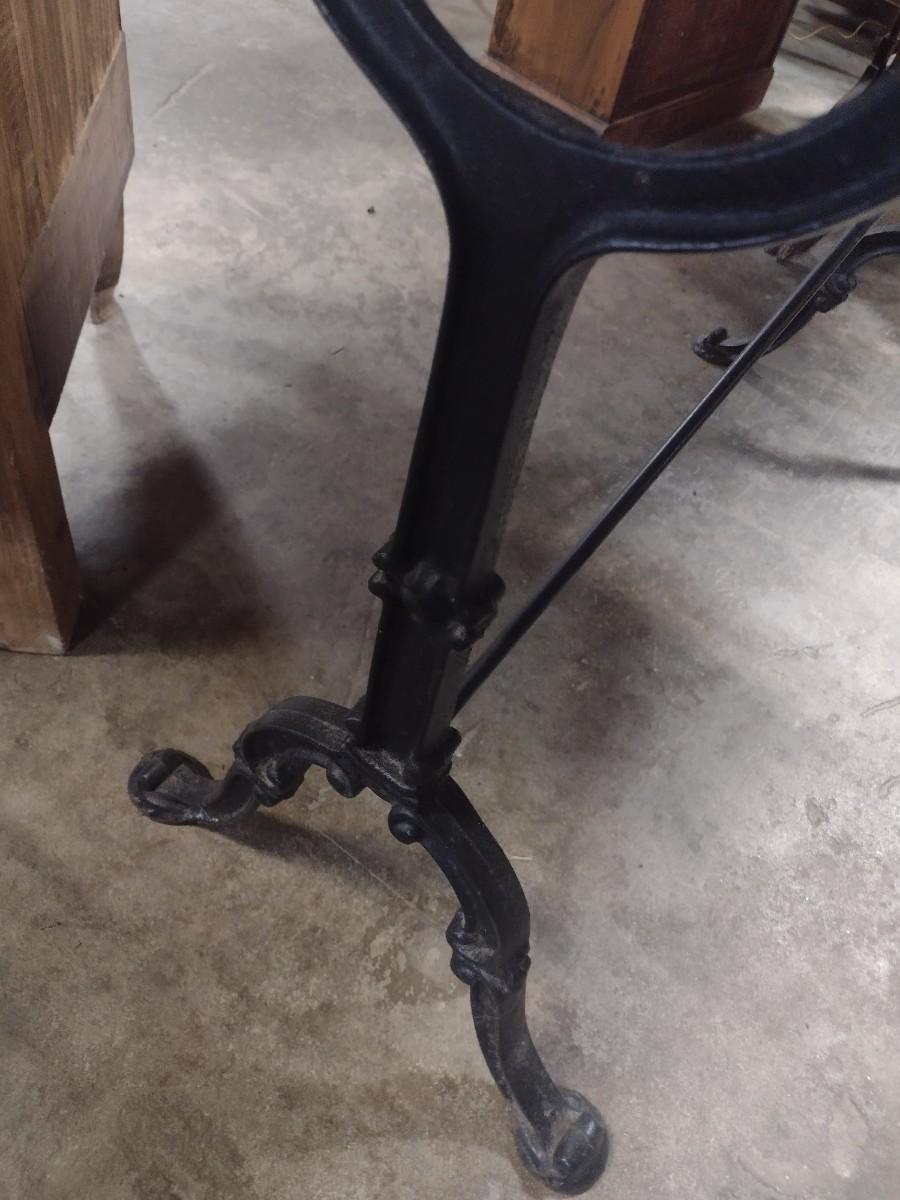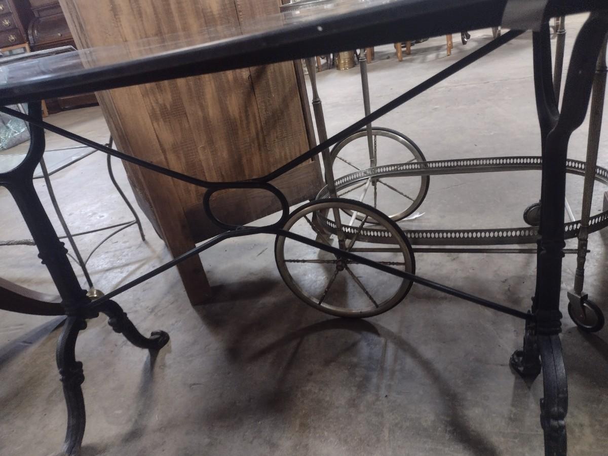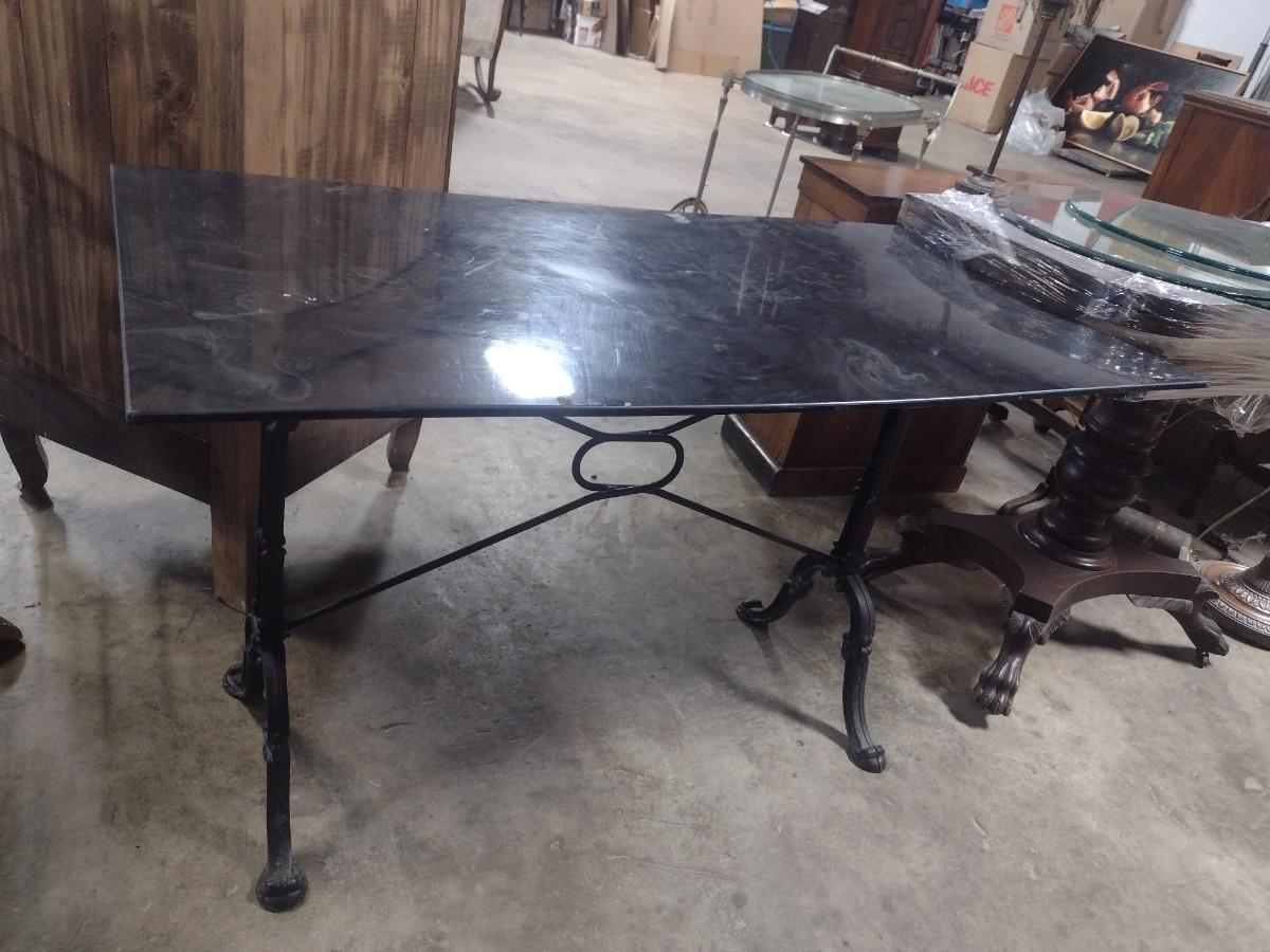 Vintage Cast Iron Base Marbled Resin Top Worktable