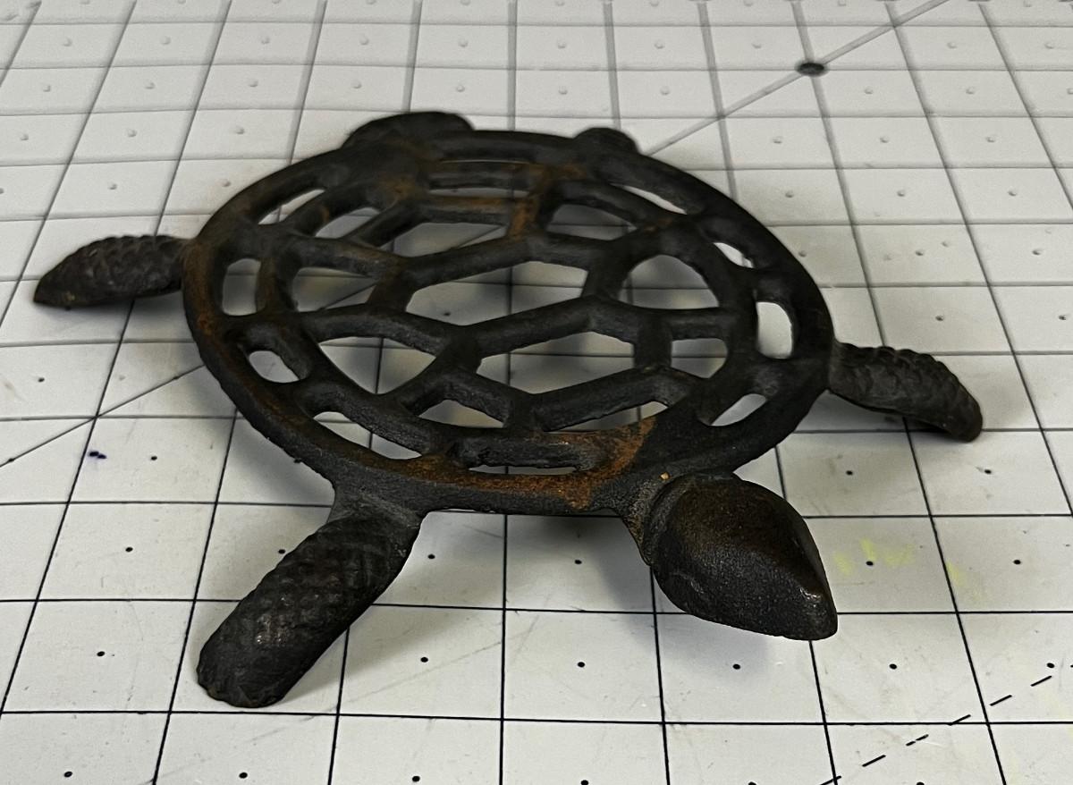 Vintage Cast Iron Black Trivet Turtle