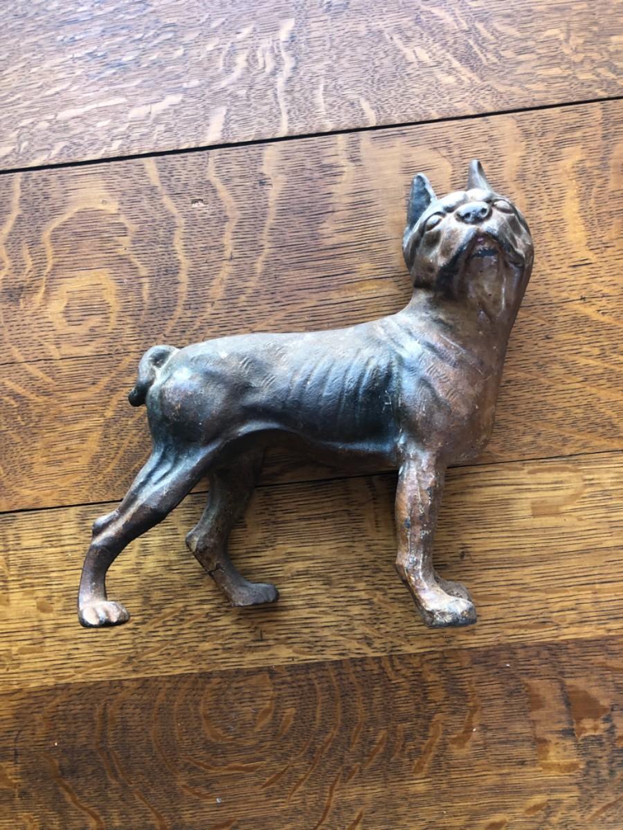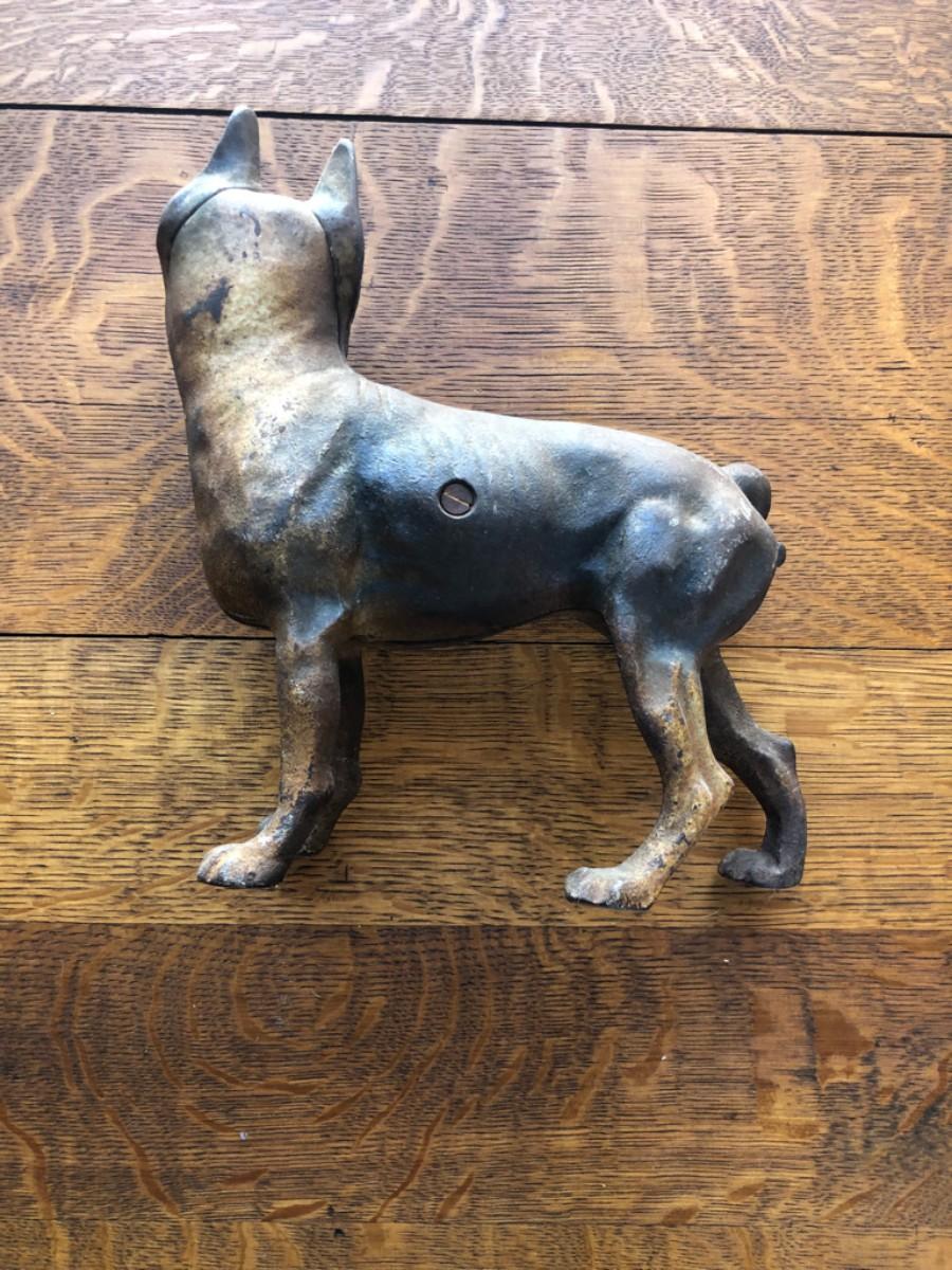 This bull dog shows some still original paint and is in great condition. 9.75 in tall and 9.5 in long