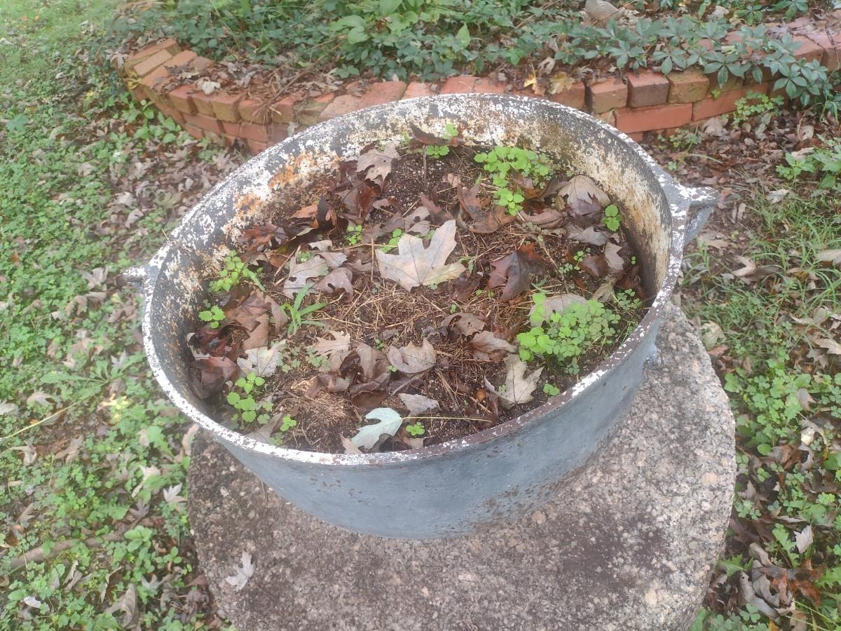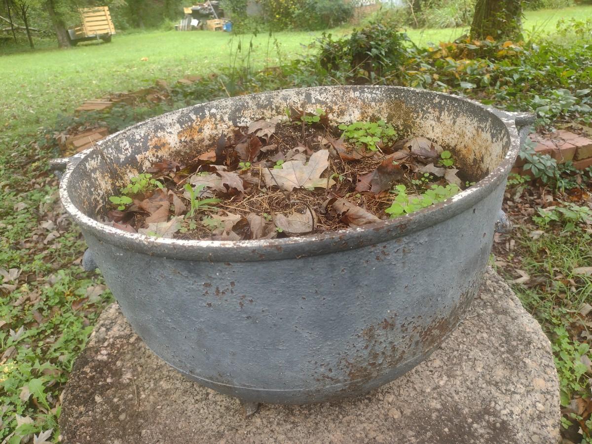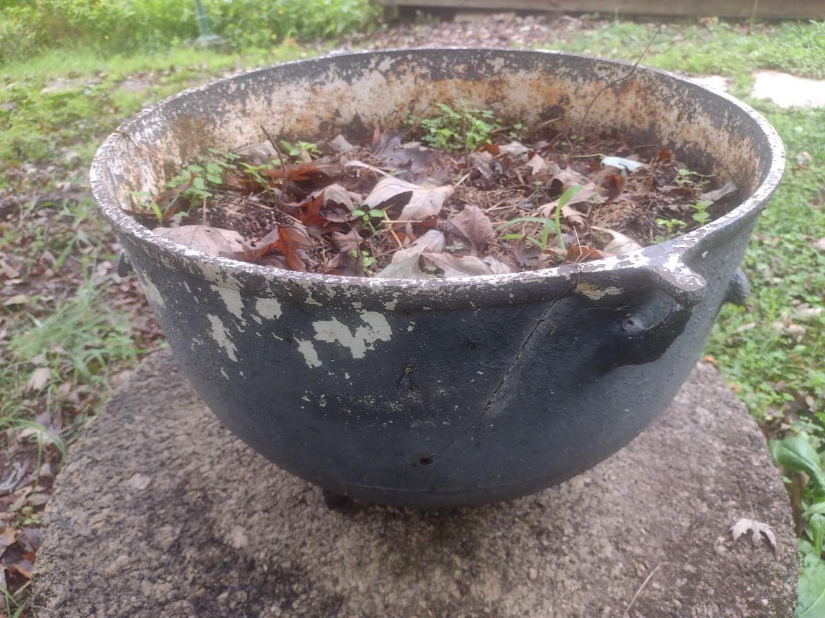 Vintage Cast Iron Cauldron Used as Planter