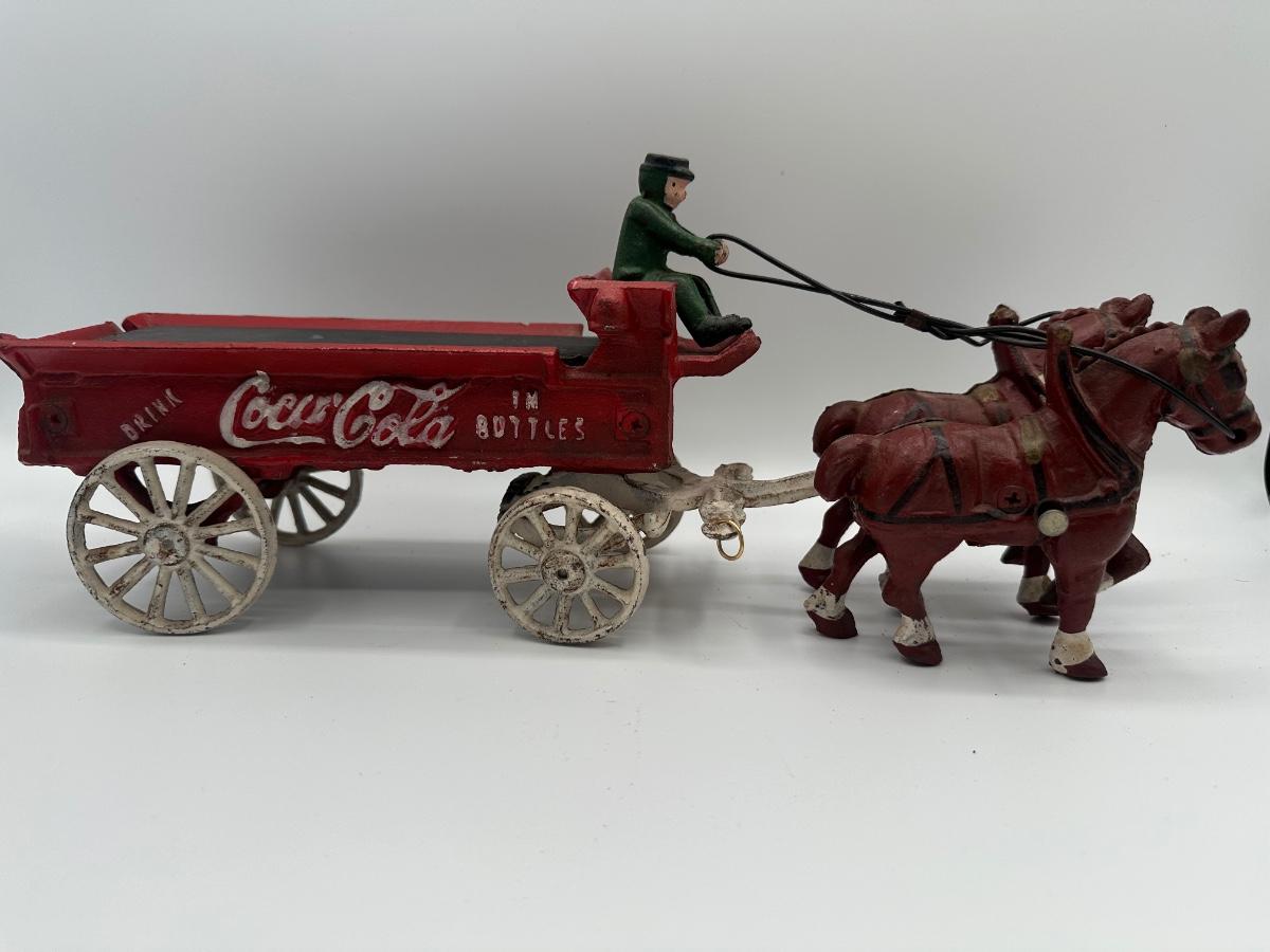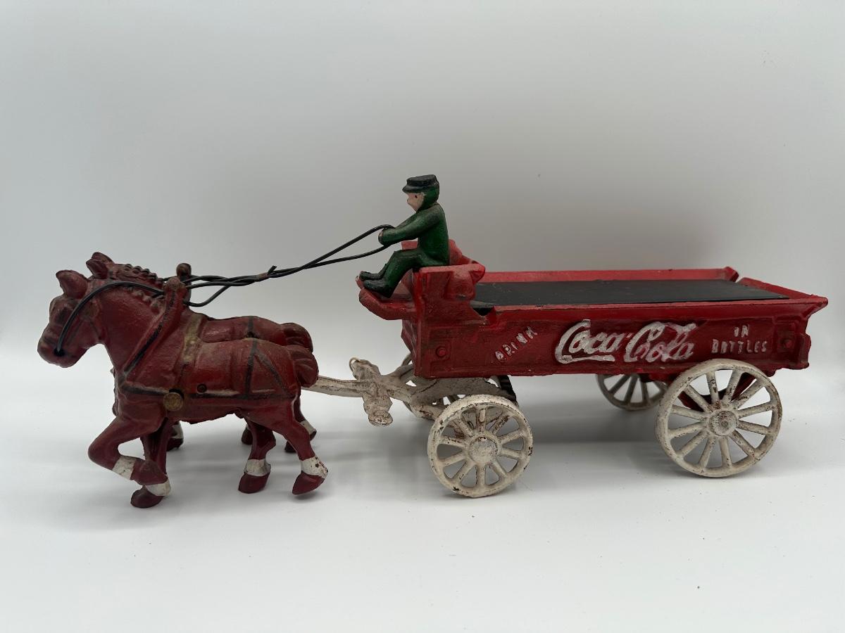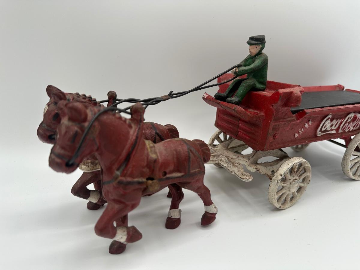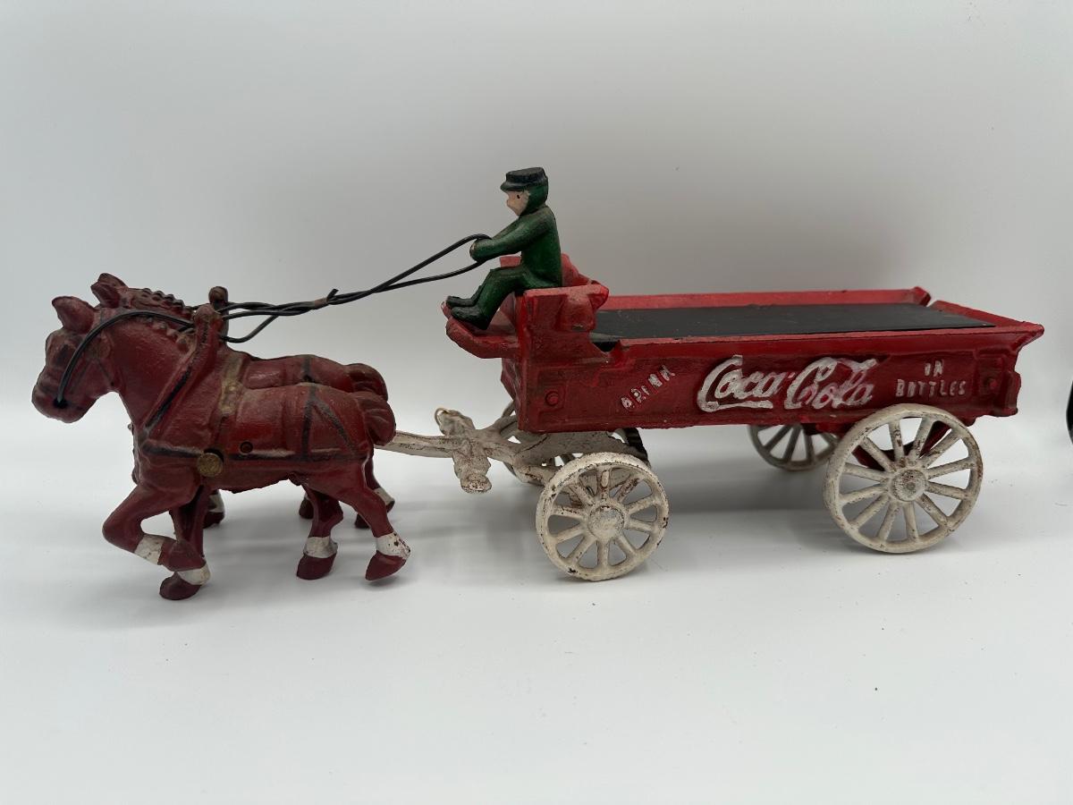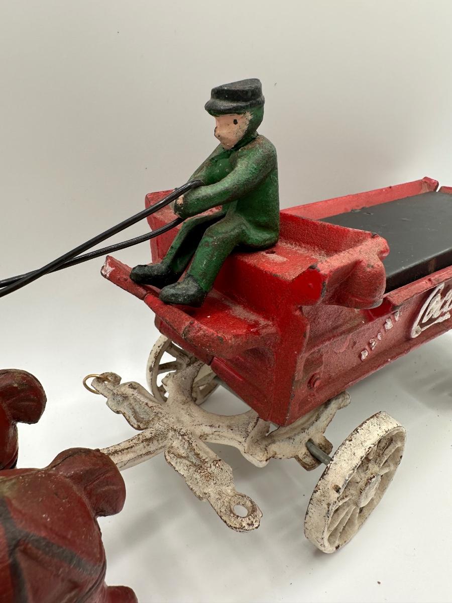Vintage Cast Iron Coca Cola Horse Drawn Wagon