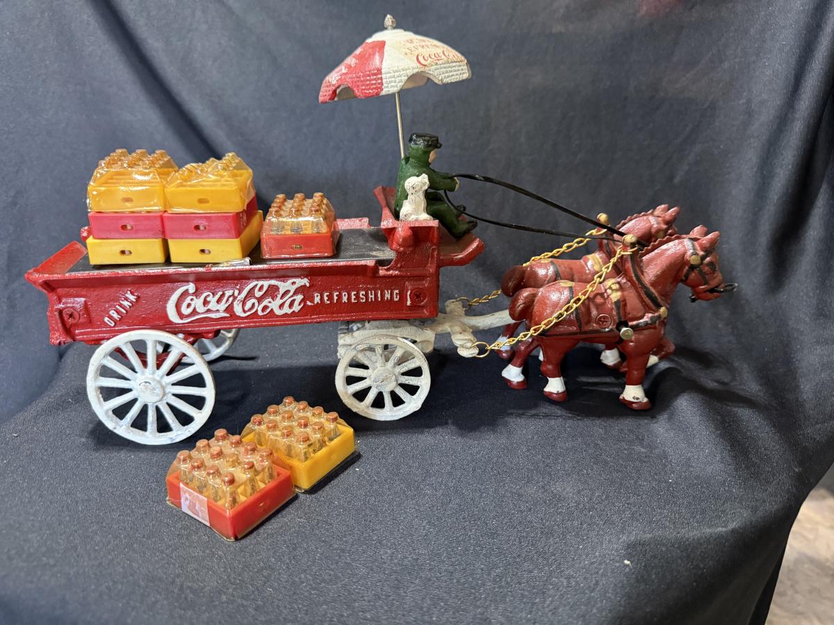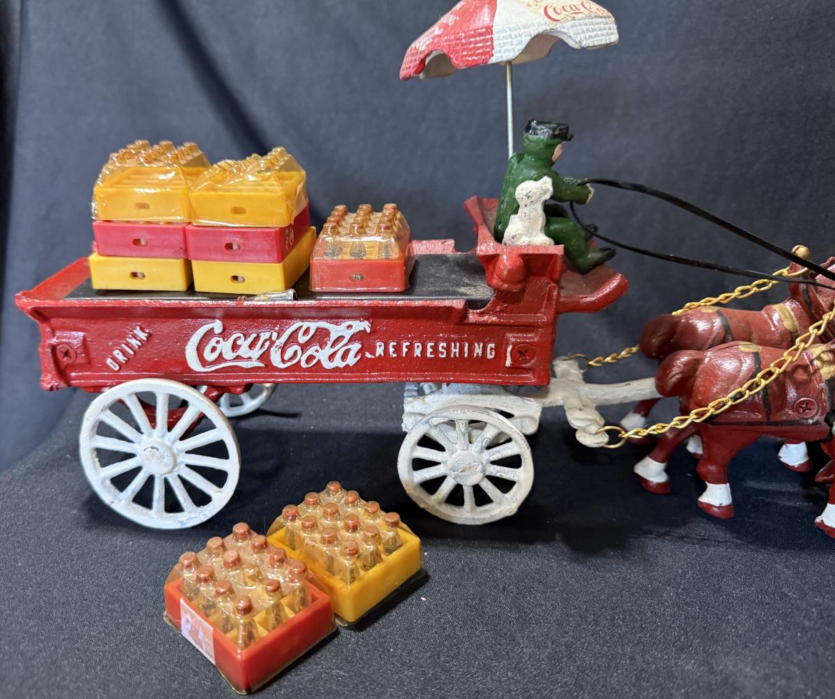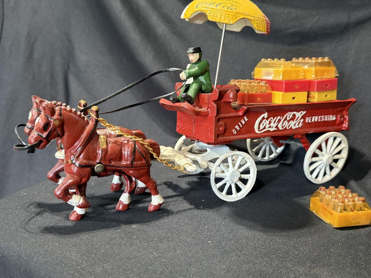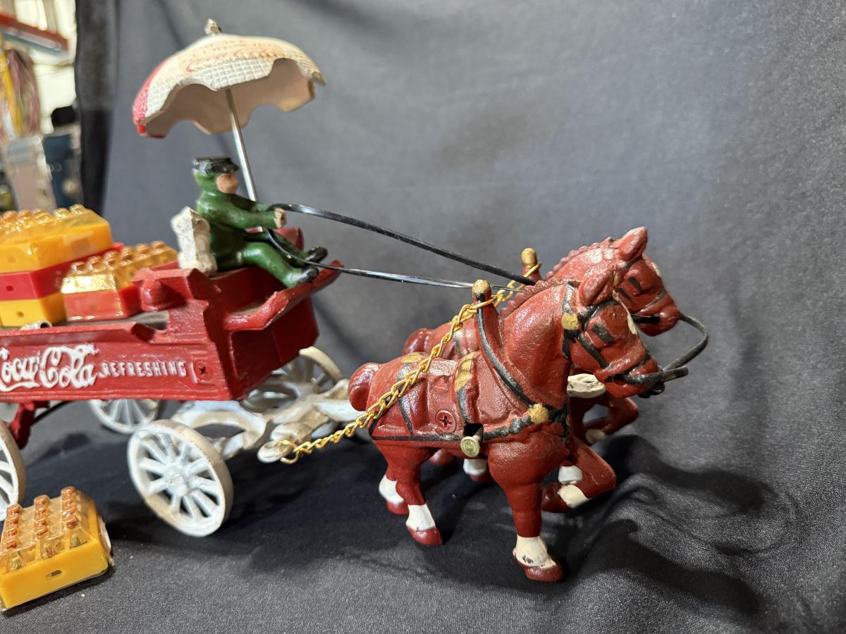 Vintage Cast iron Coca-Cola horse-drawn delivery wagon