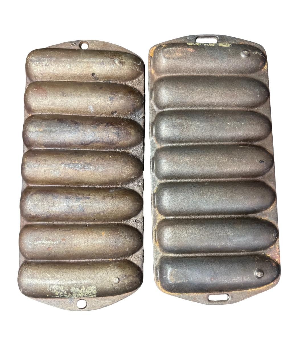 Two 7-ear pans. Unknown maker. No obvious cracks. Measurement: 12.5”L x 5.5”W (each). [LD]