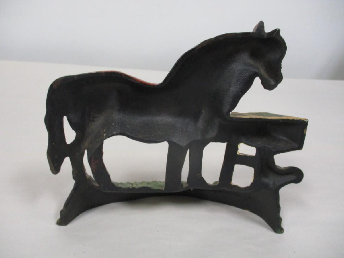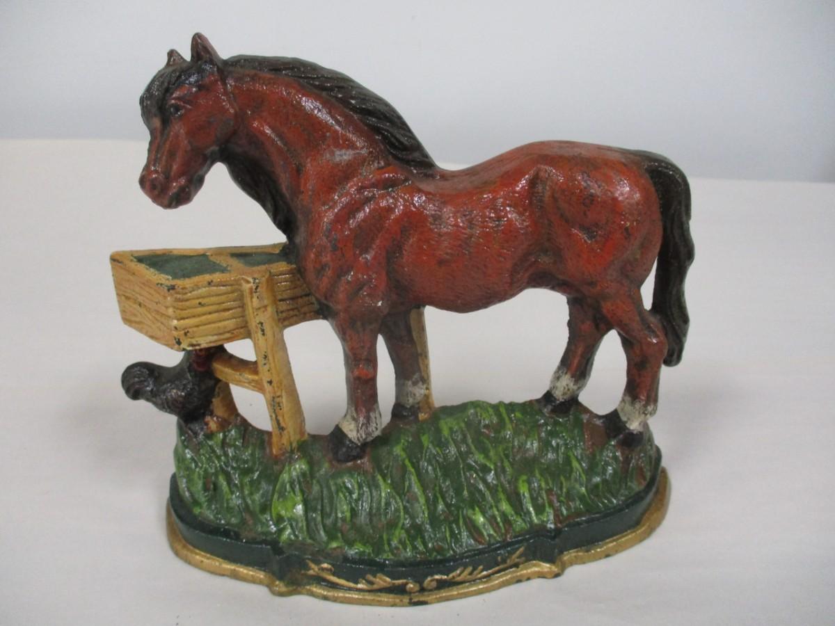 Vintage Cast Iron Door Stop Horse Rooster Drinking Water