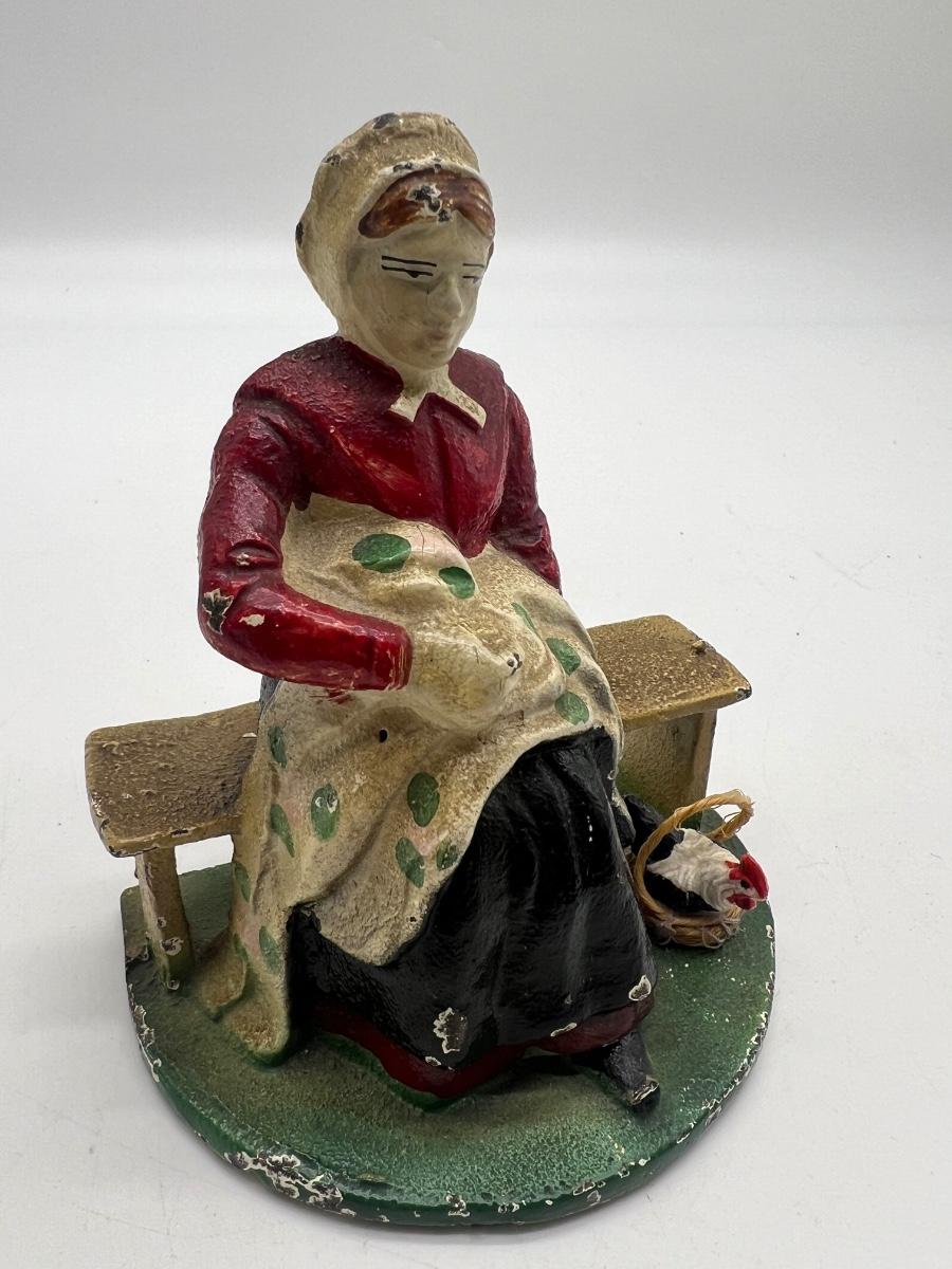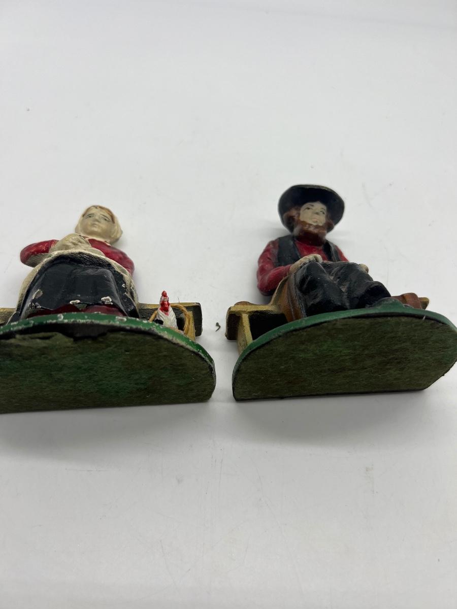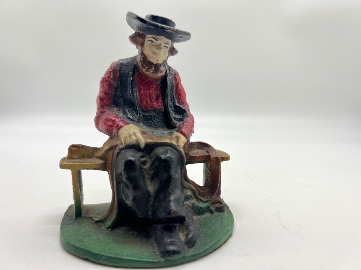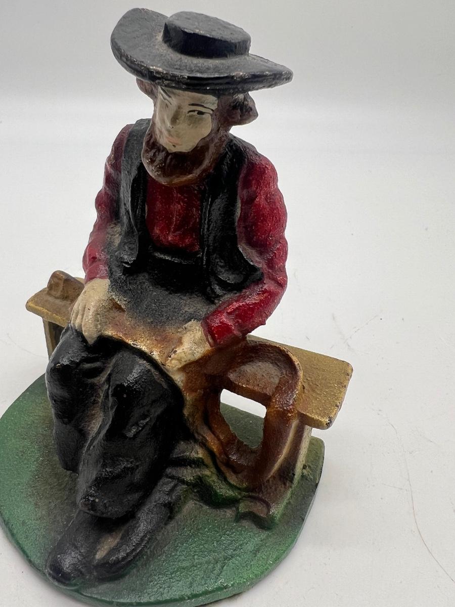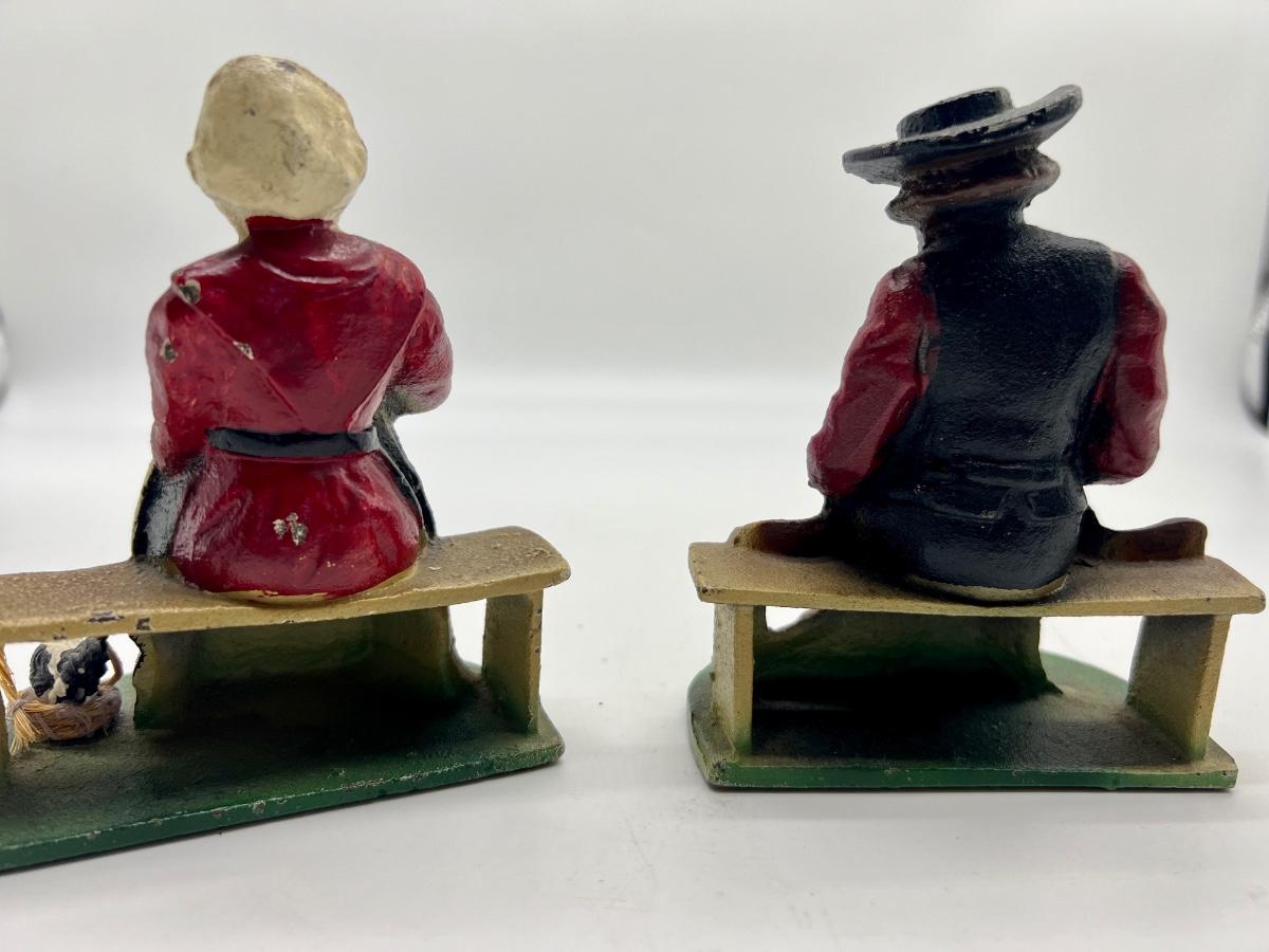 Vintage Pair of Cast Iron Book Ends / Door Stops Amish Man & Woman. Measures approximately 5 inches tall.