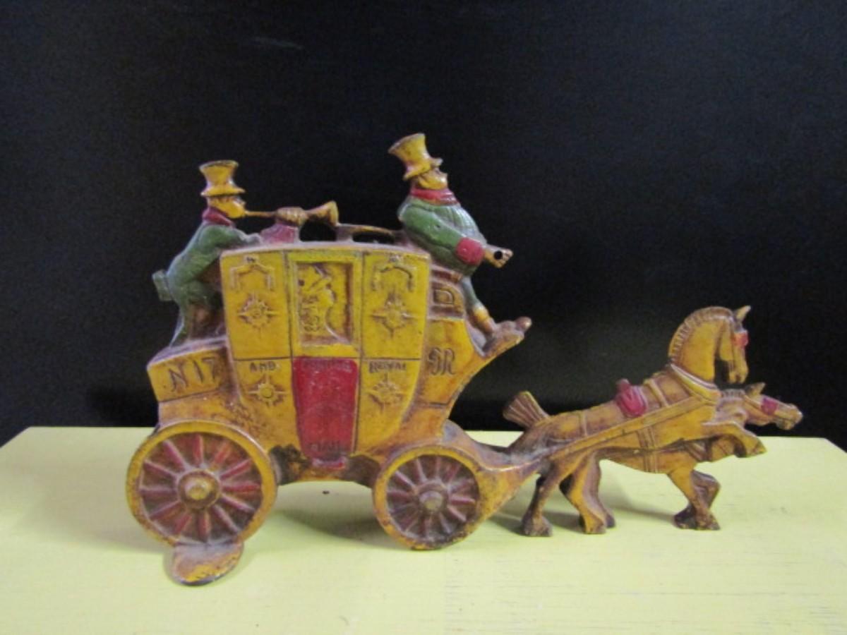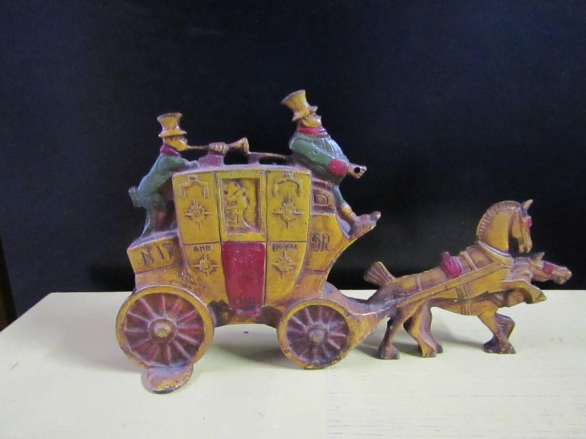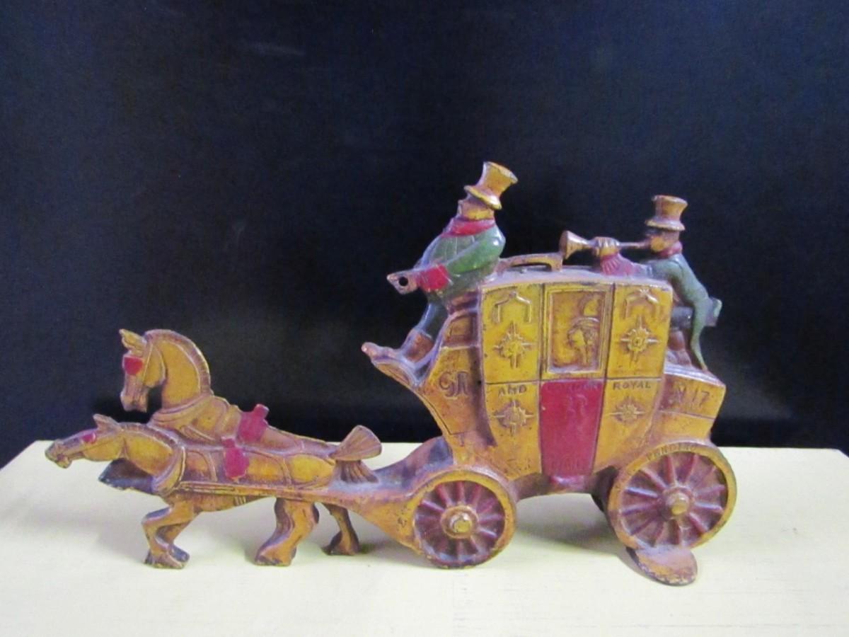 Vintage Cast Iron English Horse and Carriage Doorstop