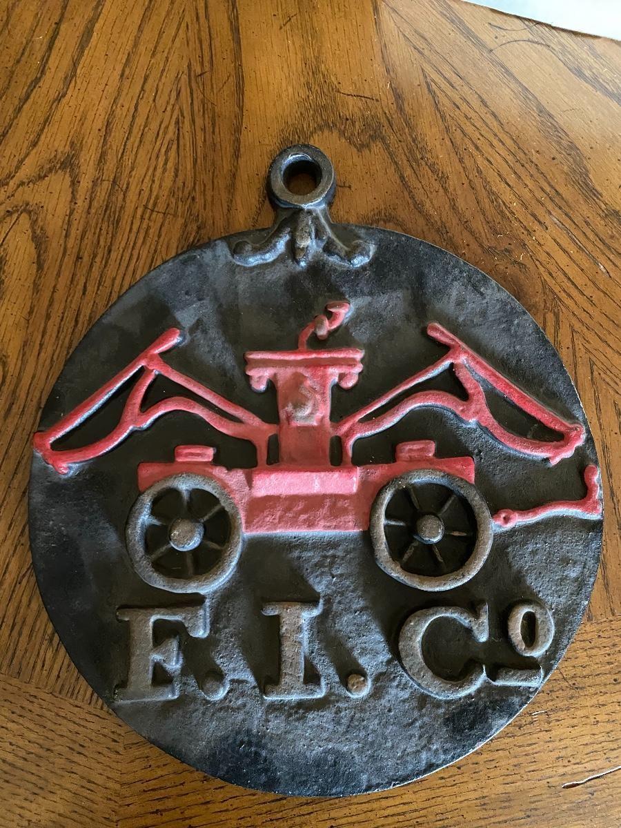 Vintage Cast Iron Fire Insurance Co Round Sign. Heavy cast iron, about 12" diameter.