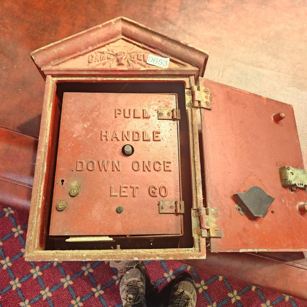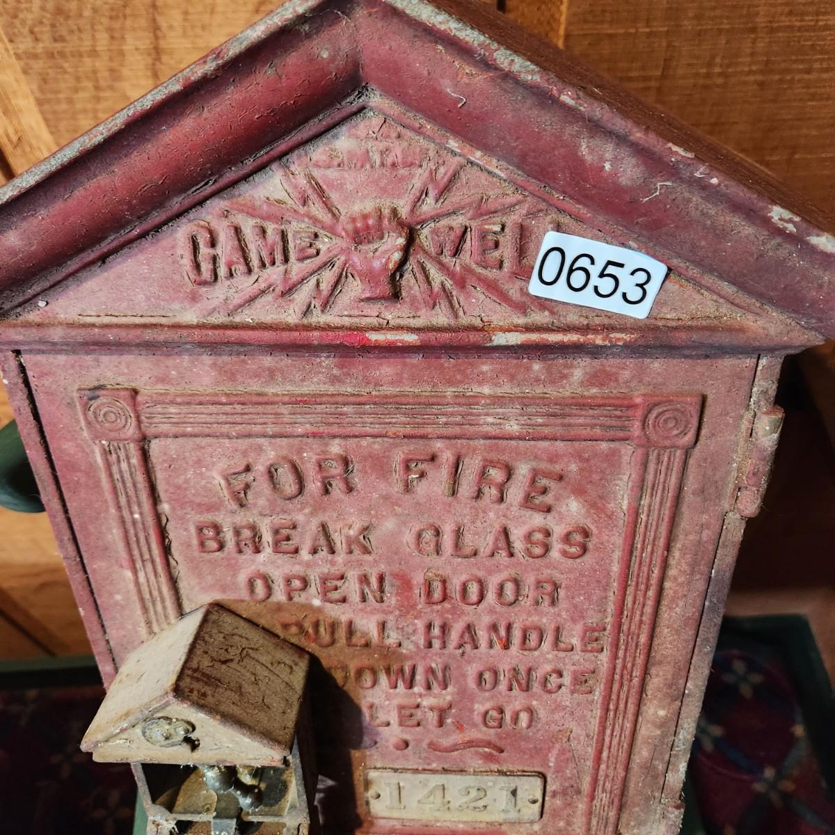 Vintage Cast Iron Gamewell Fire Alarm Call Box Insides intact Box # 1421