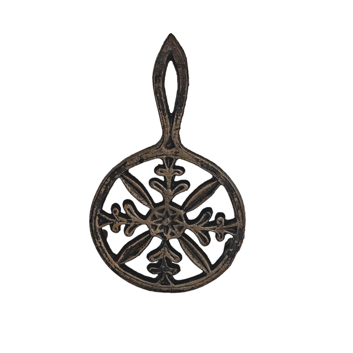 3. Vintage Virginia Metalcrafters Fern Steller Cast Iron Trivet - 7"L x 4.25"W