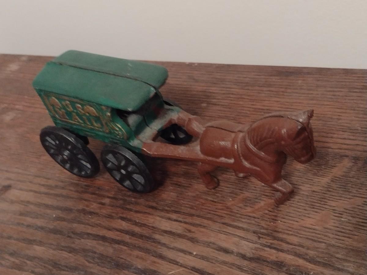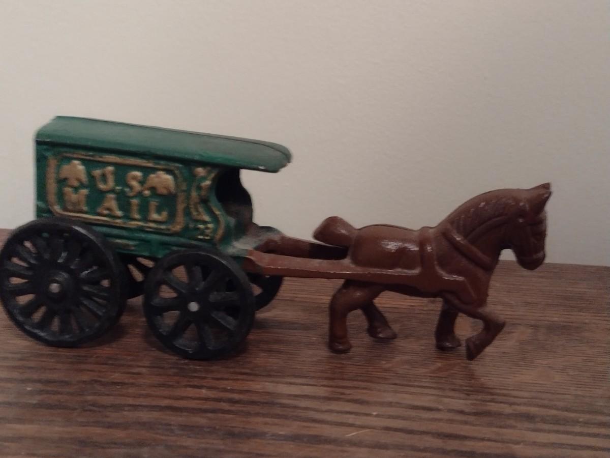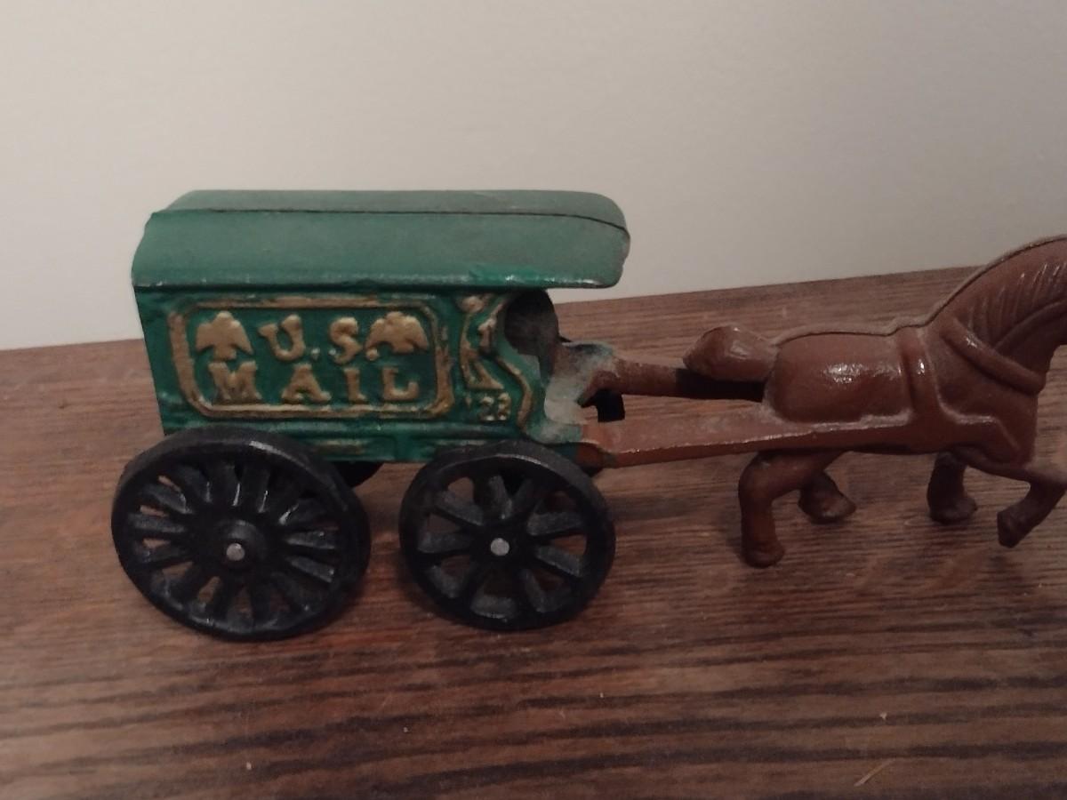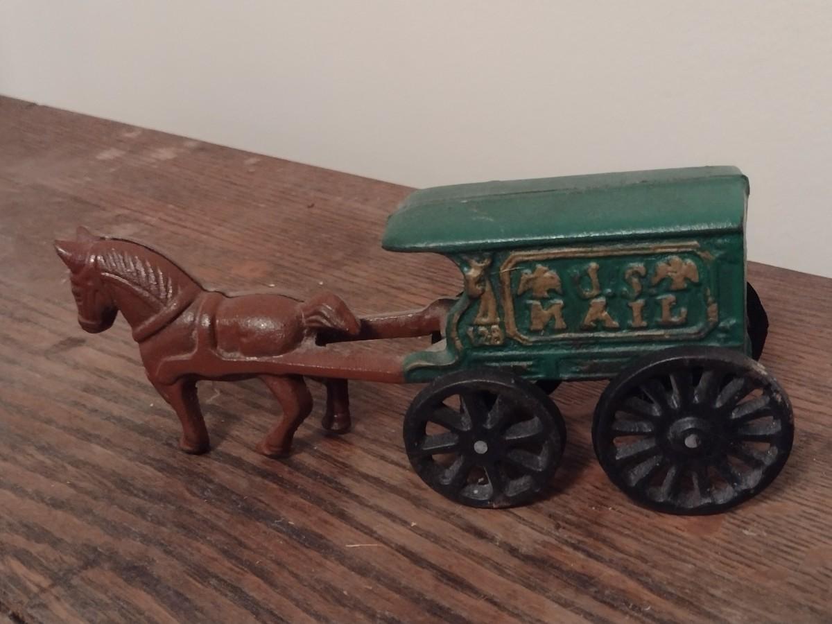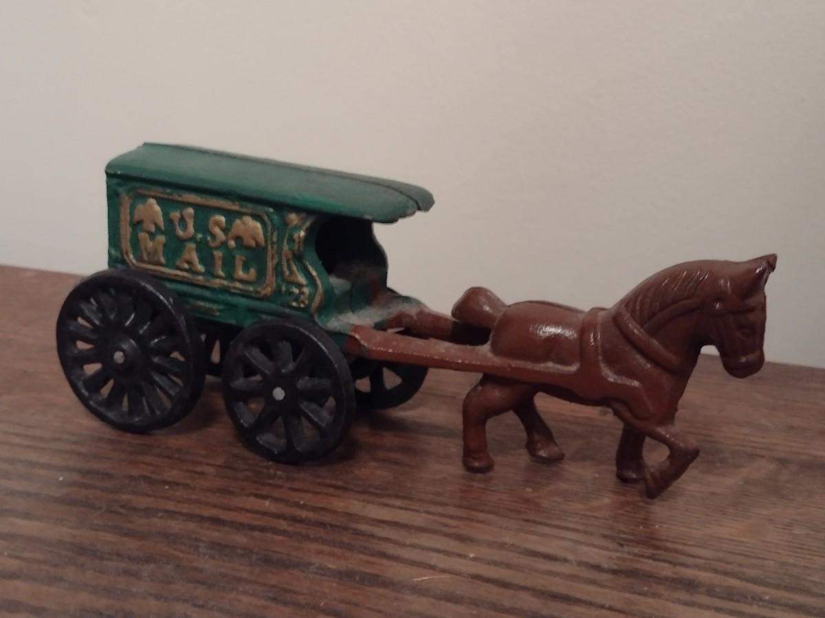 Vintage Cast Iron Horse Drawn U.S. Mail Wagon