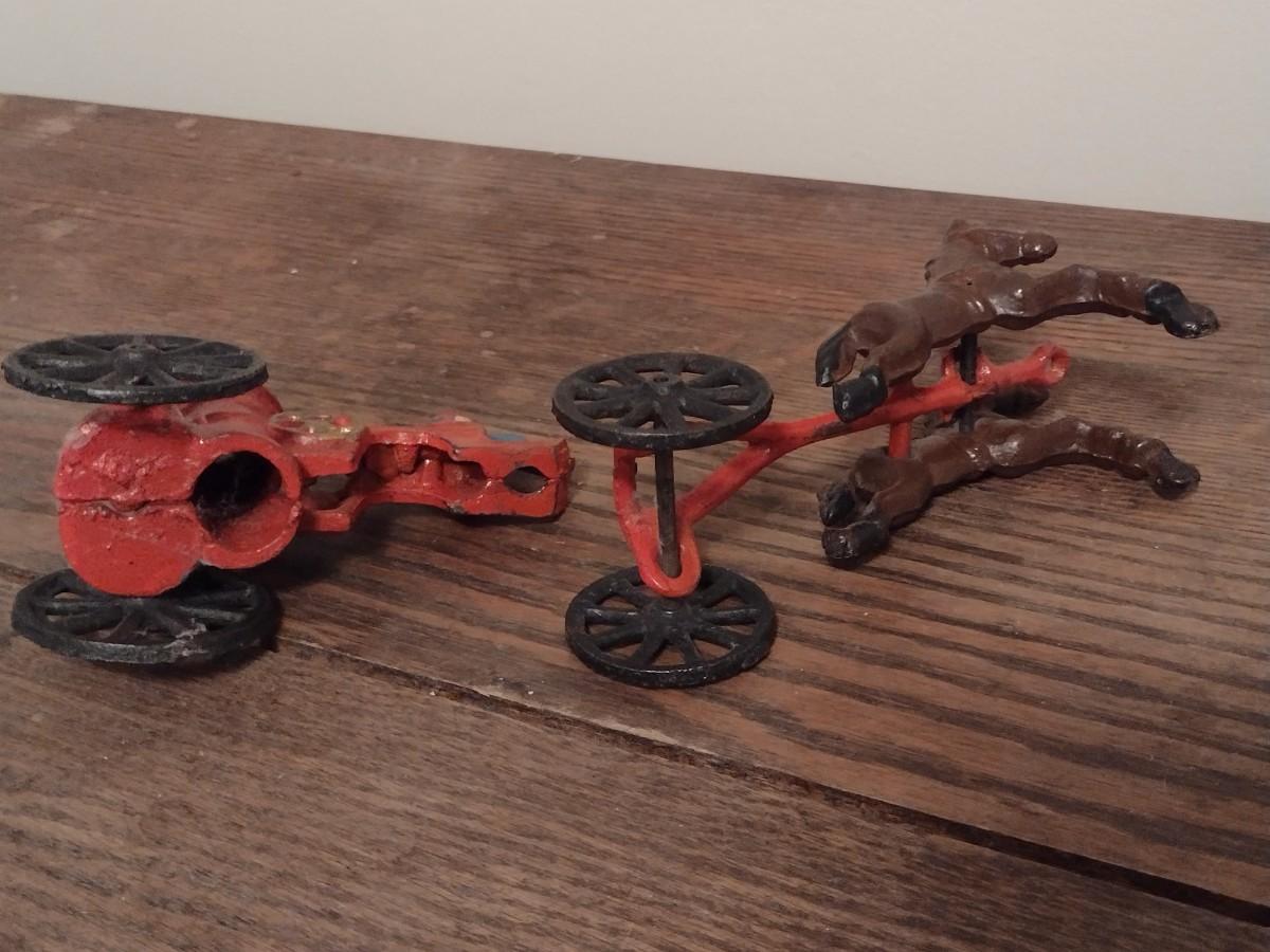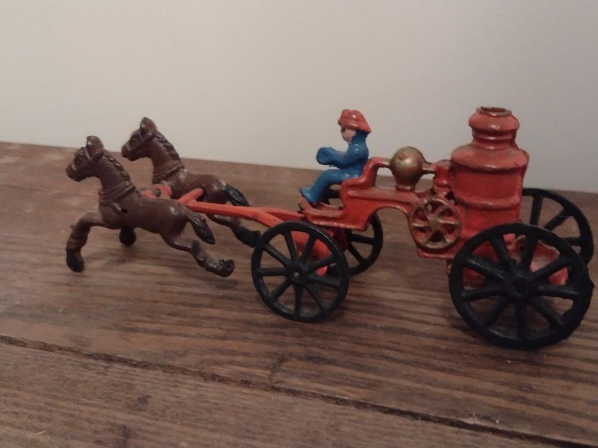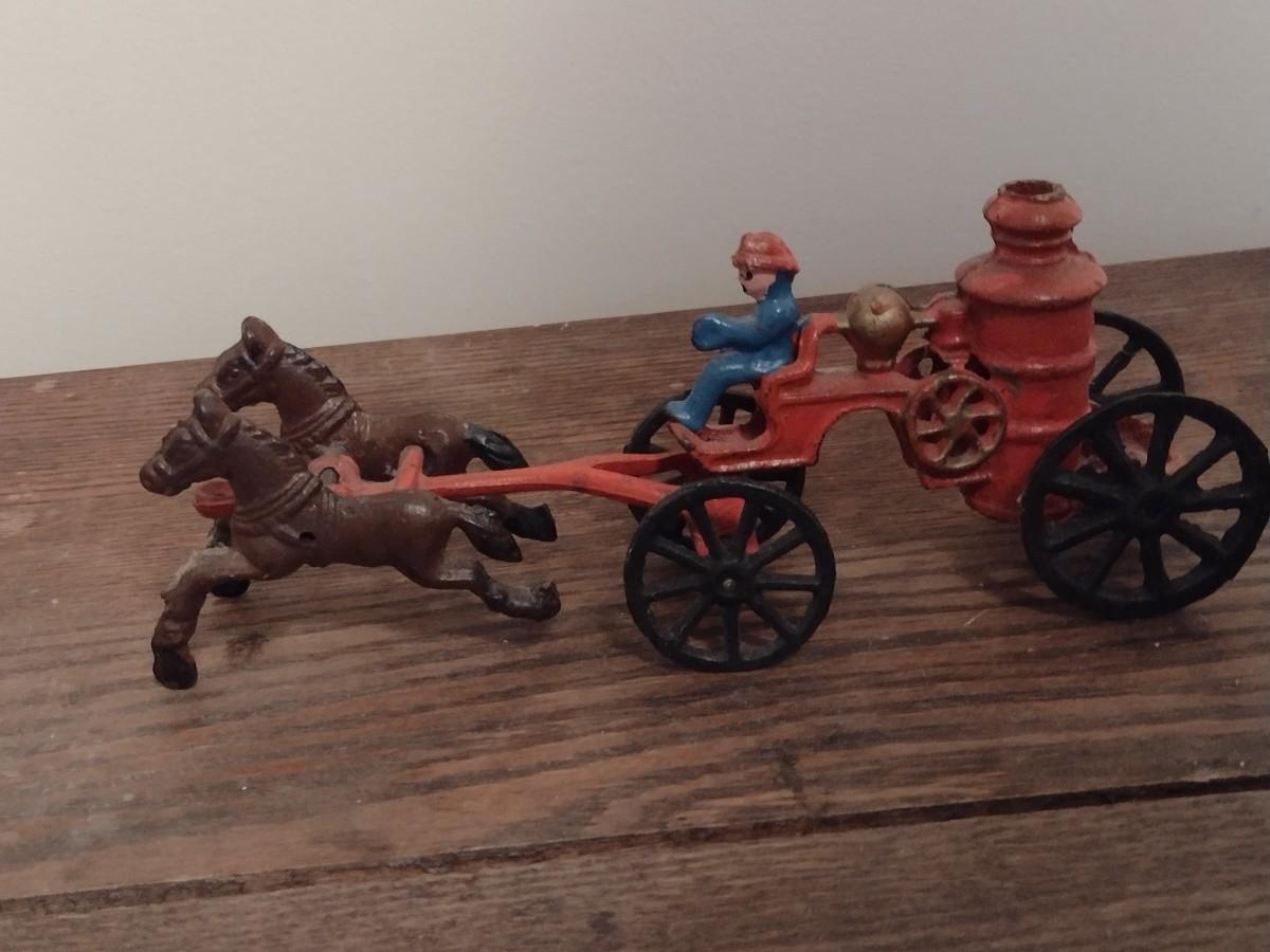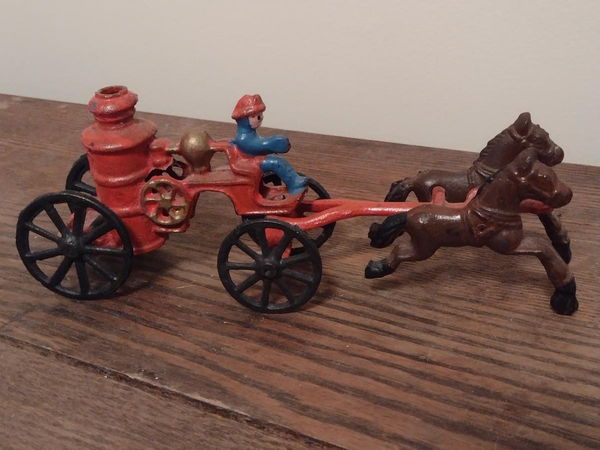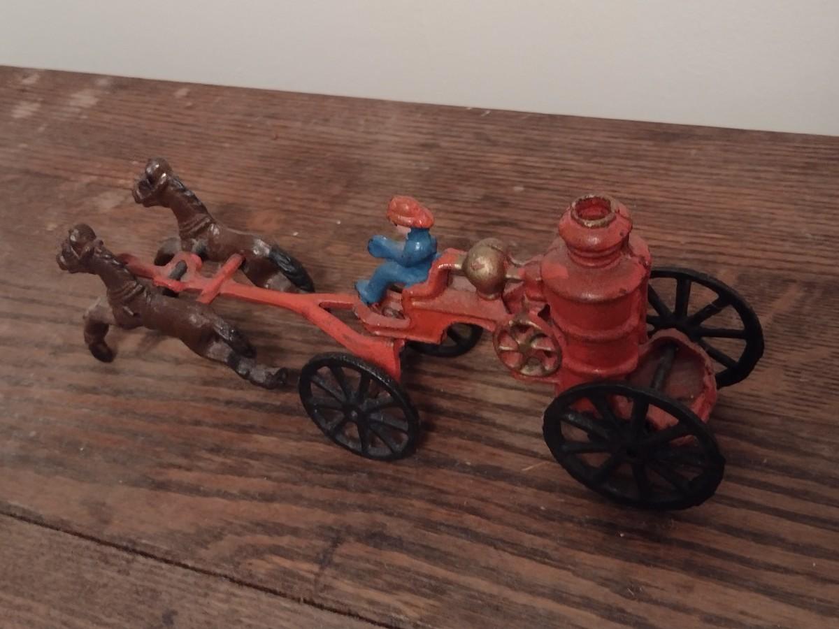 Vintage Cast Iron Horse Drawn Fire Pumper Wagon