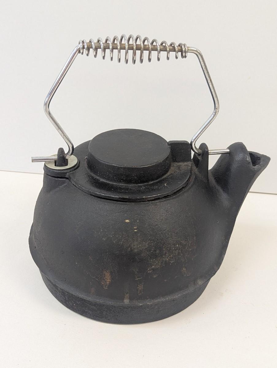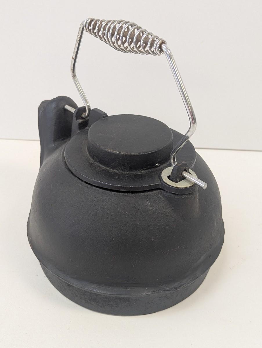 Vintage Cast Iron Kettle With Swivel Lid & Coil Handle