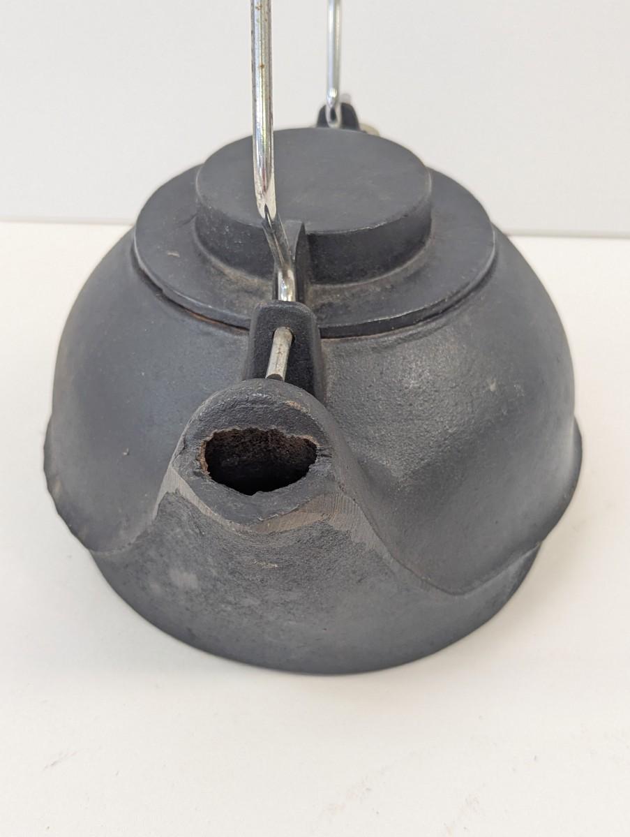 Vintage Cast Iron Kettle With Swivel Lid & Coil