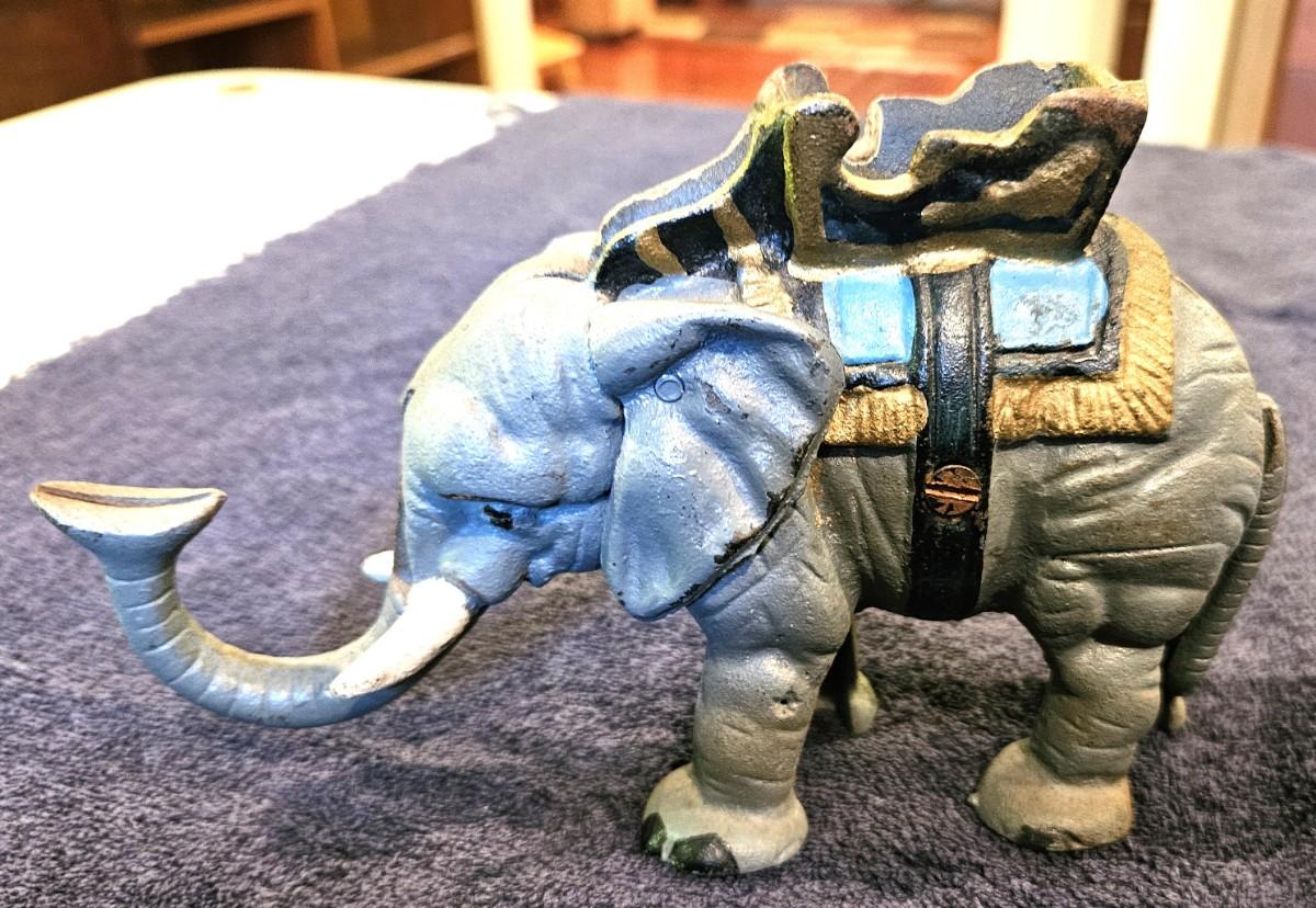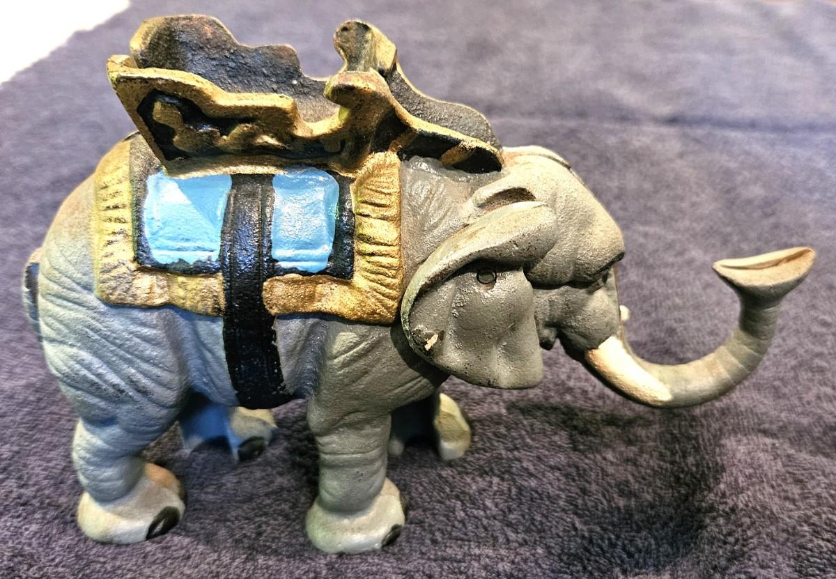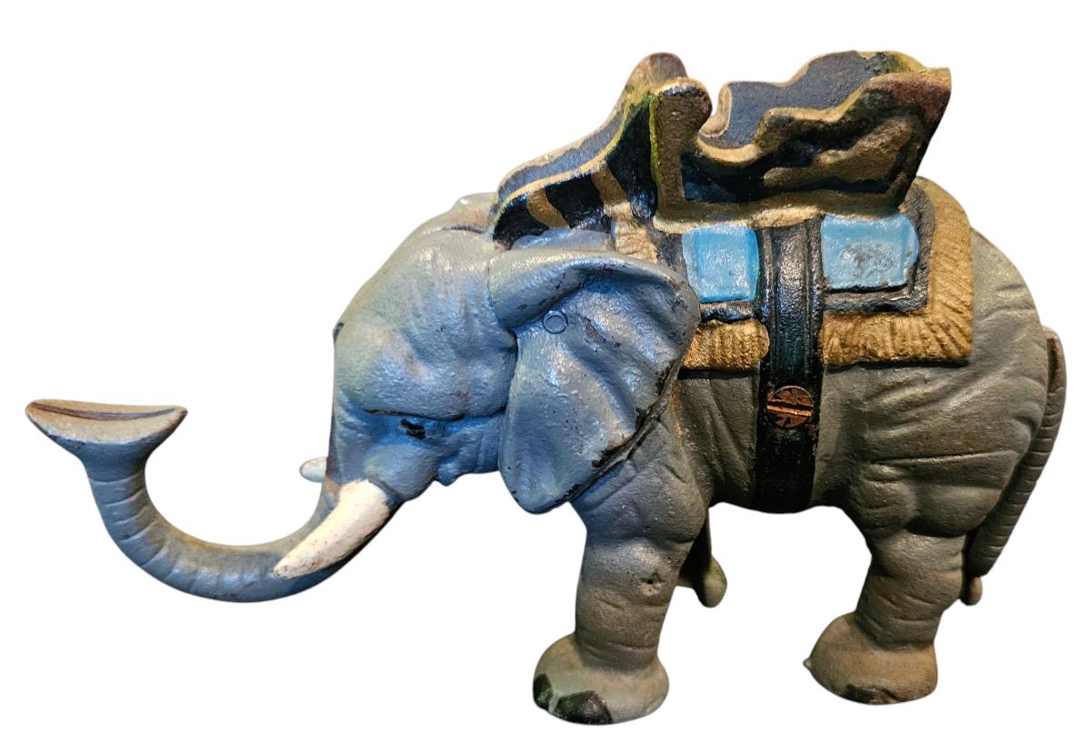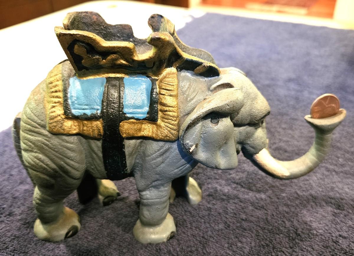 Vintage Cast Iron Mechanical Elephant Coin Bank