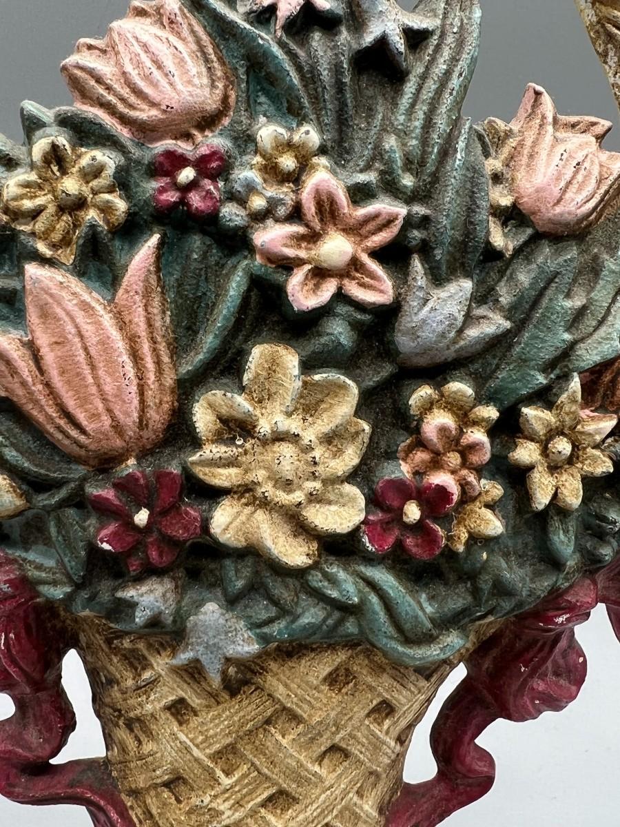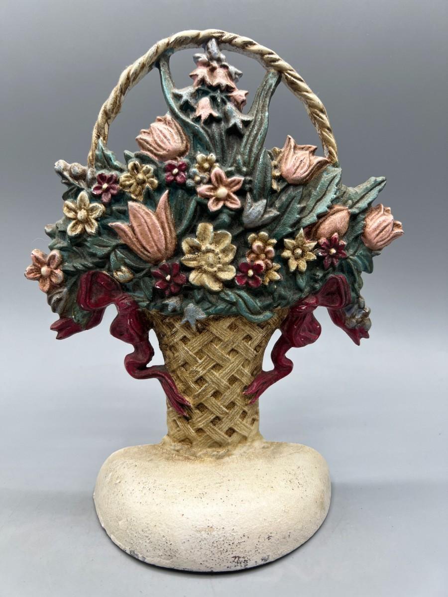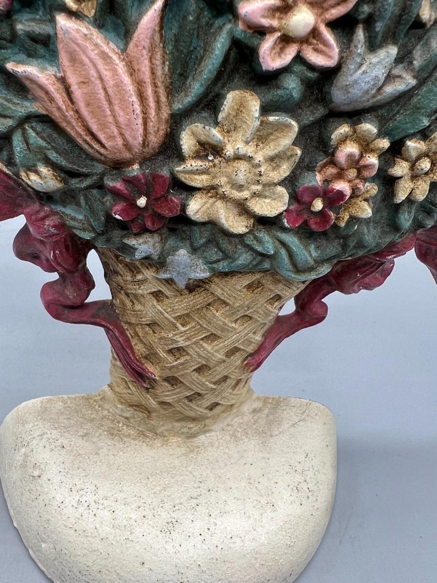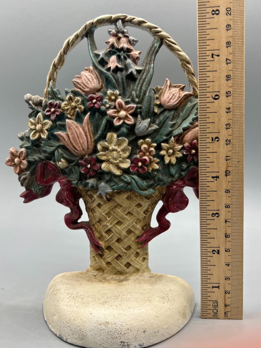 Vintage Cast Iron Painted Bouquet of Flowers Heavy Figurine Doorstop
