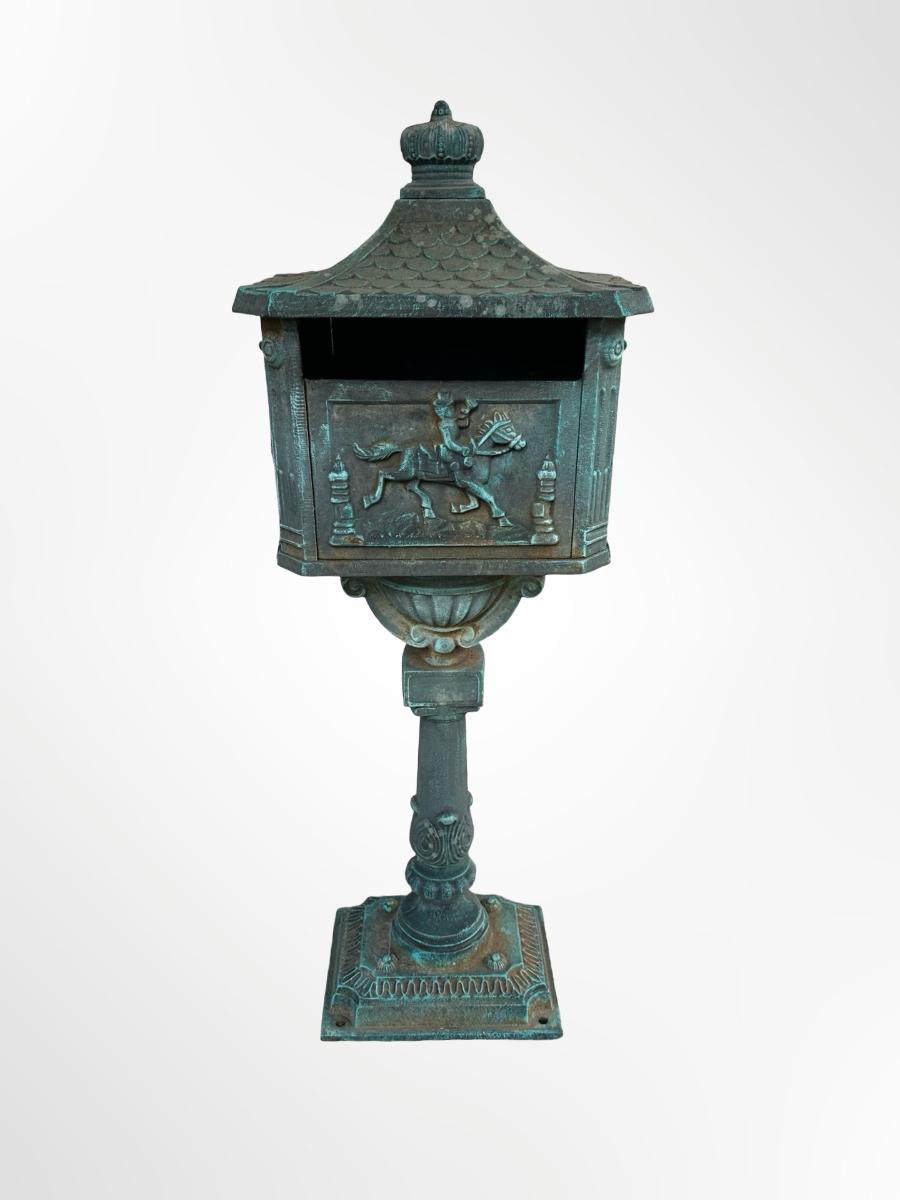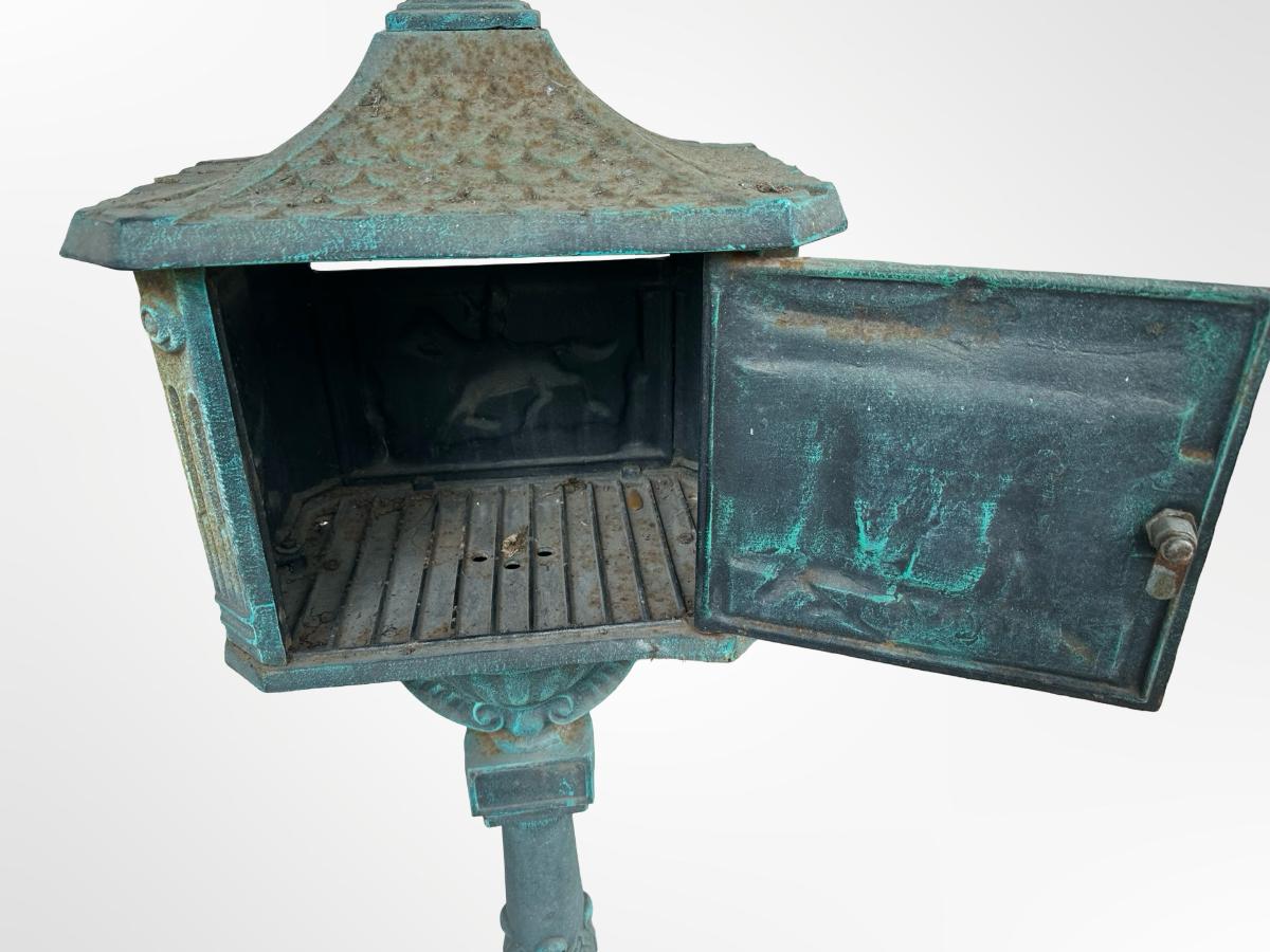 Vintage Cast Iron Pedestal Mailbox with Verdigris Patina