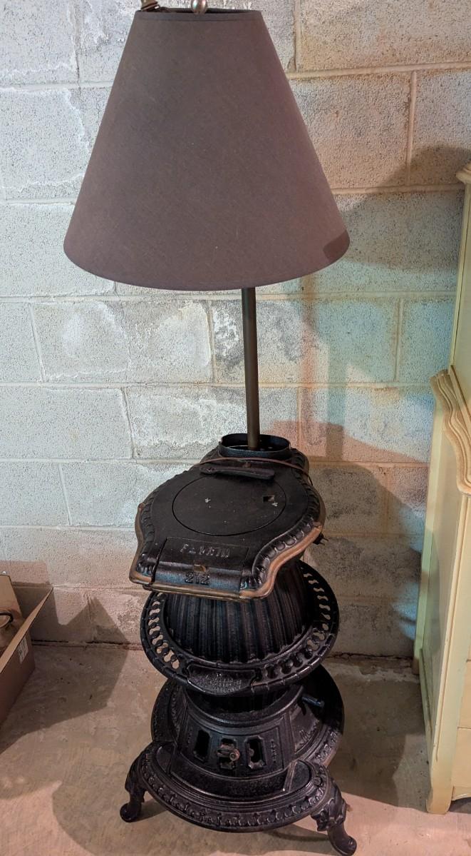 Vintage Florin 212 Cast Iron Pot Belly Stove Table Lamp Rustic Cabin Decor (B)