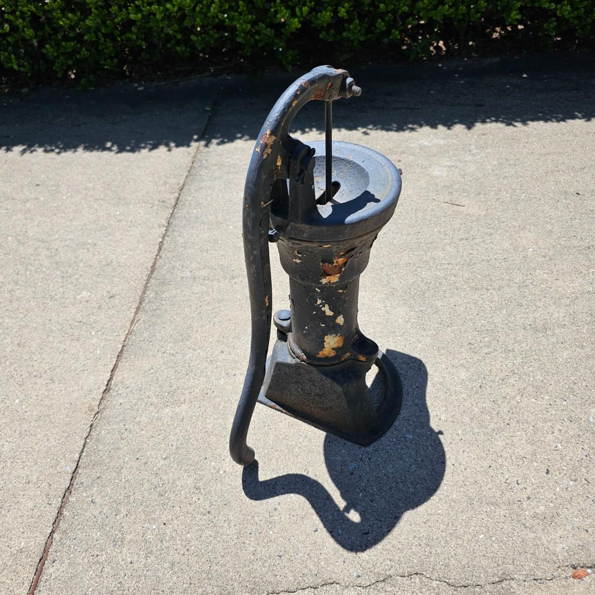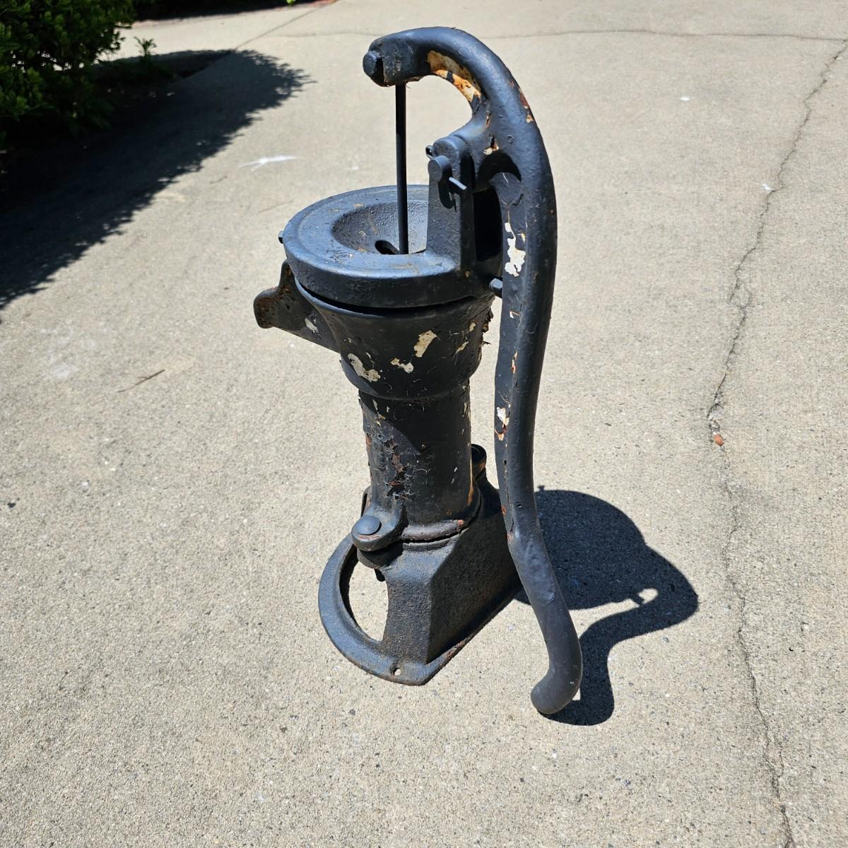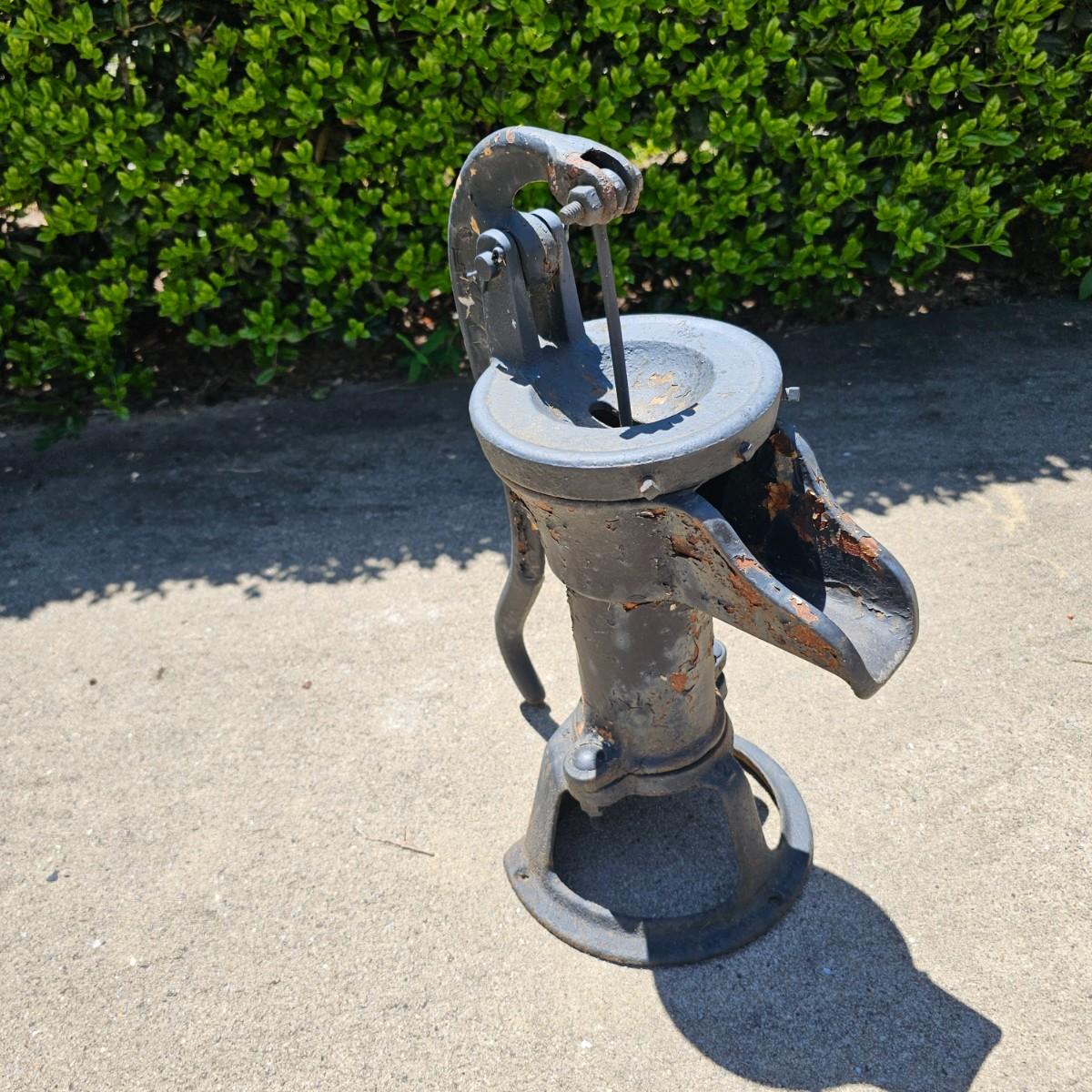 Old 'armstrong' type pump head with handle and spout. All cast iron construction, has mounting holes at bottom to secure. Pump measures 8.5" x 14" x 18"H. Handle is currently frozen in place and Pump has areas of peeling paint. See photos for details. Local pickup only.