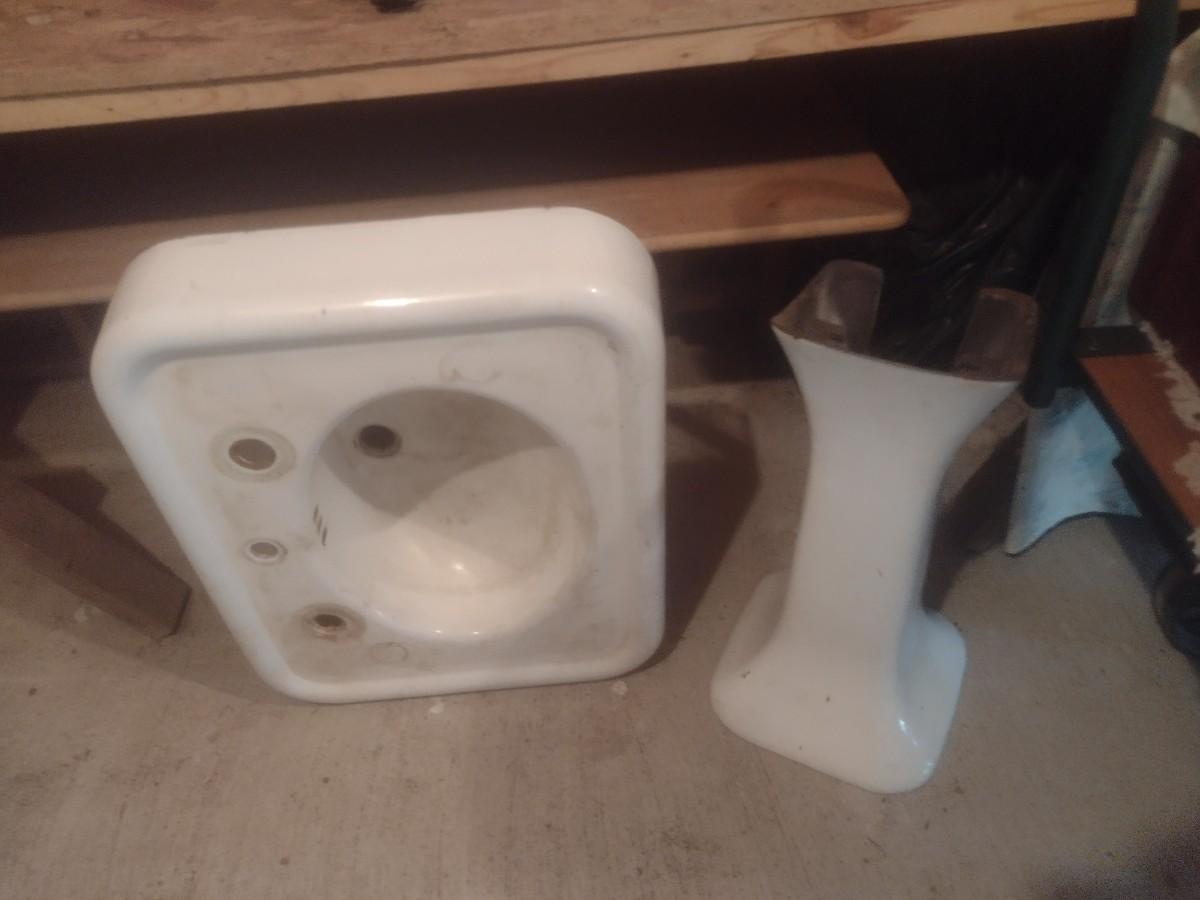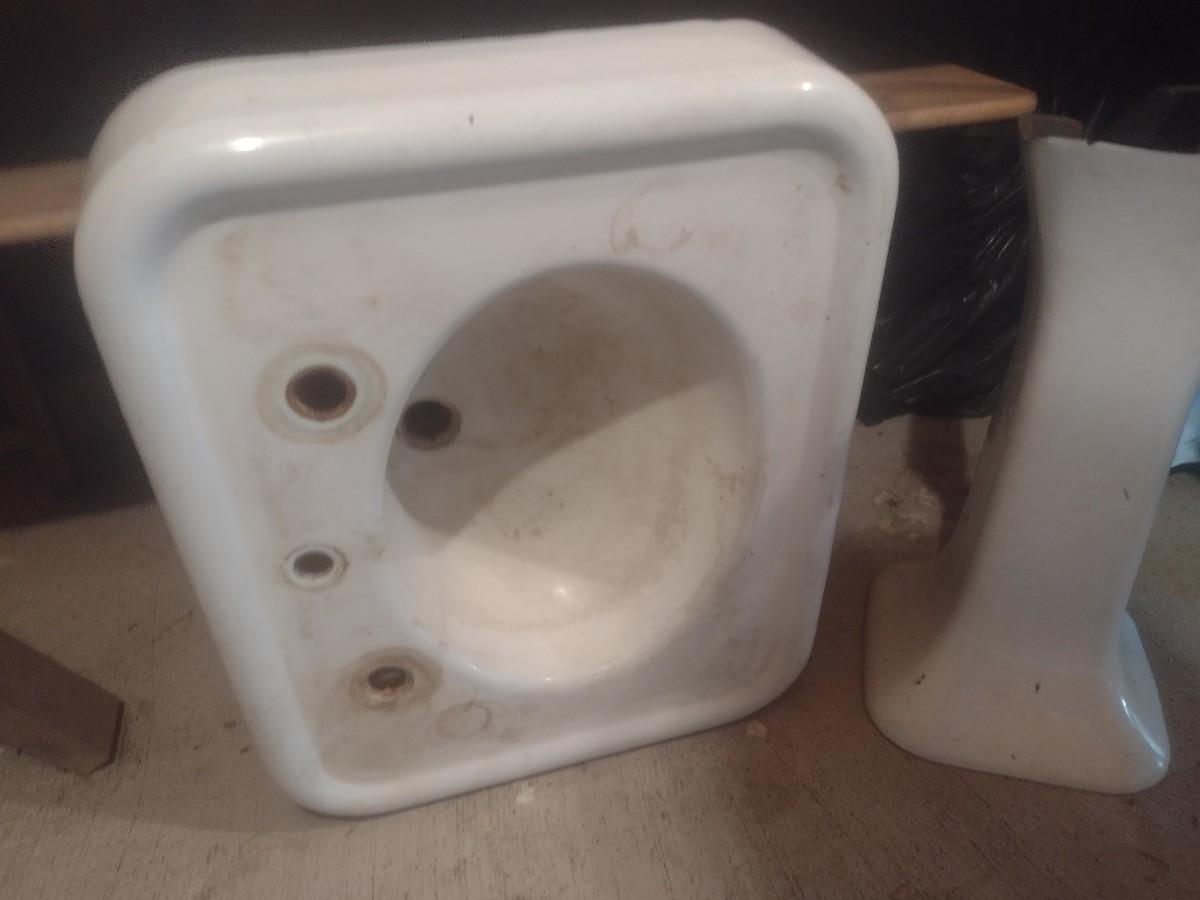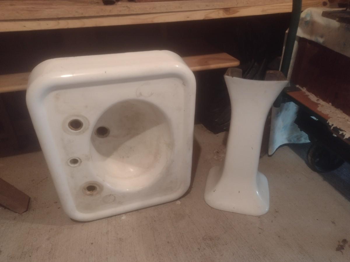 Vintage Cast Iron Single Basin Pedestal Sink Two Piece
