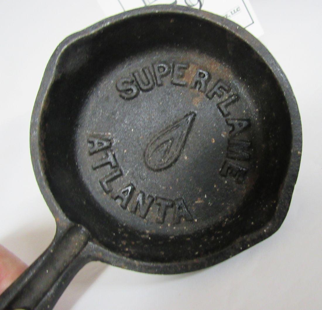 Vintage Cast Iron Small Advertising Ashtray Pan, Superflame Atlanta