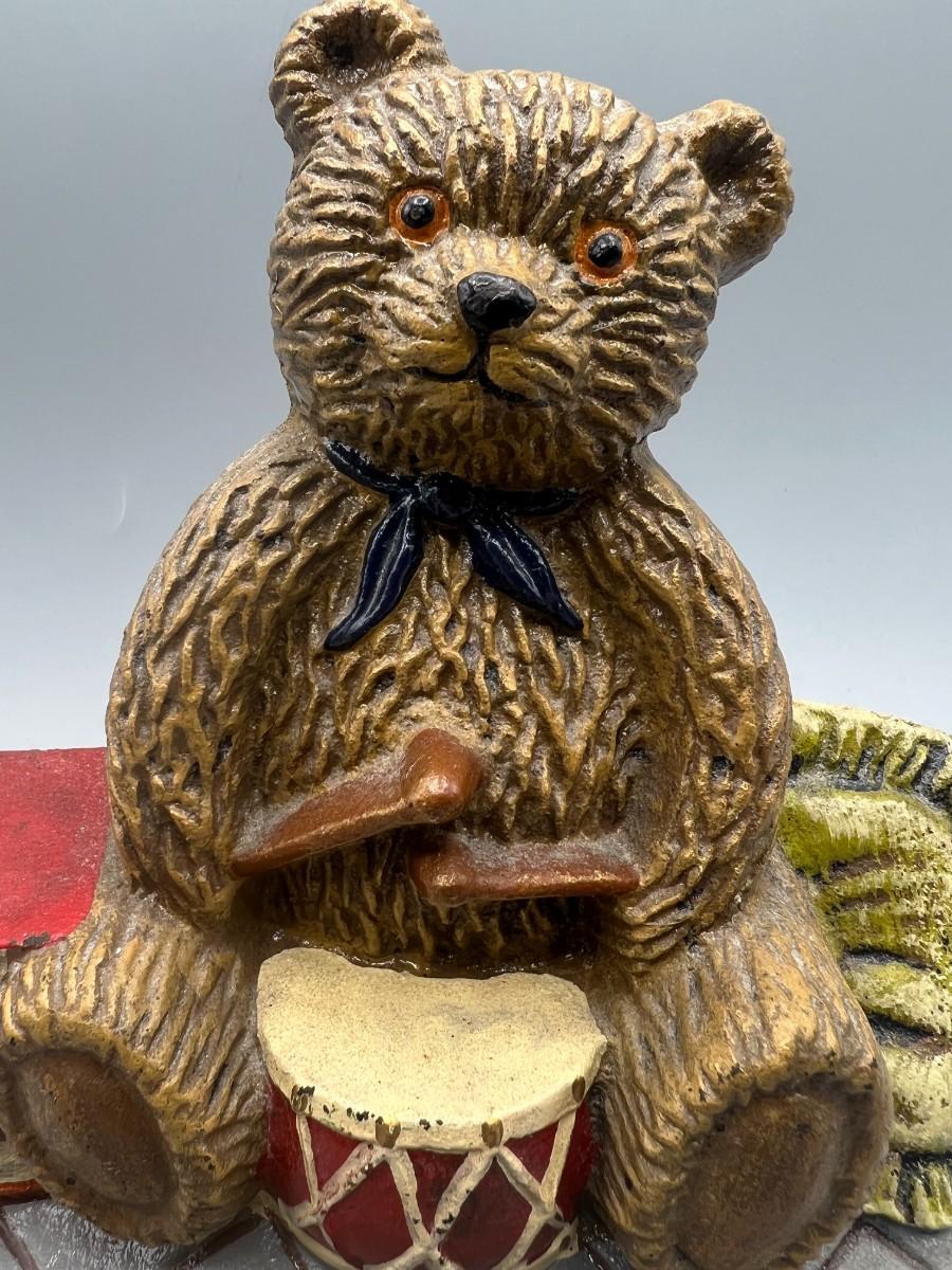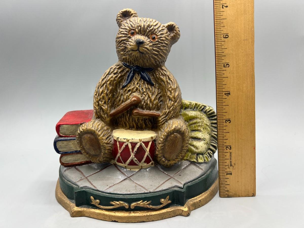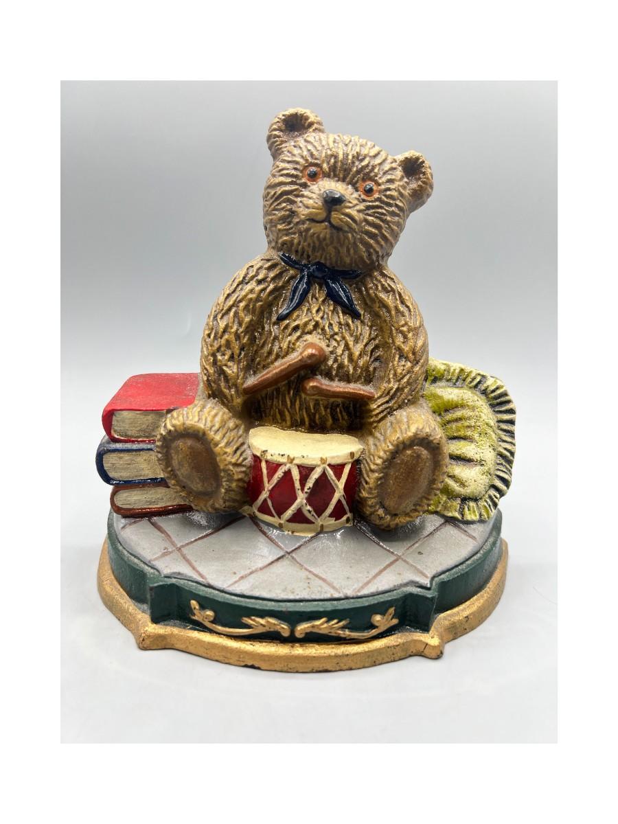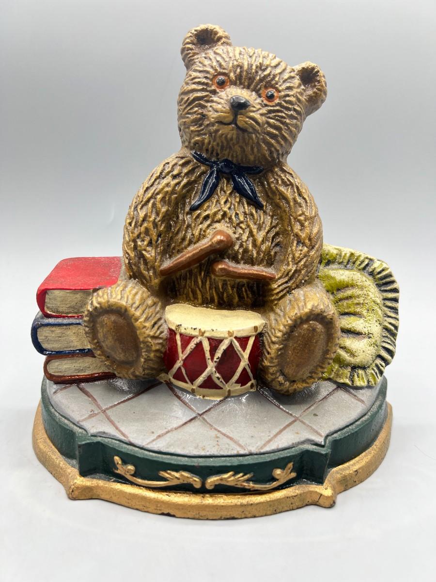 Vintage Cast Iron Teddy Bear Tin Drum Door Stop