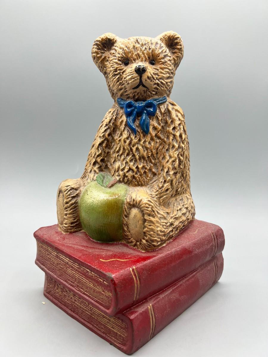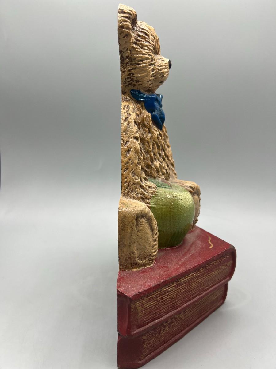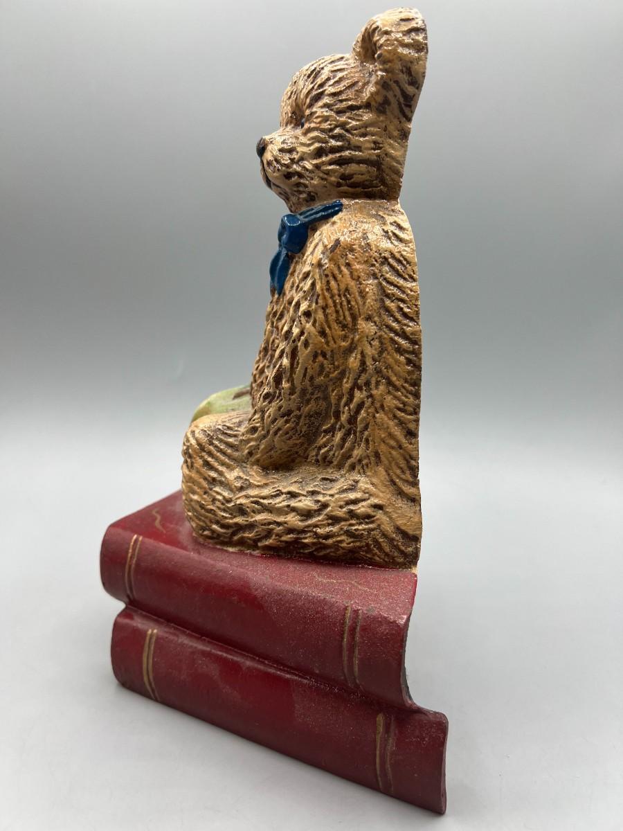 Vintage Cast Iron Teddy Bear Sitting on Books Doorstop