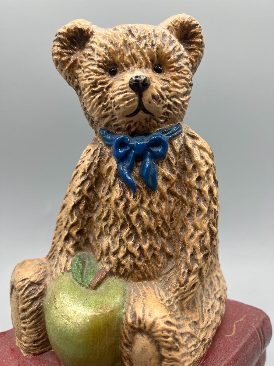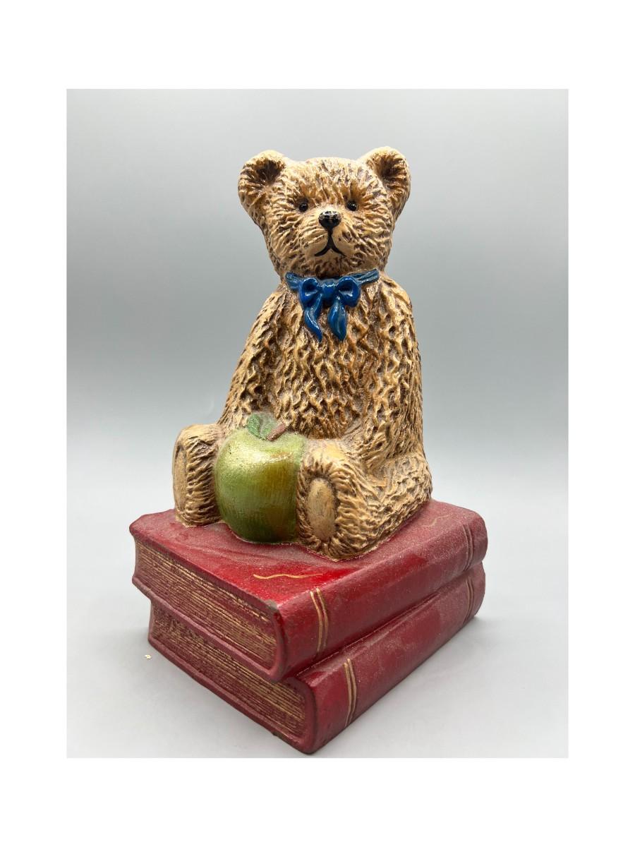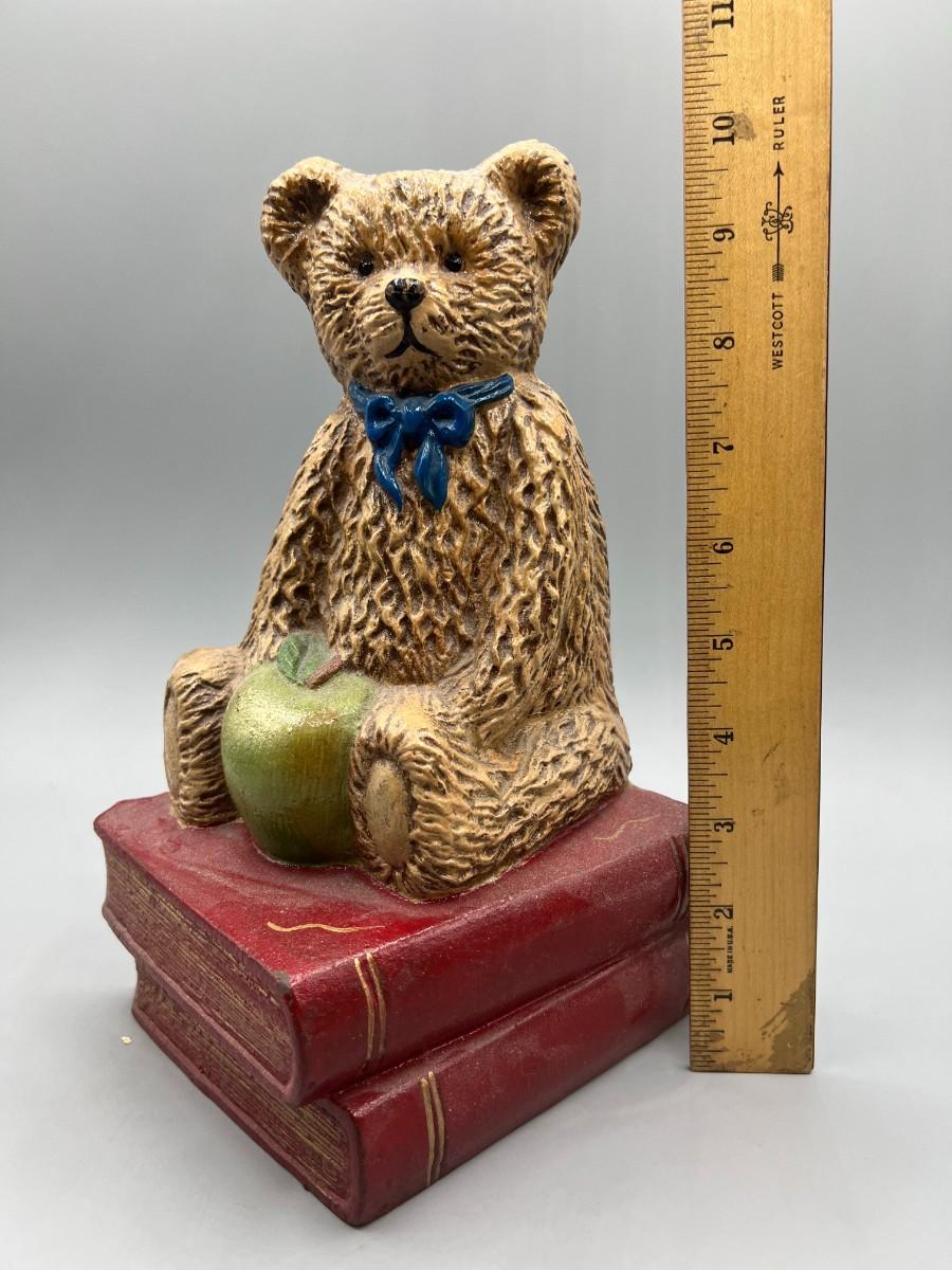 Vintage Cast Iron Teddy Bear Sitting on Books Doorstop