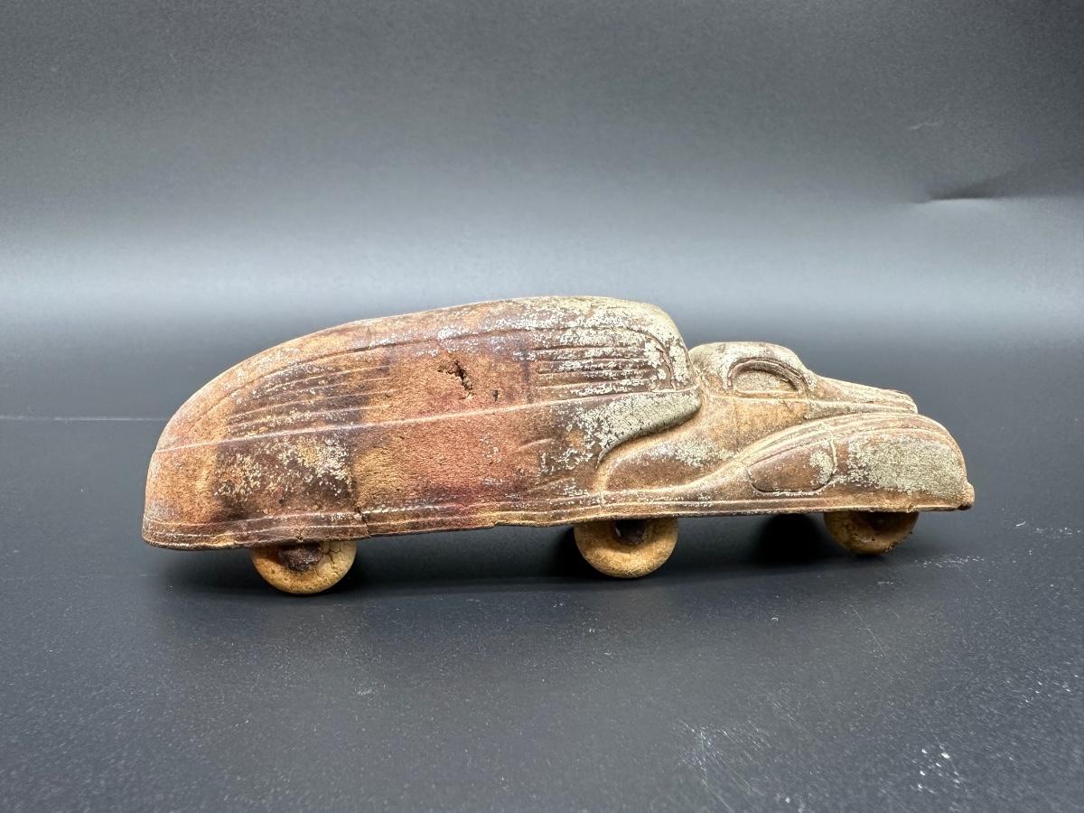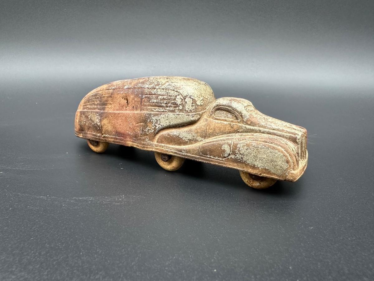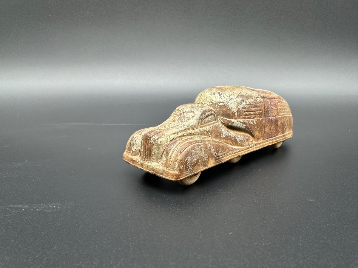 Vintage Cast Iron Toy Car – Art Deco Style – Rolling Wheels – Rustic Patina