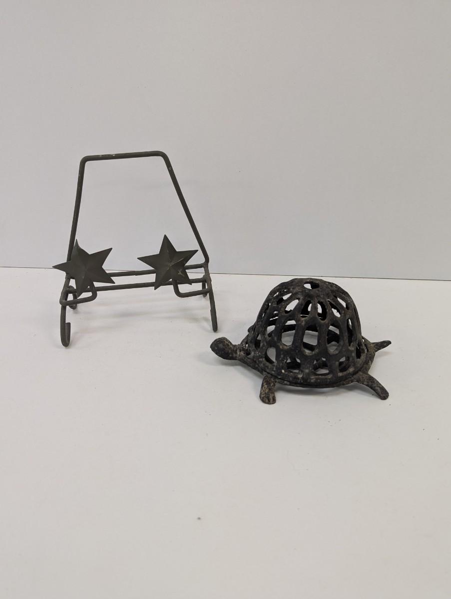 Vintage Cast Iron Turtle String Dispenser & Picture Holder