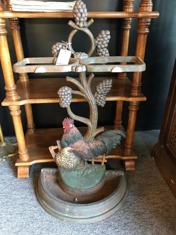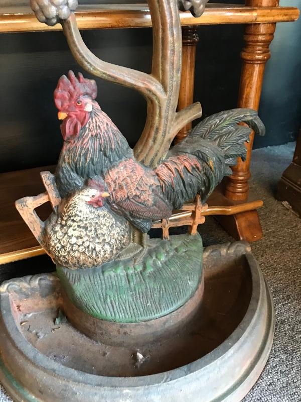Lot 128-Vintage Cast Iron Umbrella Stand with Chicken Motif